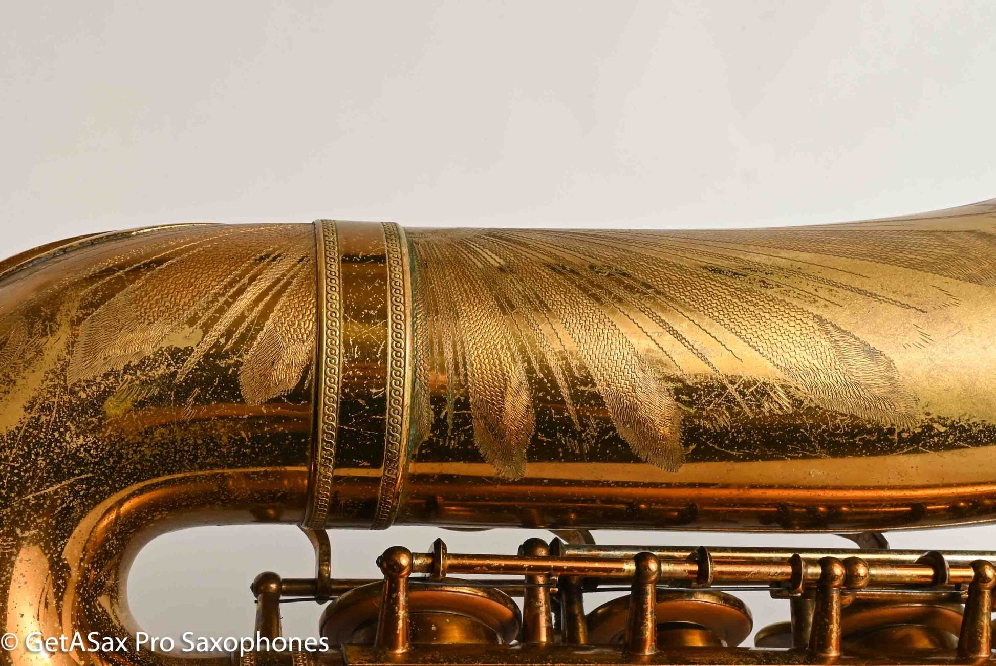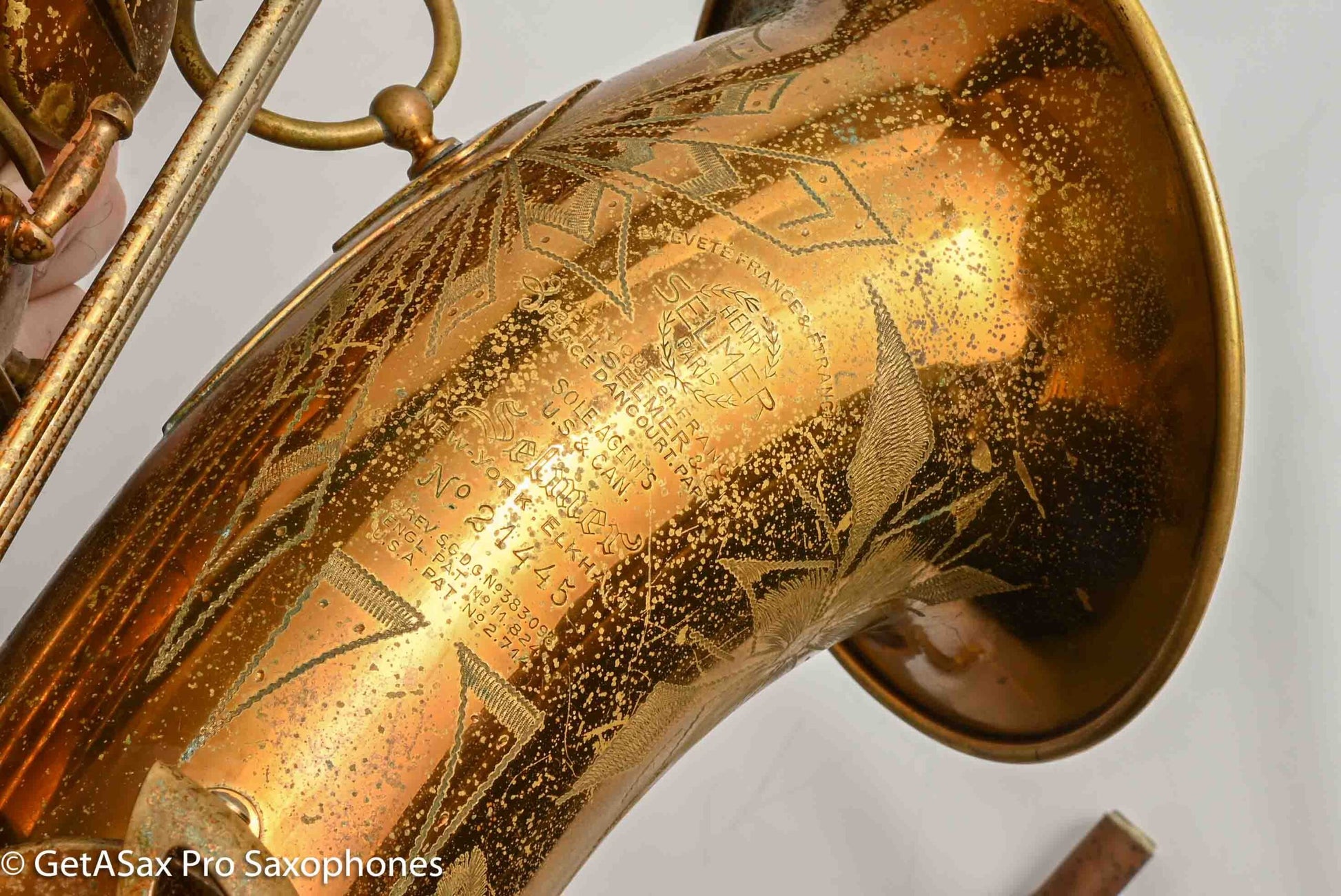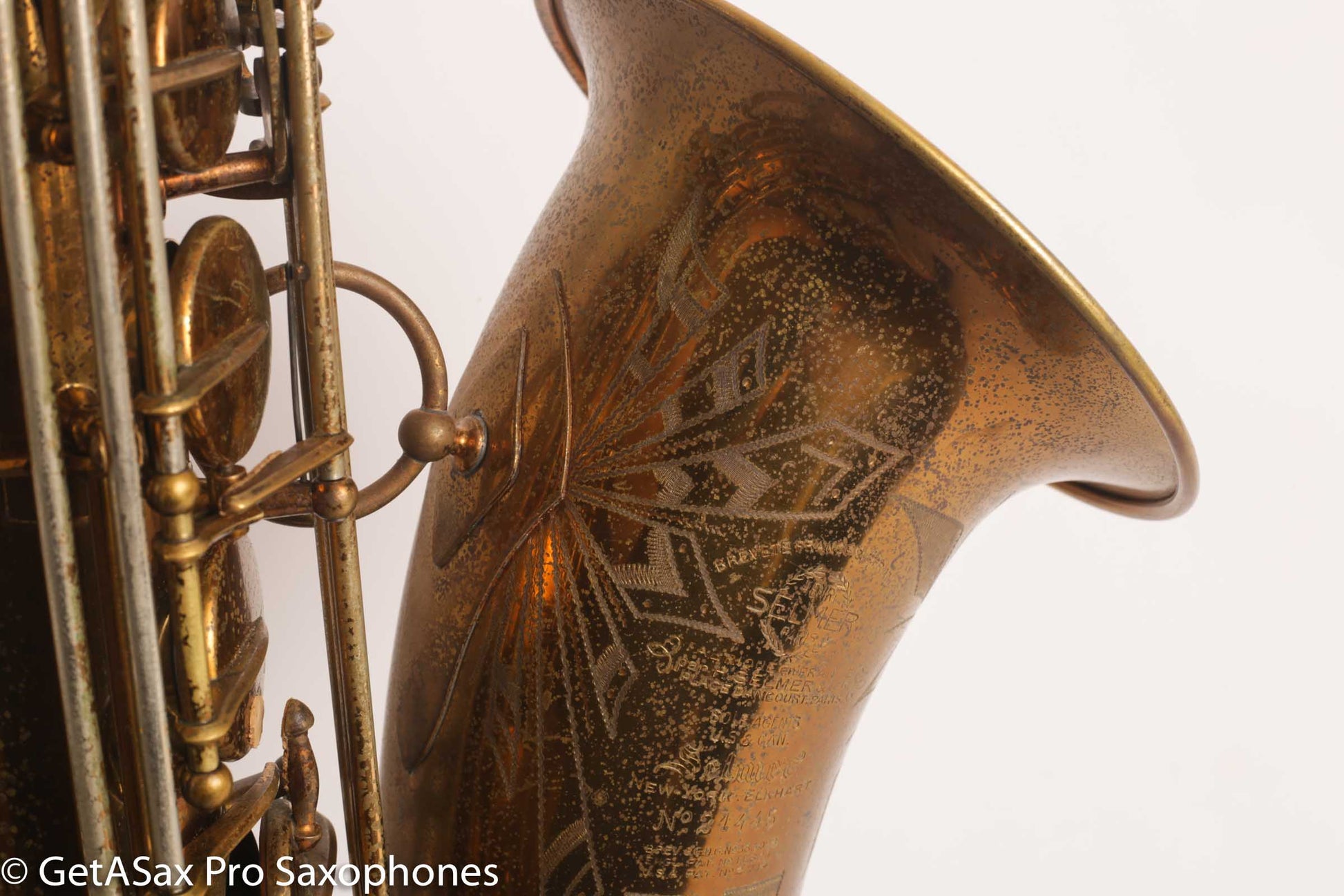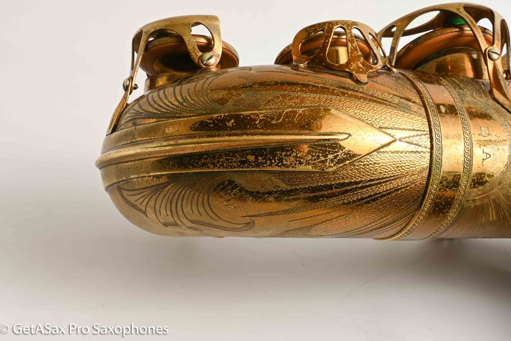 This tenor gets my rare distinction of being an ‘exceptionally fine player’, and it also is an extremely rare and fantastic example of a very early Selmer Balanced Action tenor with an American-engraving pattern that was only used for a short period on a few tenors. I think it’s really great. This horn plays basically like a Balanced Action – warm, velvety, with a lyrical core that is obviously Selmer. But it’s a little more spread and a little darker than a Late Balanced Action, almost like it’s partly Radio Improved (my favorite vintage Selmer tone) and partly BA (my second favorite vintage Selmer tone). But it has the more comfortable BA keywork layout, so it really is a special ‘unicorn’ sort of vintage Selmer that you never see. I’ve seen one other one of these ever, and I don’t think that one was original lacquer. This tenor recently got a complete overhaul done through GetASax with Italian leather Pisoni pads, and the nice made in USA reusable slightly domed brass resonators that I love on these horns. You won’t find a nicer BA, and certainly not for this price. Only one available!