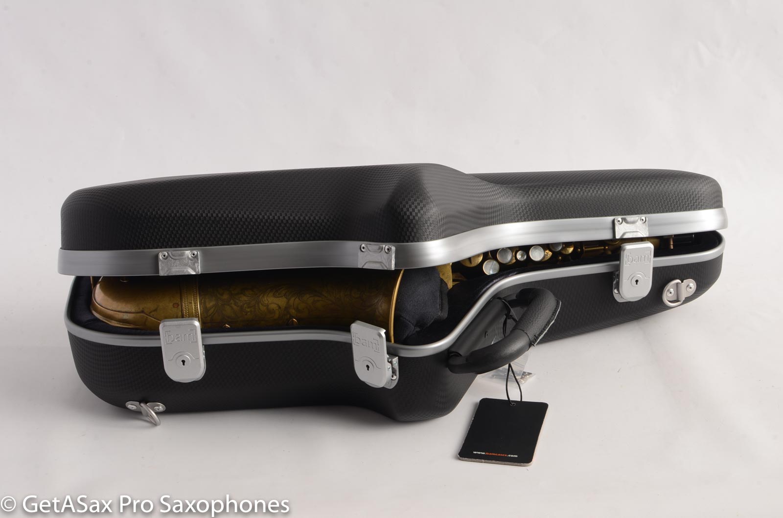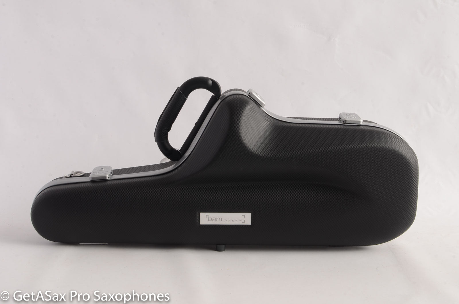 BAM France did a nice job on this BAM Cabine Panther Alto saxophone case. It's like the delightfully slim regular Cabine cases (I like the Red cabine best of those by the way!), but it has new, redesigned latches, and a great-looking anti-slip exterior material. It comes with a mouthpiece pouch, a neck bag that goes in the bell, and backpack straps. This case weighs half what a wood Selmer Series III, or Yamaha Custom case weighs, and it is super easy to carry around. It's called "Cabine" because you can easily bring it as a piece of carry on luggage in the airplane 'cabin.' You won't believe how light and protective this case is. It keeps your horn in better adjustment than any of the factory cases that come with new horns today. The internal foam is soft and form-fitting. You save in repair more than you spend on the case. The cover just looks super great, and the rubberized feel keeps the case firmly where you put it.