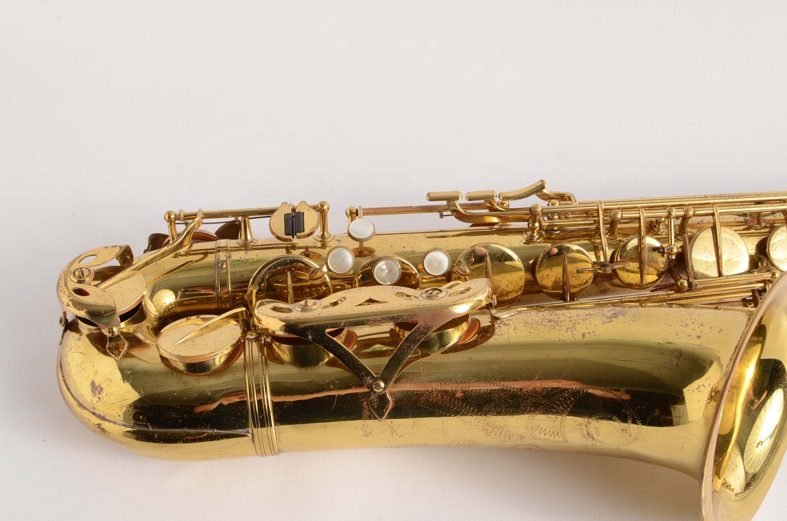 This particular horn is priced low for a quick sale. It has old pads and needs a repad, but I have sold overhauled ones for much more than this in the past, so you have room to buy this, get it overhauled, or do it yourself, and have a great vintage pro French saxophone that plays great for a bargain price. The only past repair of note is a bit of dent work I had done to straighten out the neck angle, and it came out nicely. What's not to like?