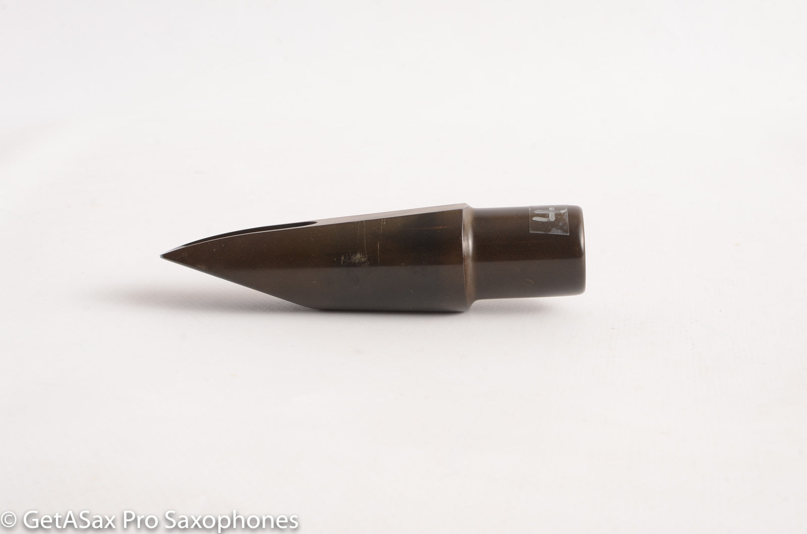 The markings seem to be buffed out but looks like a 120 2 or 3 chamber. Tip opening measures 0.119". Has a huge sound and very free blowing if you have ginormous lungs and want to rip through a big band lead tenor book this might be your mouthpiece. It's original facing, and has been played a lot, because it's a phenomenal player.
