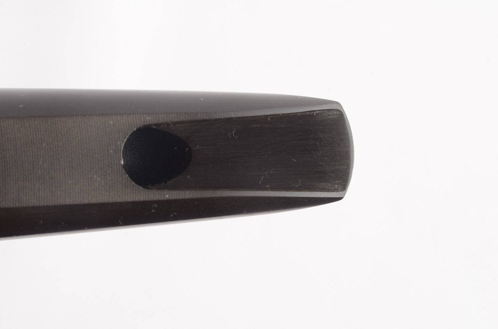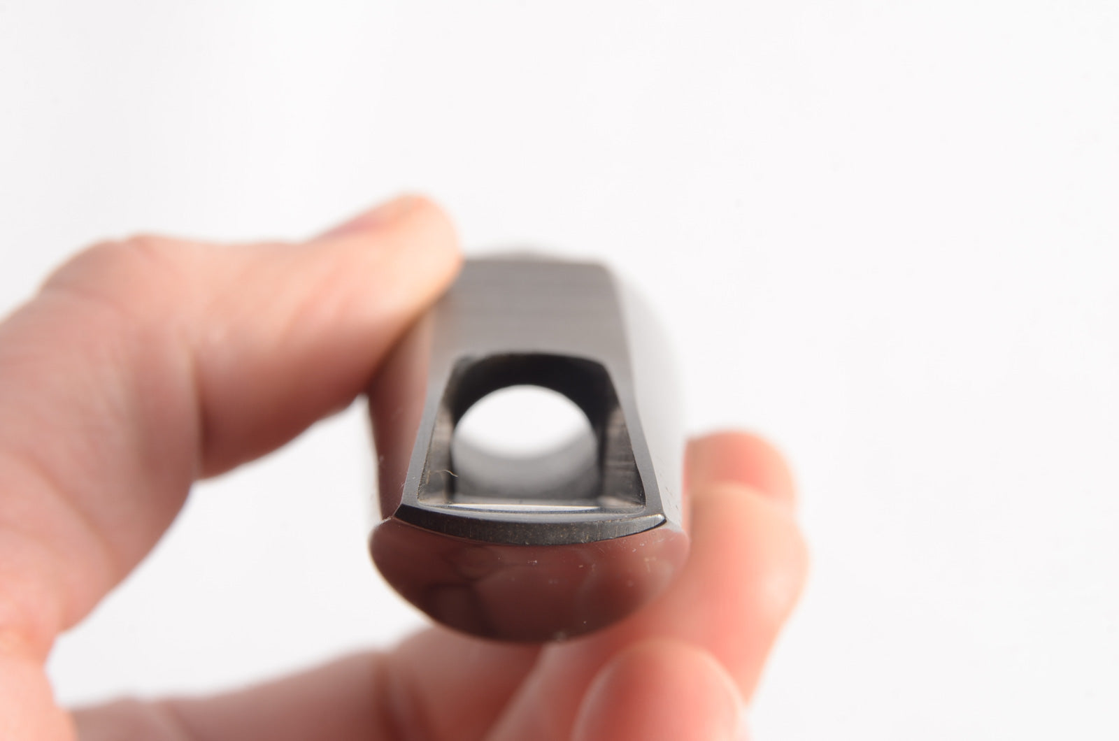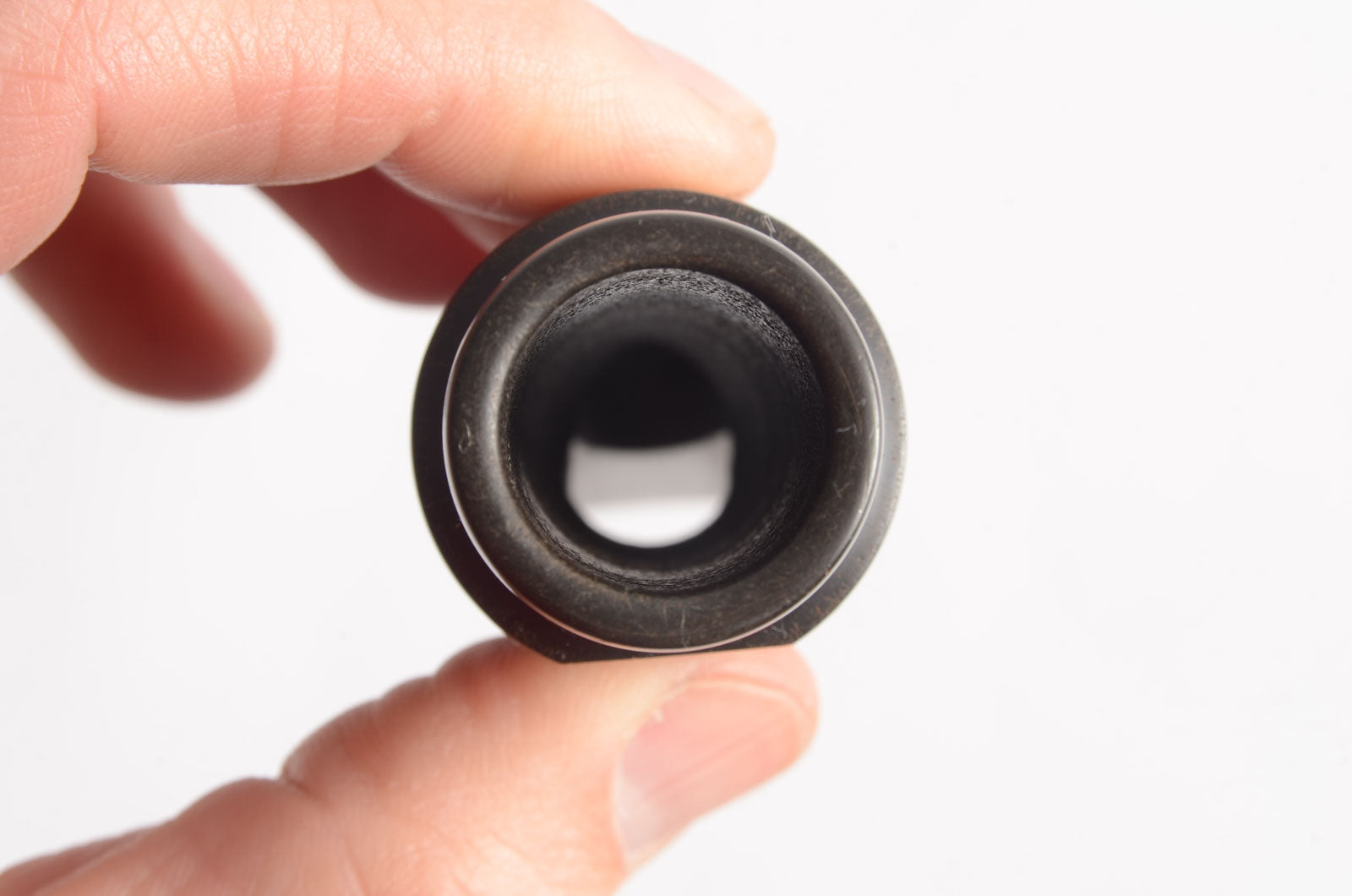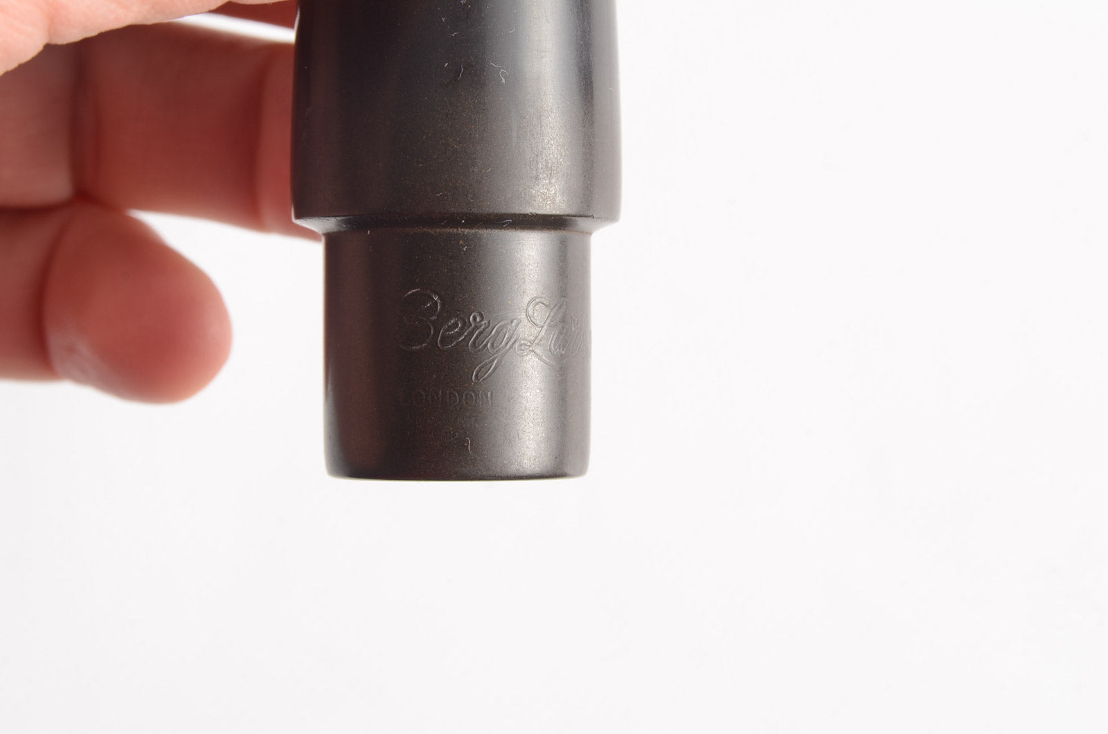Plays darker than a 0 baffle. This Berg HR has a bullet chamber and straight sidewalls. There are only a few tooth marks, and a little fading from oxidation. The tip measures 0.116". The table has curved machining marks. The 0 high baffle is mild by modern standards and produces a moderately dark tone. Plays more like a 2 or 3 baffle, and is a nice mouthpiece. Bergs are great to brighten up a tubby tenor without becoming shrill.