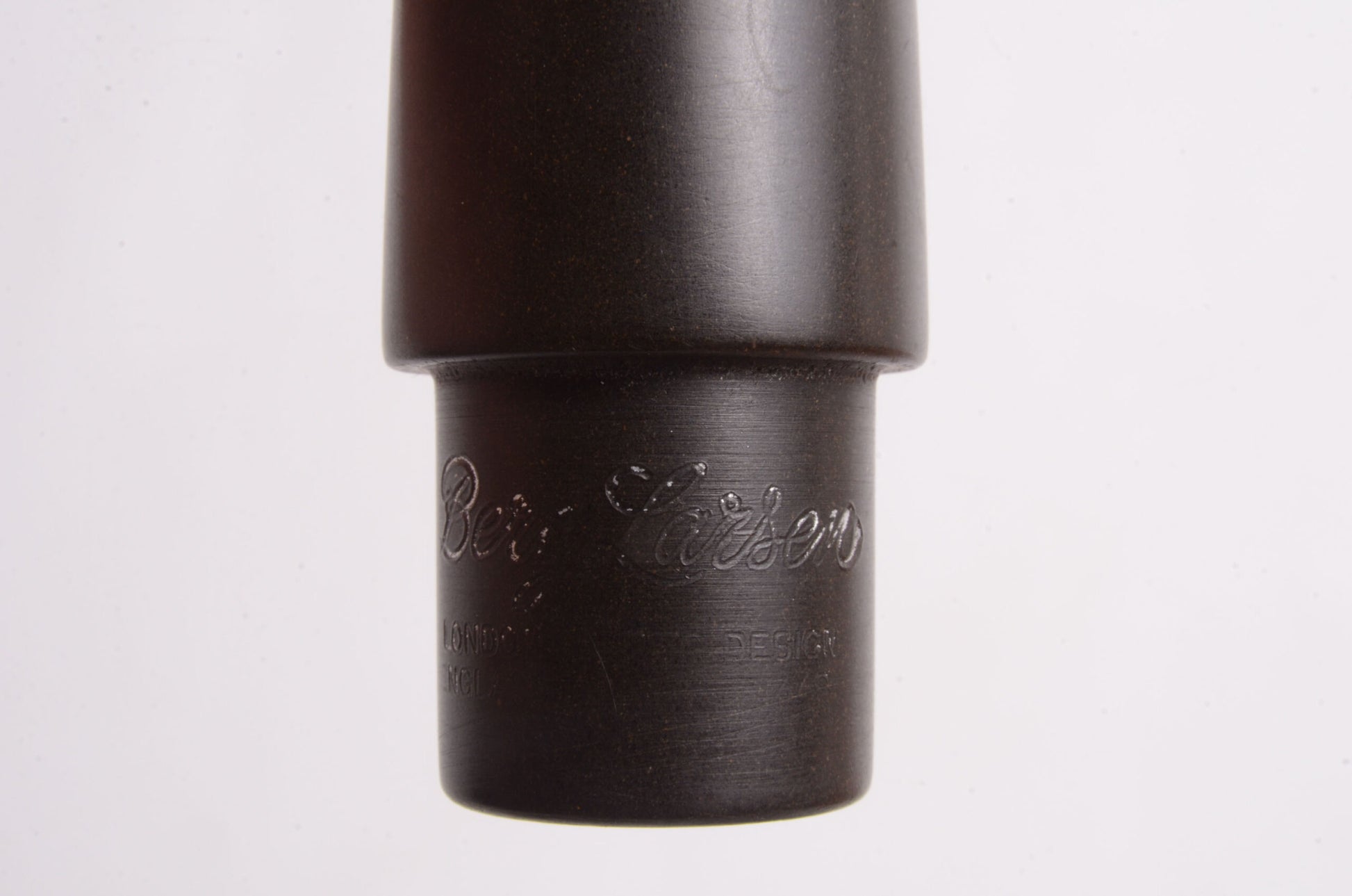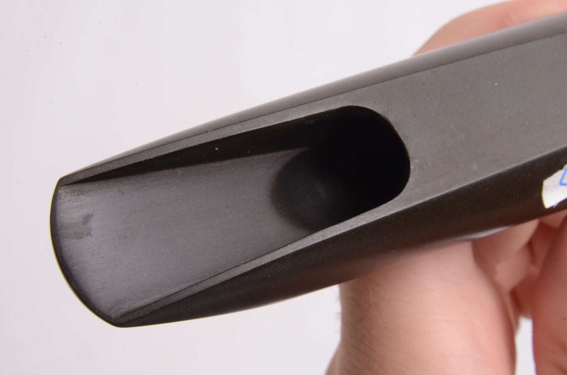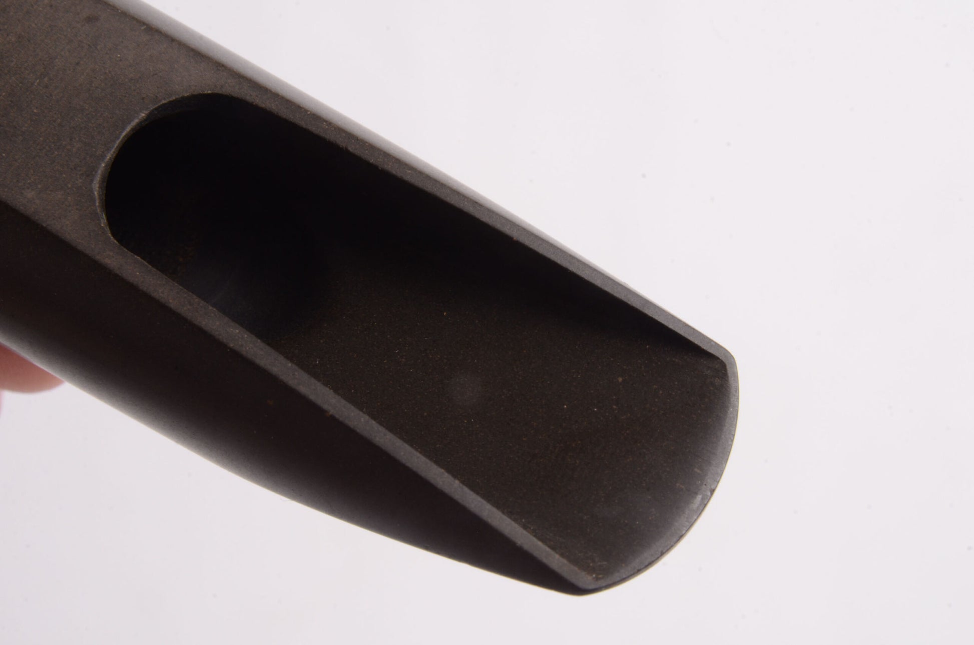 This is a fantastic older hard rubber Berg that is surprisingly easy to play despite measuring .130". It's pretty bright and projecting, as you would expect, but not shrill or annoying to listen to. Bergs are such great projecting tenor pieces, and they sound especially good on King saxophones. If you want to project while staying fat sounding, this is a winner. Curved machine marks on the table, original facing, no significant damage, and you probably know this, but 1 in the stamping means bright baffle configuration (0 is brightest and 3 is darkest, but not 'dark').