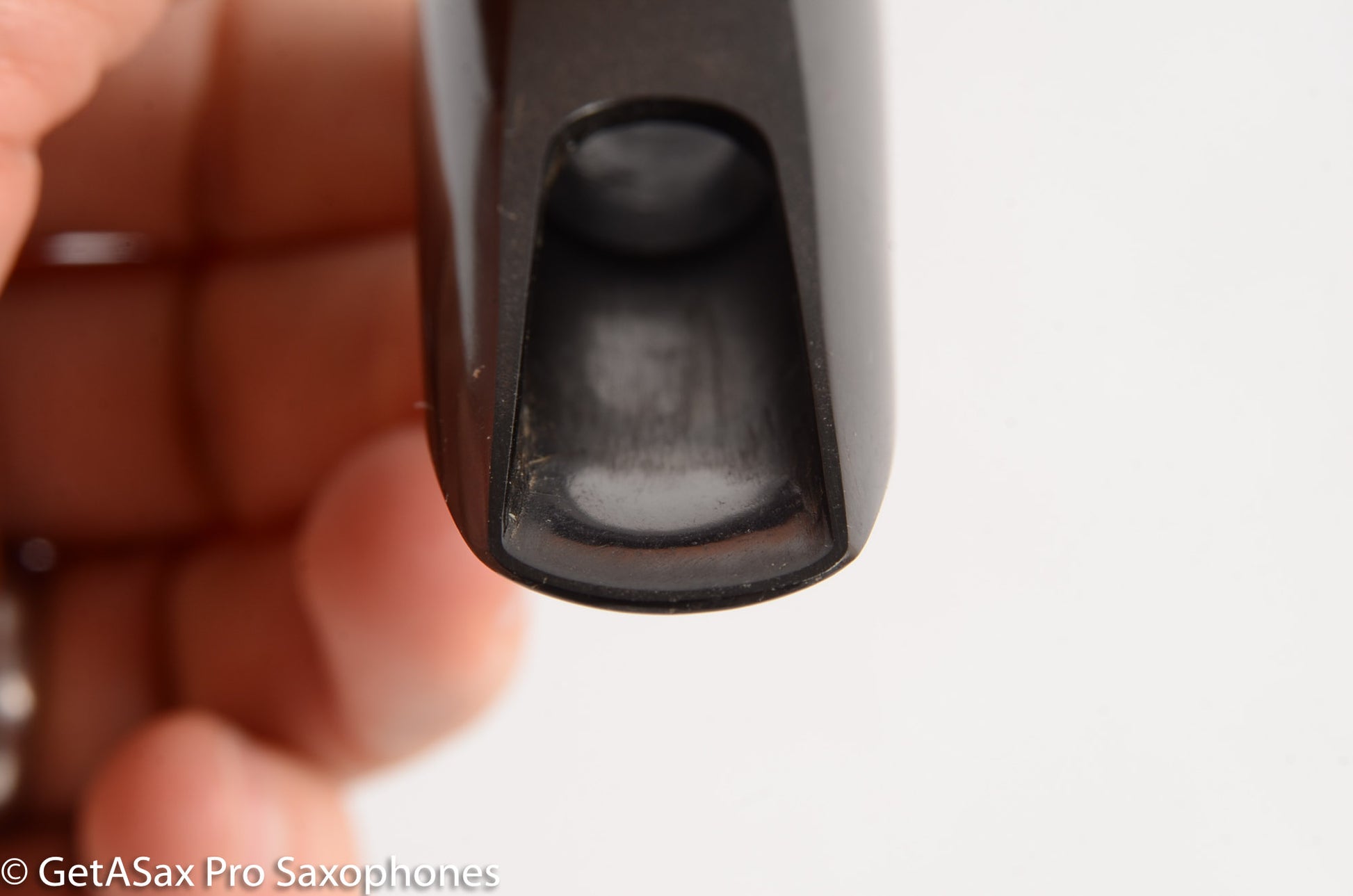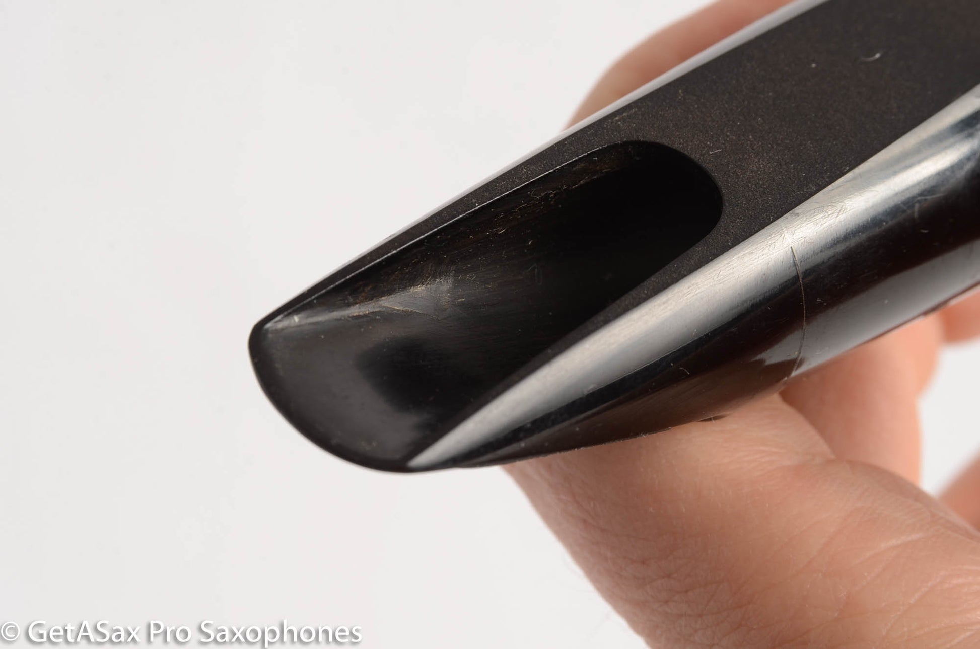 Scooped sidewalls, large round chamber, very subtle rollover baffle. Tip opening measures 0.058". With a hard reed, this piece is exceptionally bright but still very melodic and warm, more like an opera singer and less like Robert Plant when compared to a modern high baffle bright mouthpiece. This piece is in amazing condition!