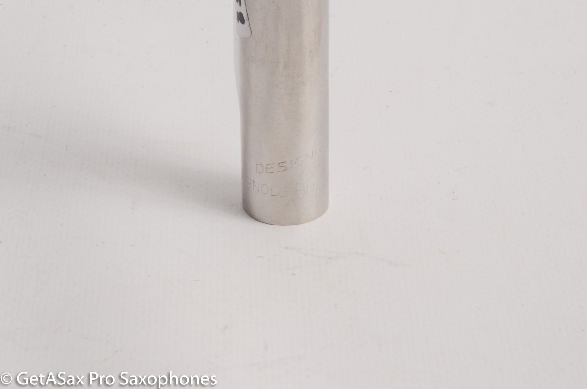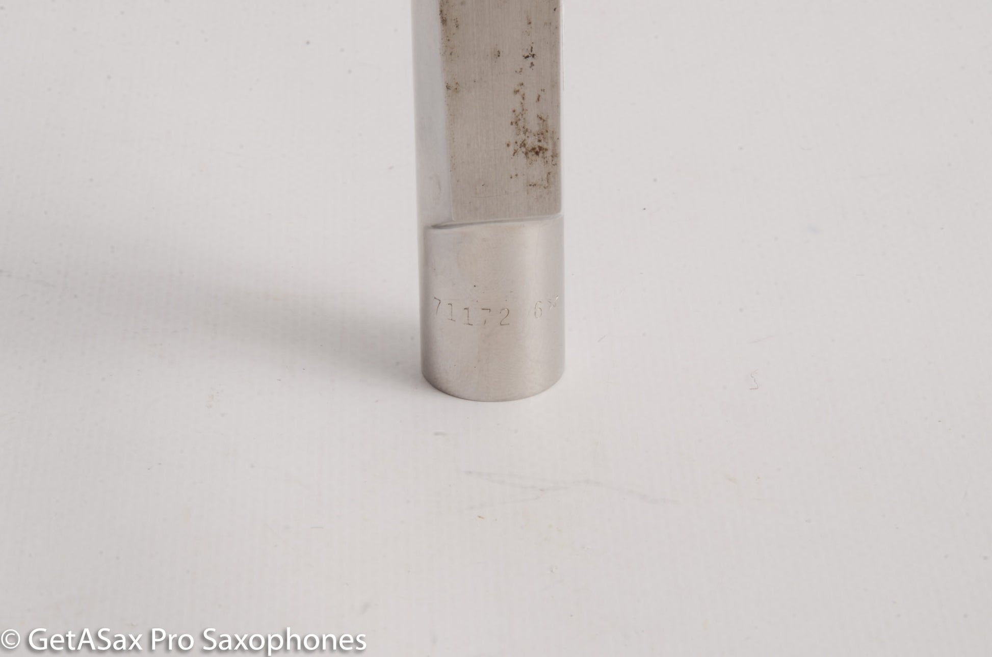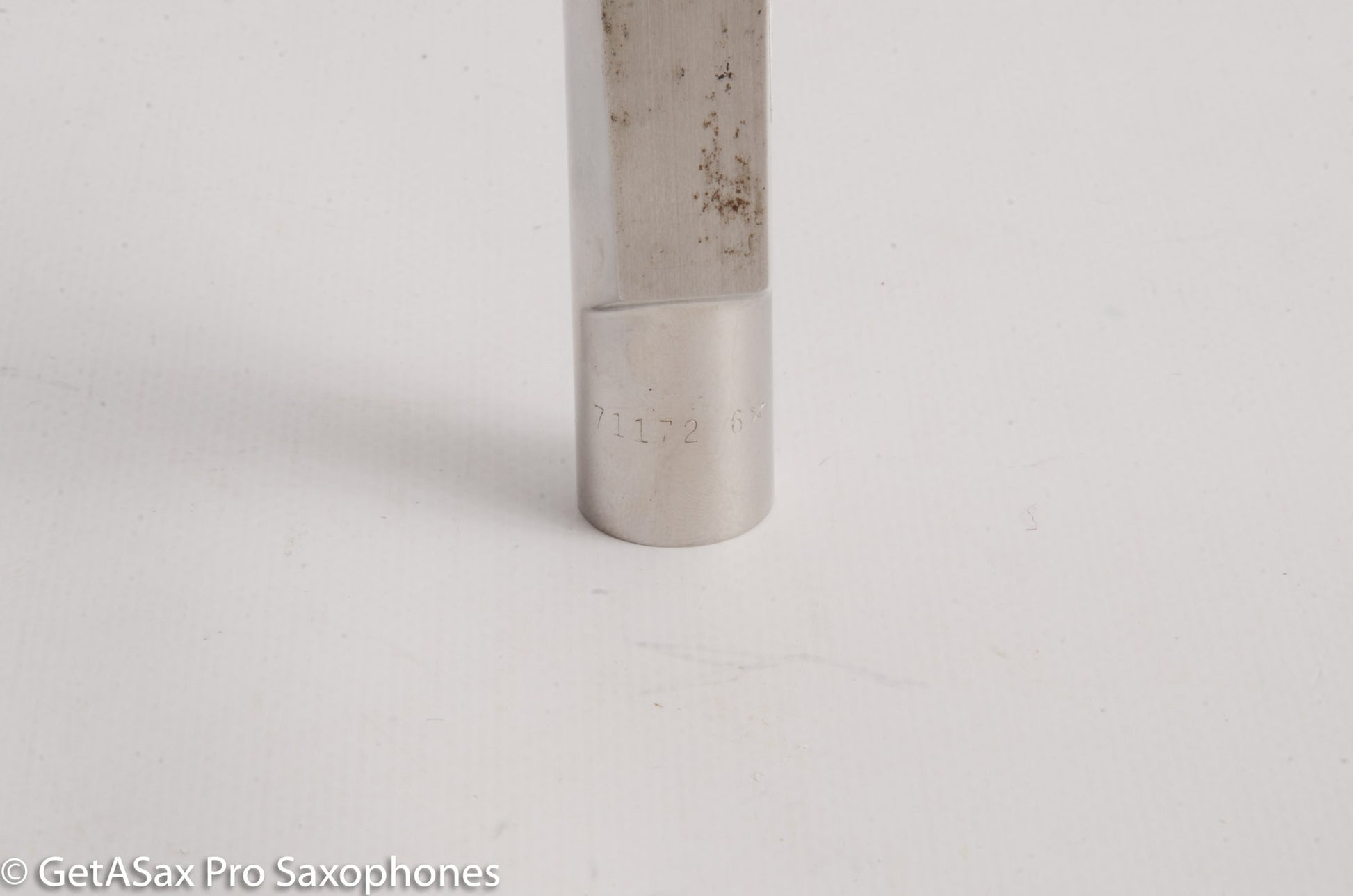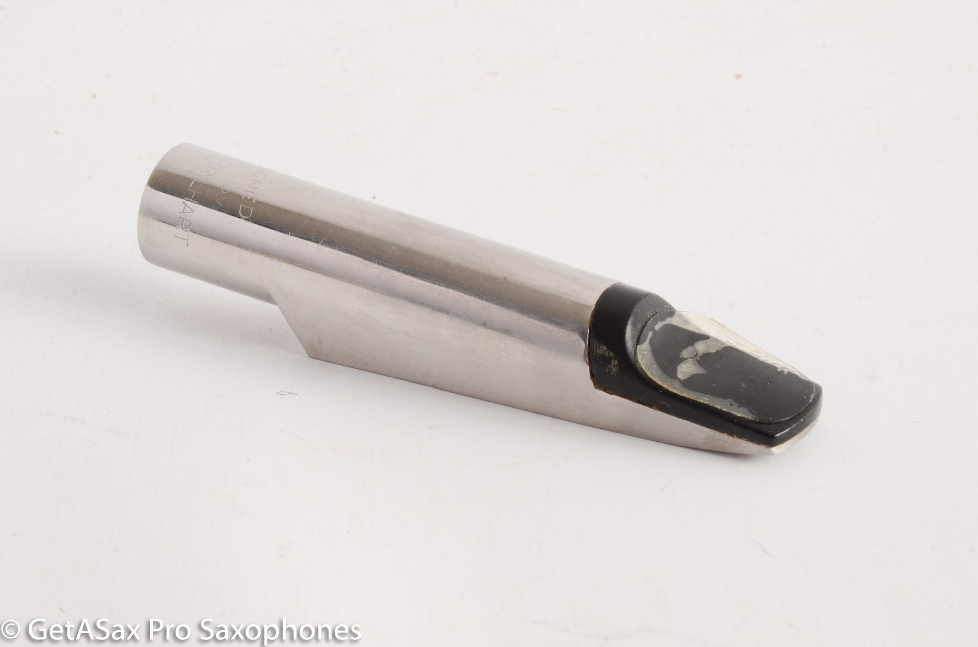 Guardala Studio like mouthpiece for 90+% less. Haha. Straight sidewalls, medium chamber after a high stepped baffle. Tip opening measures 0.096″. Not as bright as a modern high stepped baffle, more similar to Berg Larsen in that it has good projection while maintaining a dark lush tone. The unusual beak shape takes some getting used to, but it is interesting. The thick tip and low angle make the bite plate almost parallel to the reed.