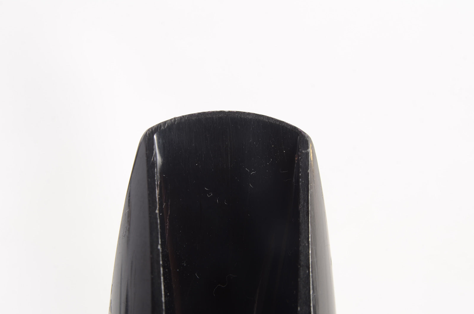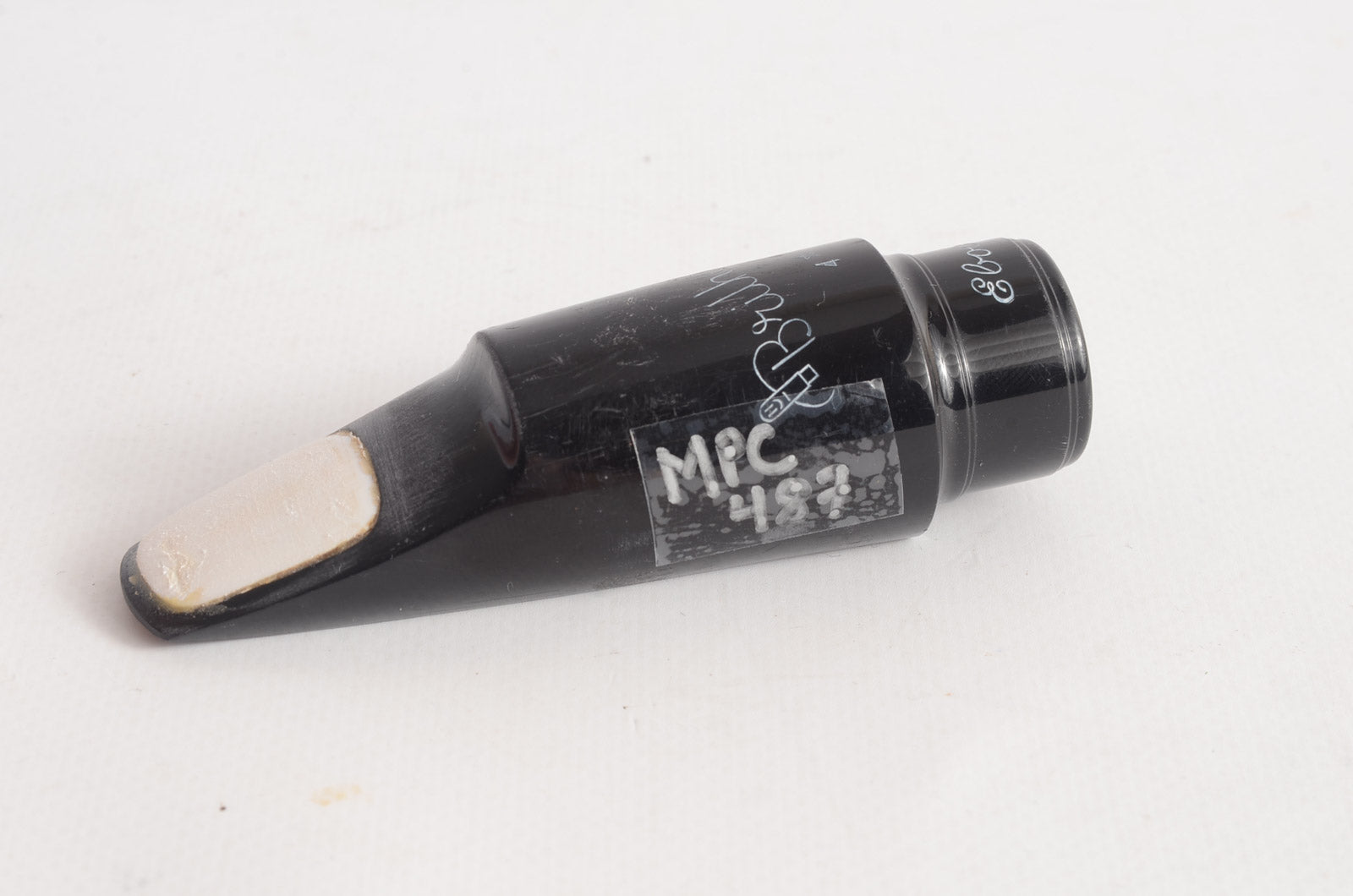Typical Brilhart thick straight sidewalls, tall and narrow chamber, and 0.076" tip opening. This piece speaks very easily and has a moderate back pressure, and moderate projection. A great ensemble piece for a developing embouchure or quite small group setting. The white bite plate is a replacement.