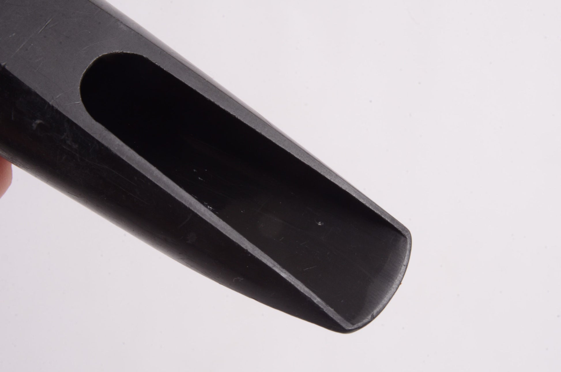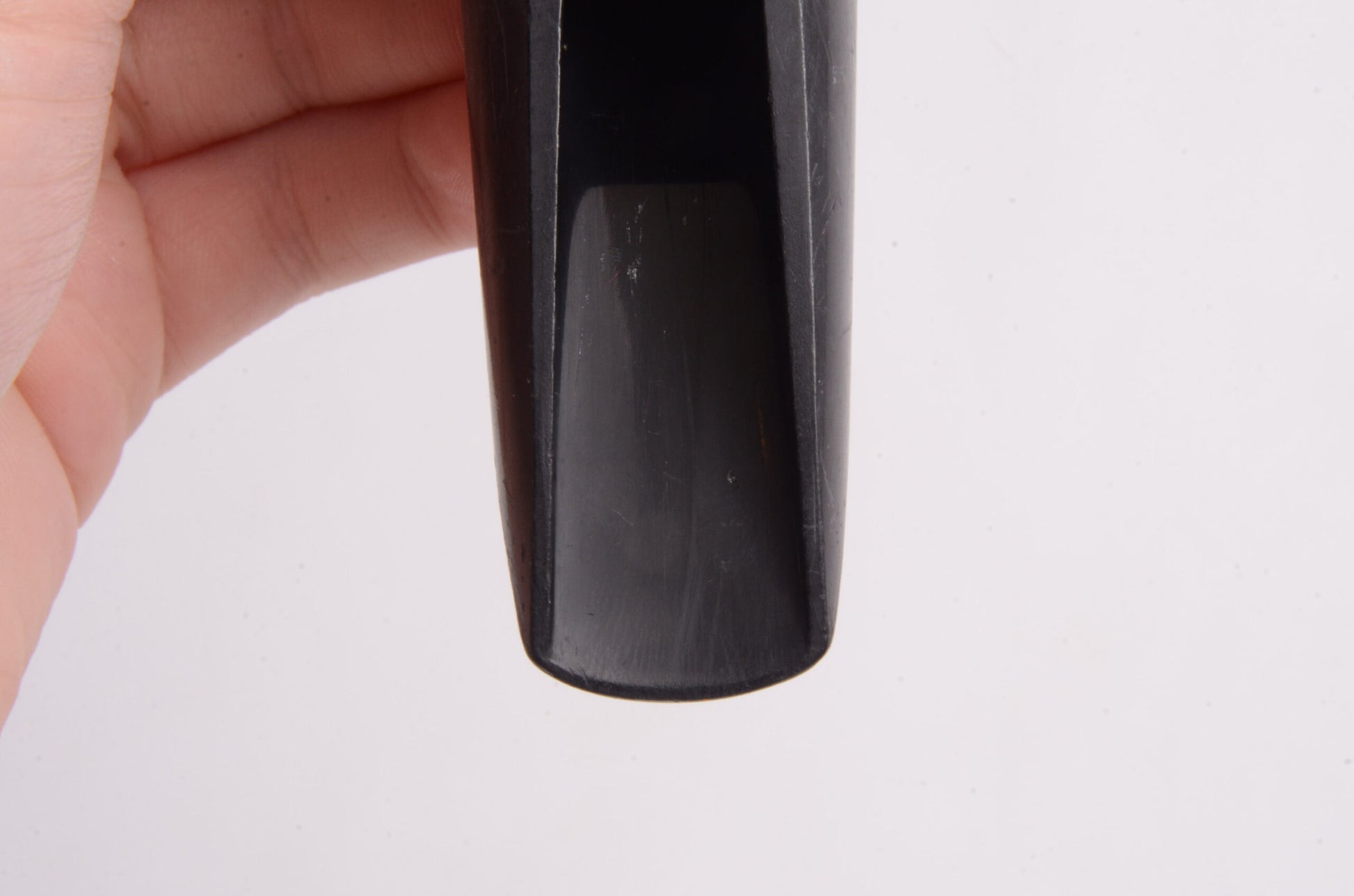 Here's a low-priced vintage Brilhart baritone mouthpiece that would benefit from some TLC. It could use a bit of CA glue (you can add some black pigment or carbon powder) to fill in the worn bite plate, and it needs to be cleaned and gently refaced. Not a ton of work to get a decent vintage Brilhart.