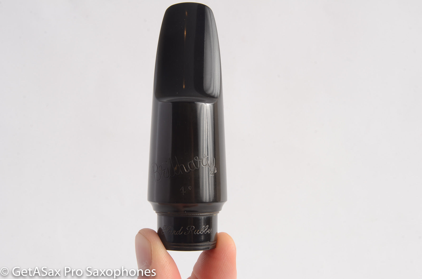 This Hard Rubber Brilhart is a lovely (and highly-coveted) vintage jazz mouthpiece that has a lot more in common with a Link Slant signature Tone Edge or Dukoff Supersonic than with other Brilharts. One of the best vintage tenor mouthpieces ever, bar none. This particular one comes from a small collection of the best vintage Brilharts amassed by a friend of Arnold Brilhart who has now retired from playing tenor. It has scooped sidewalls and large round chamber, rollover baffle, and the tip has just been opened to 0.105" by Erik Greiffenhagen. The facing is perfect, and responds effortlessly in all registers, with a balanced, comfortable feel. Erik is widely-recognized as one of the best mouthpiece refacers around today. He uses the best authentic vintage curves for his facings, so this piece is just like it would have been if it were originally opened to a 7*. (All mouthpieces started at 0.0" tip.) This is truly 'one of the good ones' and it's priced very reasonably for all that.