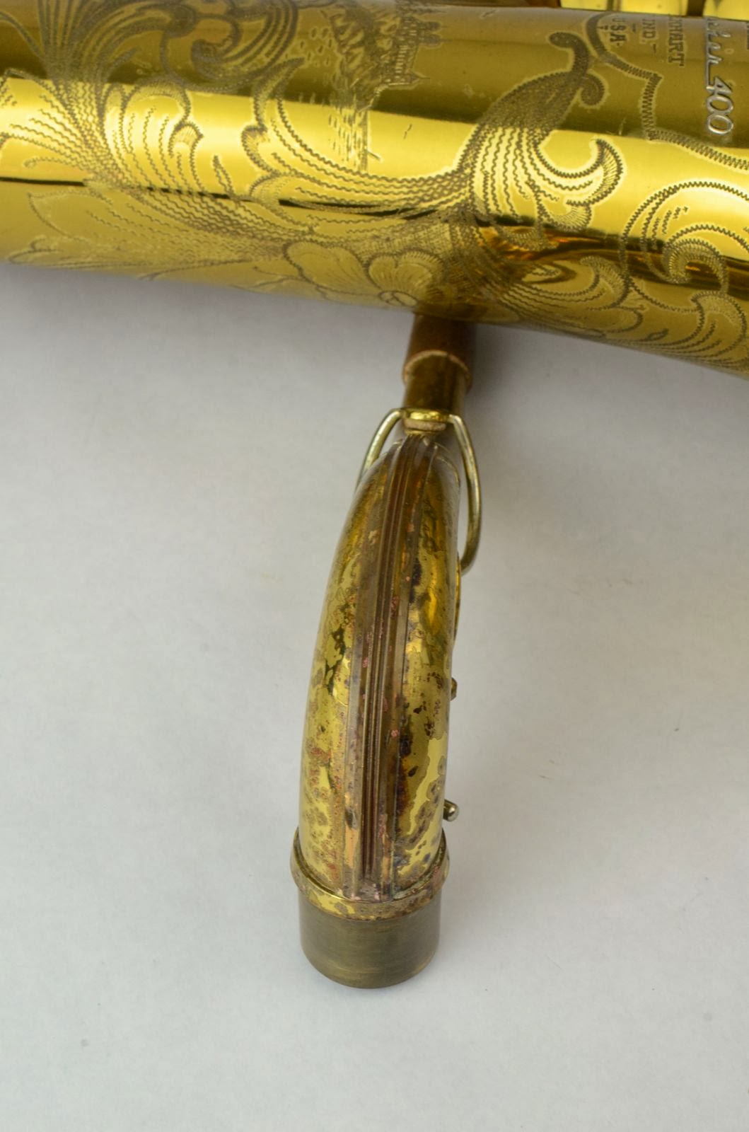 These 400 tenors are probably the finest saxophones produced by the Buescher company and represent the pinnacle of its several decades of saxophone development. Here's an excerpt from Buescher's product announcement when it first released this model: "Our Greatest New Model Announcement"