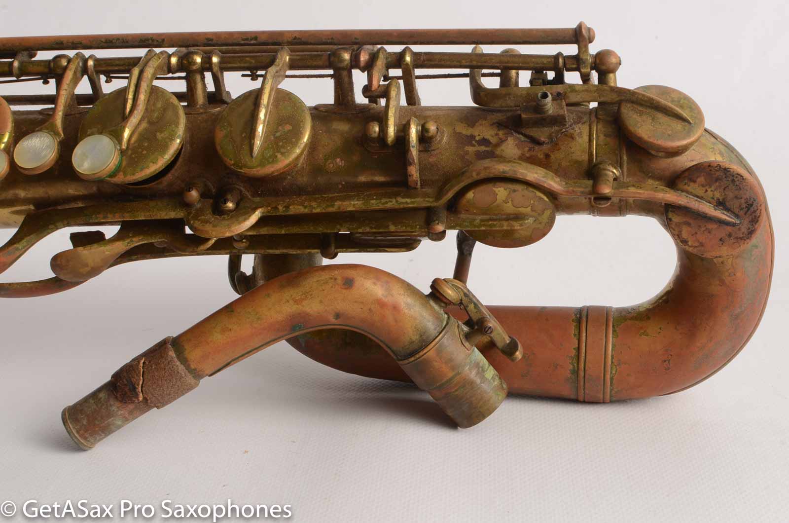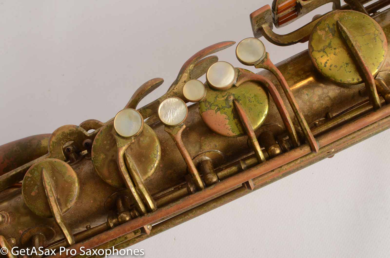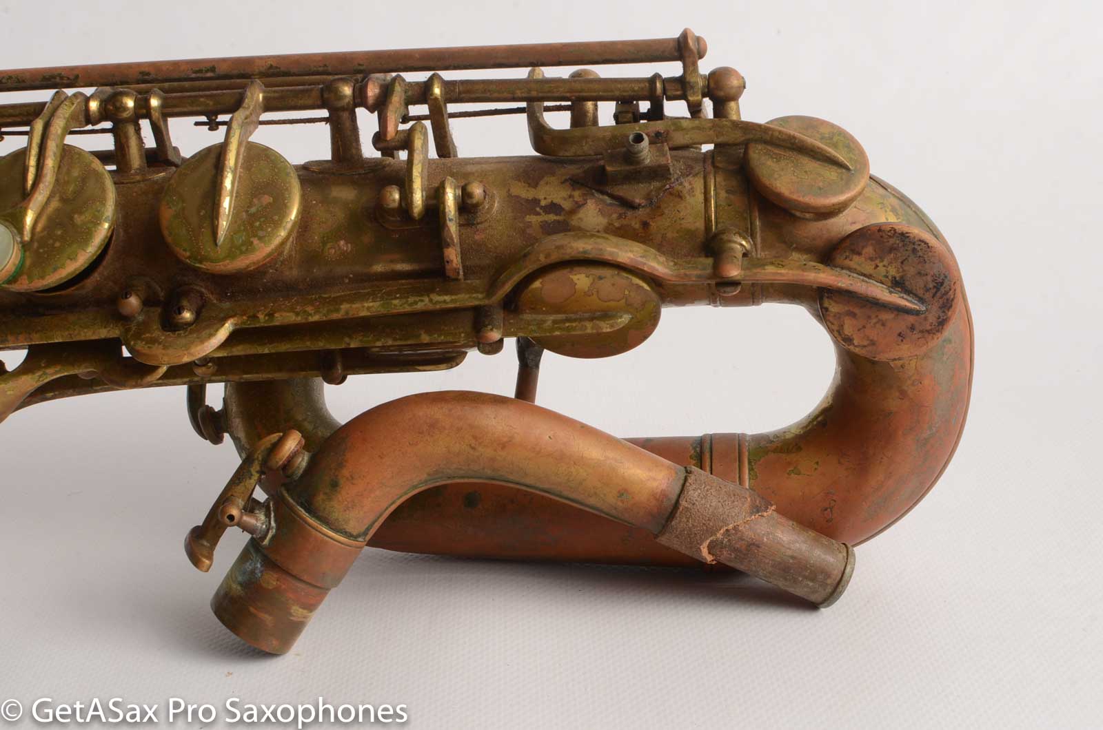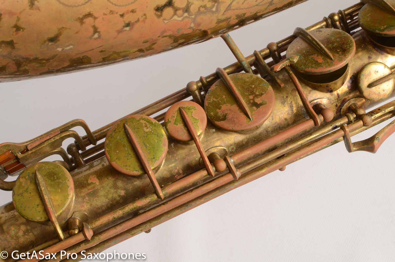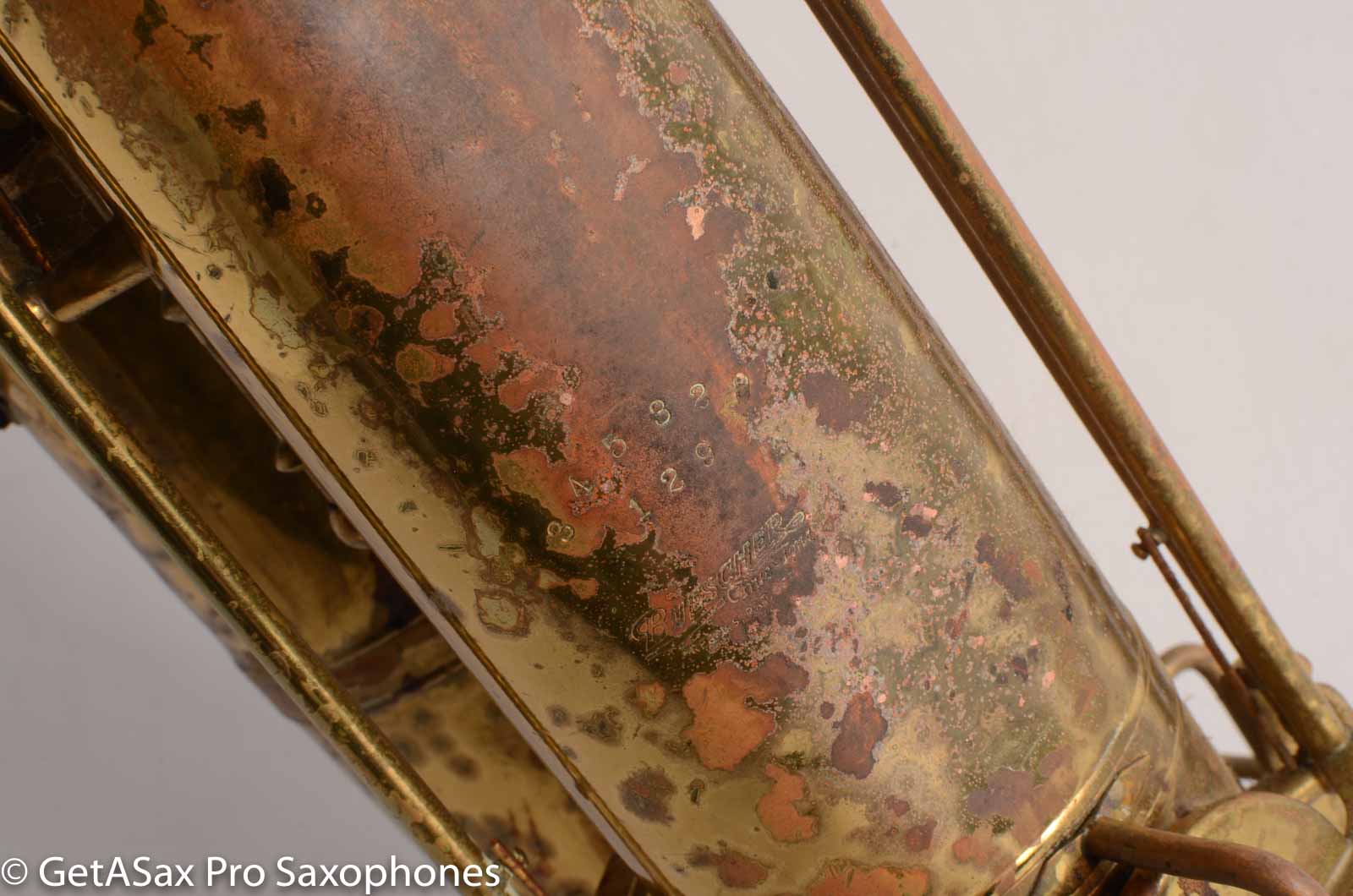 This Model 129 Buescher Big B baritone is in good shape for the price. It has older pads, and plays a bit on them. Original lacquer, resoldered neck receiver and brace. Check the photos for dents, dings, and other resolders. The tone is beautiful on this Bari, and for the price. it would be hard to beat. This Buescher Big B baritone is great fun to play. It has a big, warm tone with excellent intonation. Feel free to ask more questions on this one about condition. I can do a detailed in-hand description if you want.