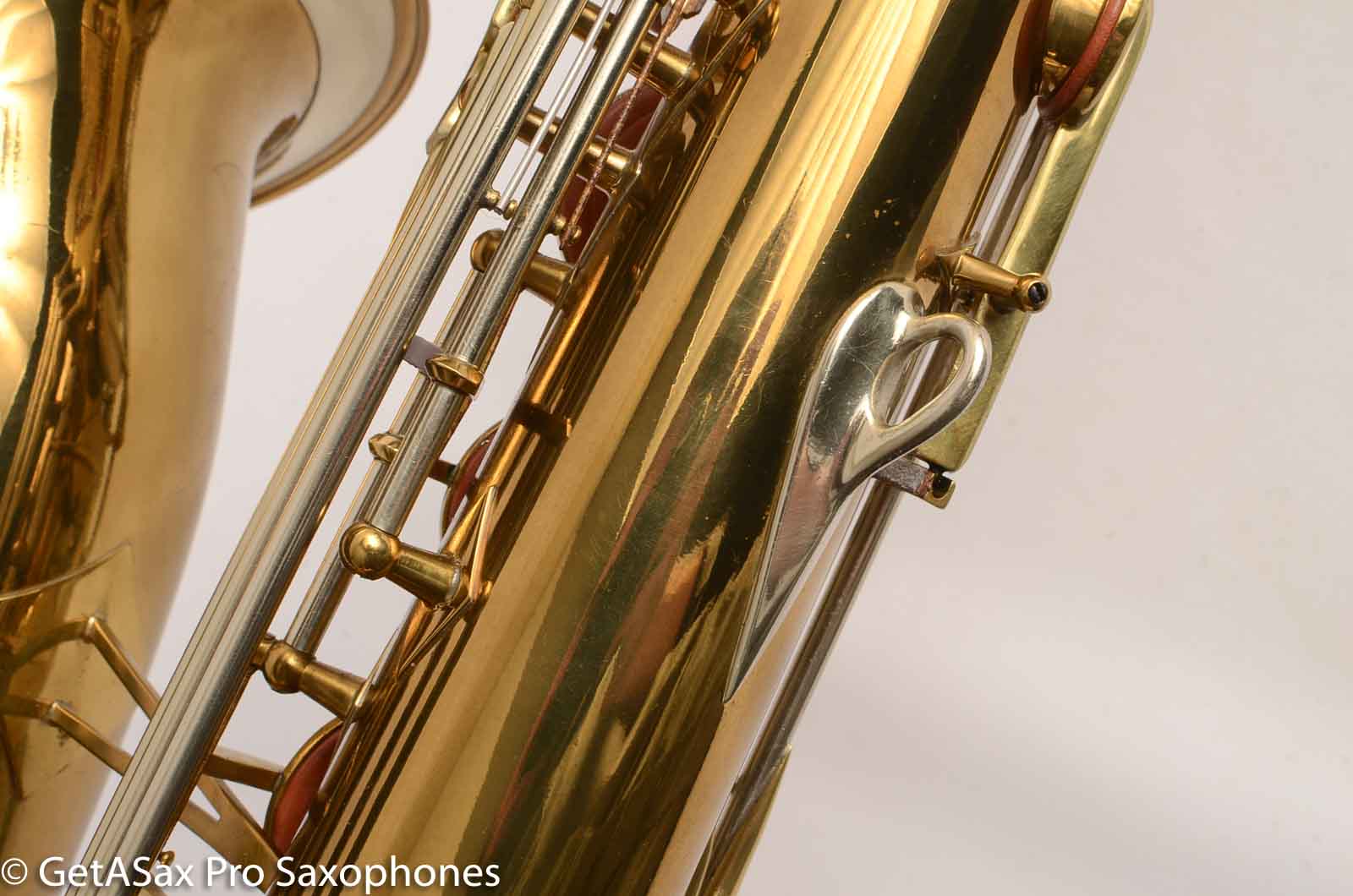 This looks like original lacquer, but is actually a factory relacquer job done with basically no buffing or changes to the brass of the horn. Probably just a chemical strip, hand polish, and re-spray. It looks really good, and plays great too!