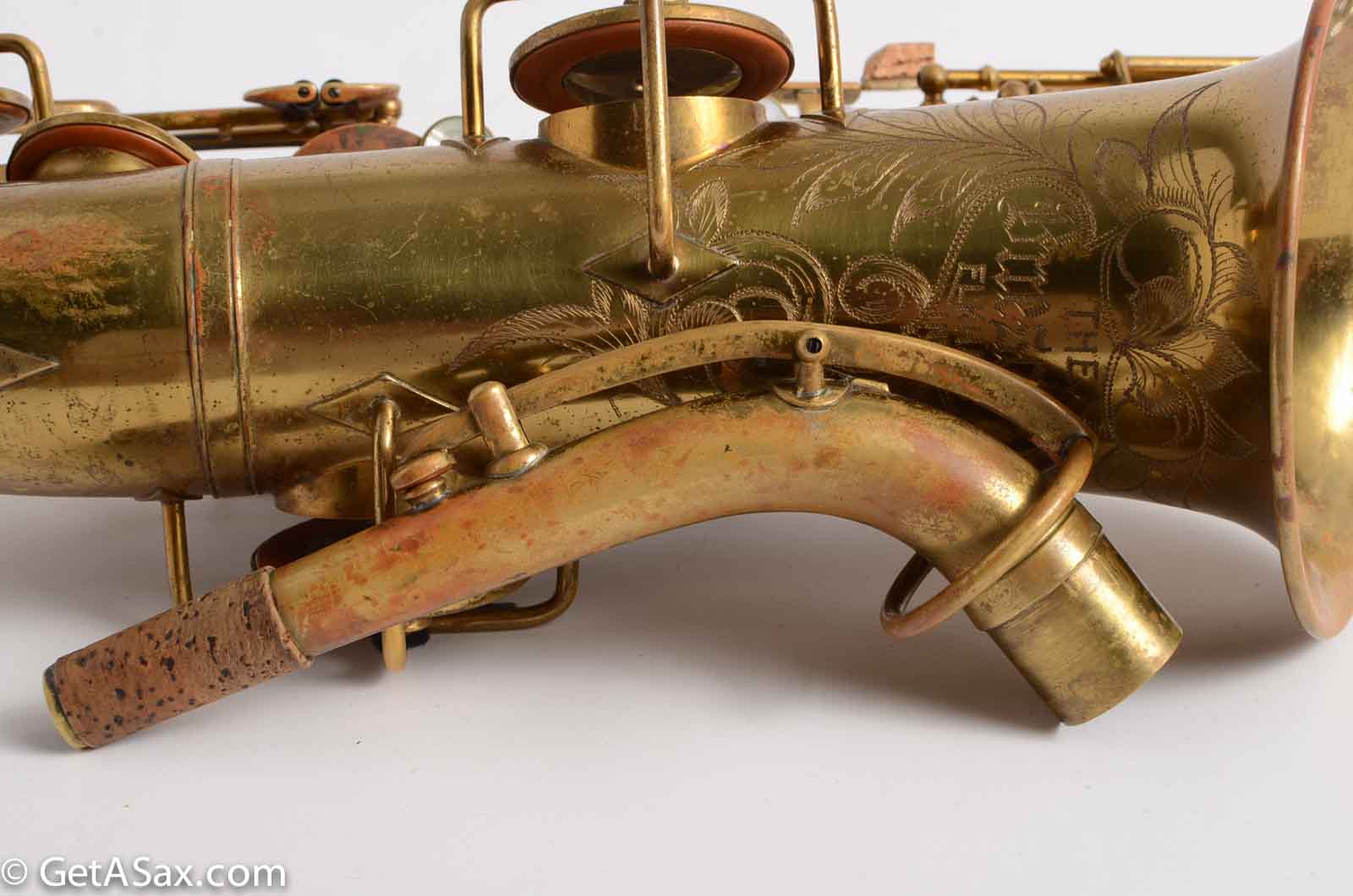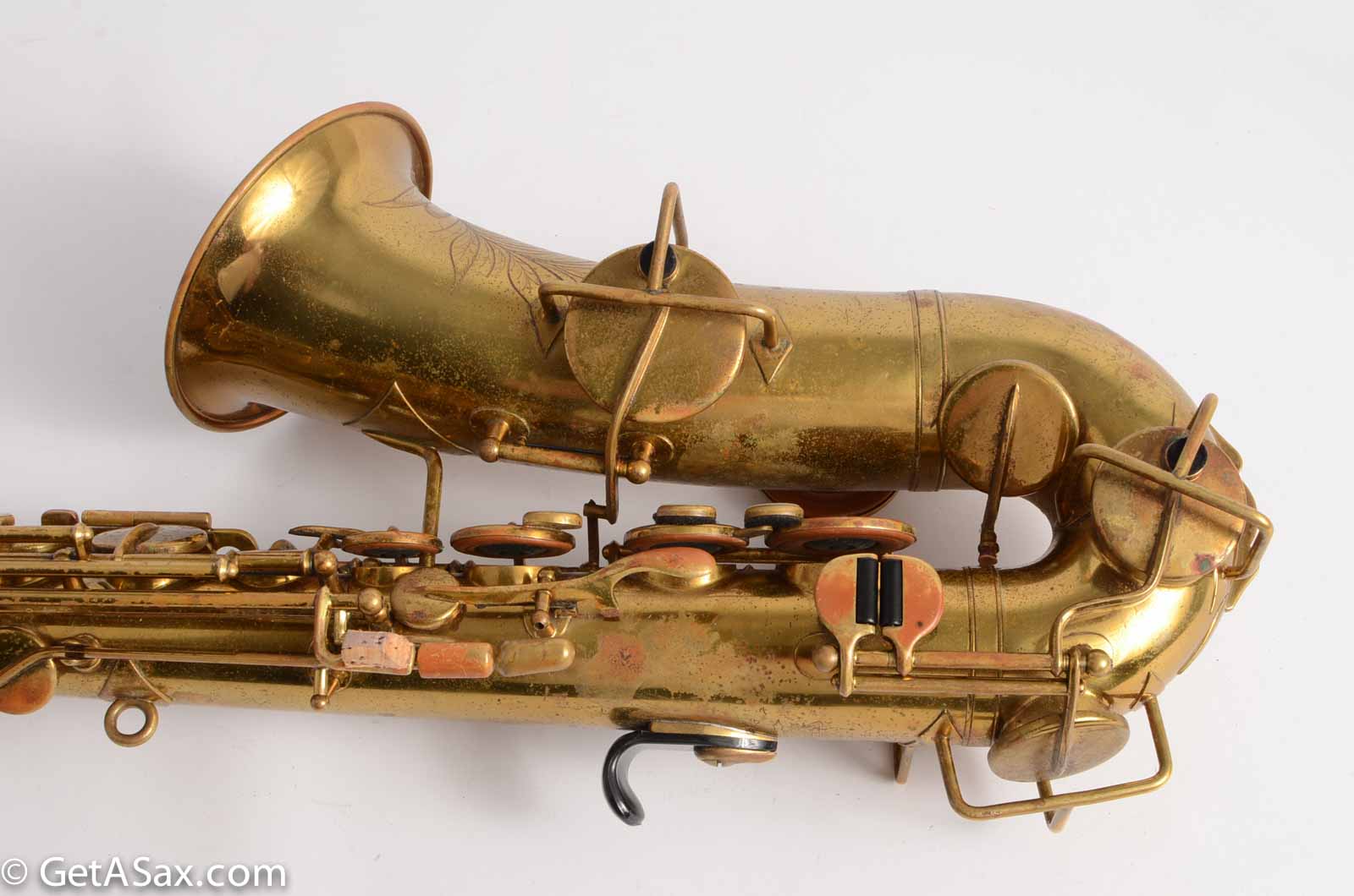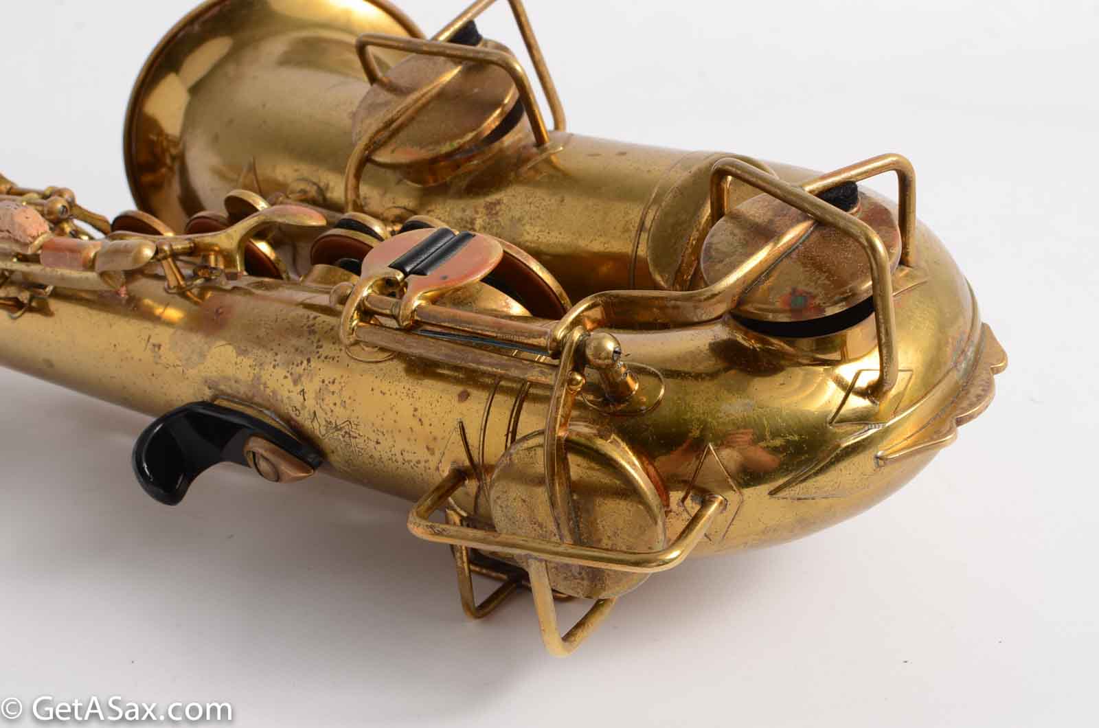 If you are looking for a great horn for the money, this is it! It has original lacquer, and I got it from a serious player who put an expensive overhaul into it. I think just the overhaul cost him over $1000.00! He had the palm key touches angled up to make them easier to reach. I can put them back to "normal" if you want. This horn also has a modern, more comfortable thumb hook installed for easy playing. The tone is medium dark, round, and complex. The intonation is quite good. It's a very respectable saxophone - don't be thrown off by the price. It's way better than many saxophones that cost double or triple this price new. If you could use a solid alto but are on a limited budget, look no further. There's only one available. Get it now!
