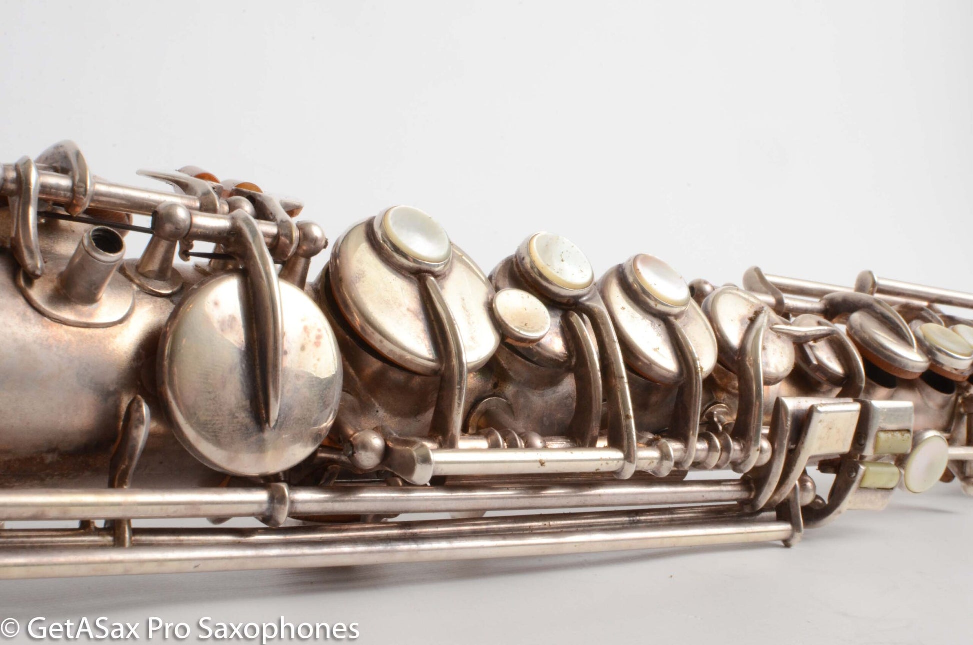 People keep emailing me asking ‘Is this really a C soprano?’ and I say, “Yes, it really is!” So if you were wondering, then now you know. It has old pads, so you will need to budget for an overhaul, or at least for some significant pad work for it to play its best. I replaced the case foam since these pictures were taken, and the case now keeps it nice and safe for shipping purposes. This horn is in quite good condition and with a good overhaul and gentle hand polish it will look like a new saxophone! The ‘True’ in True Tone refers to pitch accuracy, and it’s actually correct. These horns tend to tune really nicely. If you don’t have a C soprano mouthpiece, the best option is the modern Yamaha 4C or 5C soprano piece for Bb soprano. It has the right dimensions to tune well on this horn, and it’s also cheap and easy to play. I could throw one in with the horn for free if you want. A C soprano is fun because you don’t have to transpose. Whether that means playing at church, or just reading along with a piano at home, it’s a beautiful sounding sax that isn’t too expensive, and is professional quality.