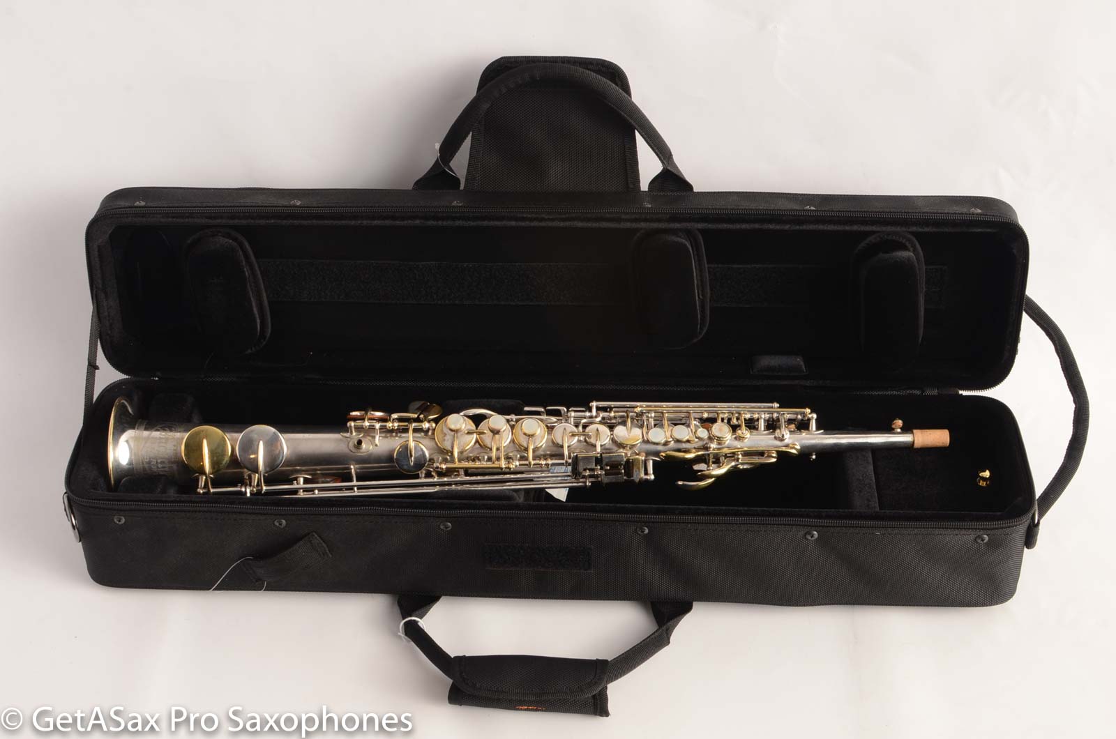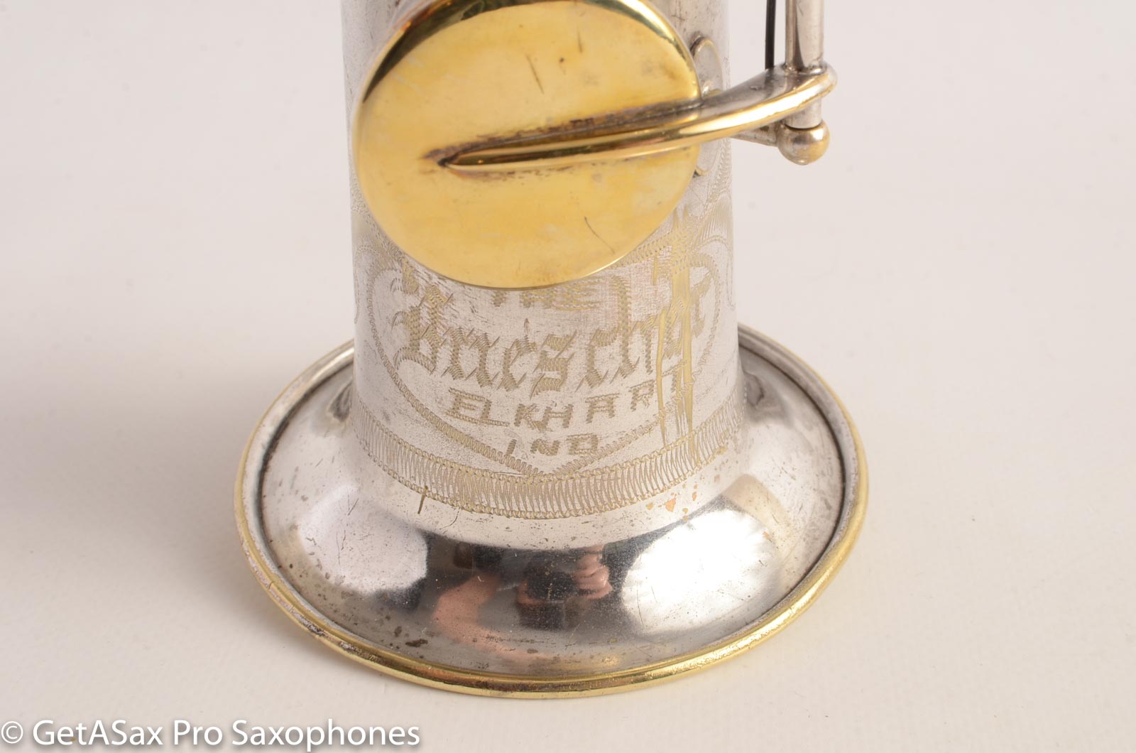 The Buescher True Tone soprano saxophone is among the best vintage sopranos ever made. This is the rare and desirable "Series IV" version of the True Tone. It's the last version they made, and it has the roller G#. These typically are the easiest to play of the True Tones, though none of them are bad. I like the Series III just as well, as a side note. Anyway, this soprano plays beautifully with a big, warm, full tone all the way up into the palm keys. It doesn't thin out like most modern sopranos do. The intonation is very good -- I mean, it's called the 'True Tone' for a reason, but still. This horn has been played a lot. It just got all new pads, corks, felts, most springs replaced etc, by the look of it, before I got it. The overhaul feels very good. This soprano does not have its snaps and spuds anymore (the original Buescher pad system), but it plays better on these pads anyhow. If you're looking for the best possible vintage soprano for under $1500 with good pads, then this is very hard to beat in that category.
