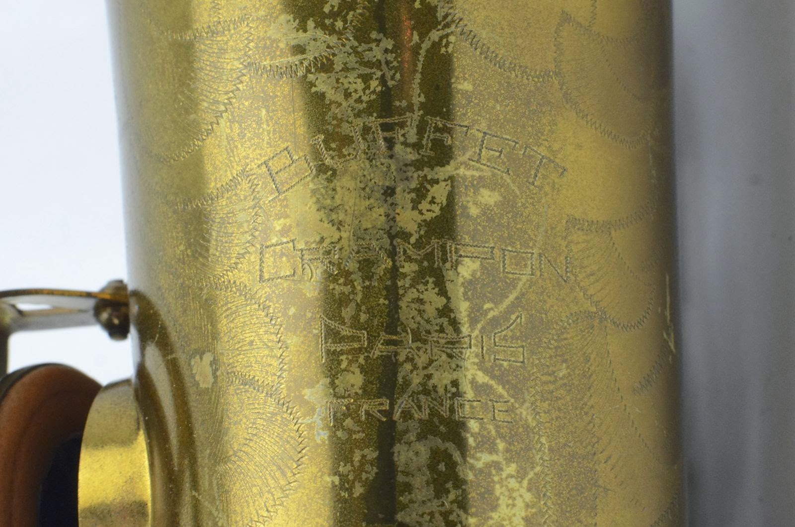 It plays nicely with a big, warm French core to the tone. It is Selmer-like, but with a bigger sound overall and with lots of power. It is medium bright and open with a nice complex core and quite a bit of power. This horn will literally do it all. Original case comes with it, in good condition.