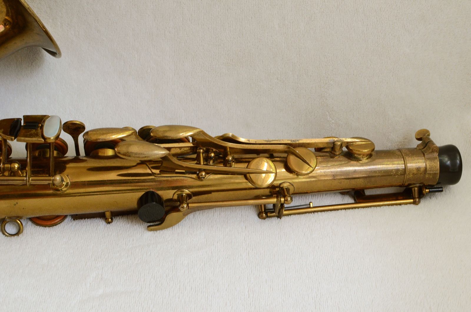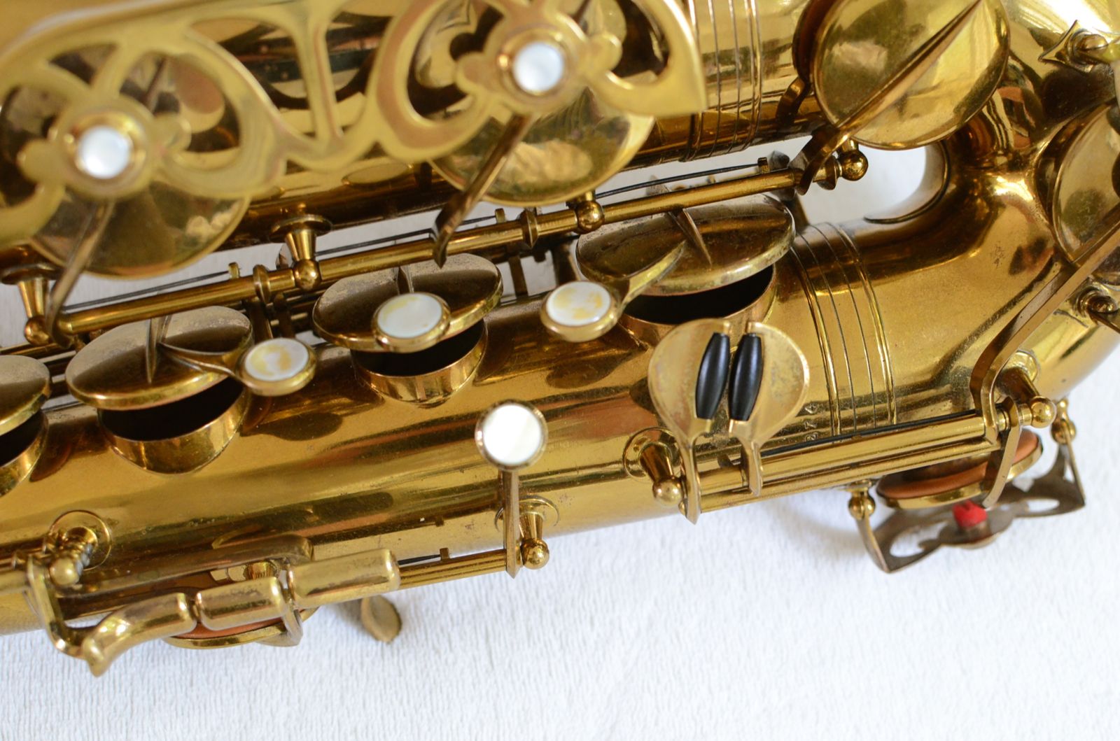 This horn currently plays quite well on its original pads, which are sealing well. Compared to a vintage Selmer (everyone always asks this) the tone is fairly similar, but it has a bigger sound, a slightly different but still French core (impossible to describe) and similar ergonomics (but the RH is a bit more spread than a VI, for instance). Intonation is very good on these, as a rule. If you like modern ergonomics, you're interested in a more vintage tone, but you don't want to have something that's totally different from modern, (and you don't want to spend a ton) then the Buffet SDA is what you want to get! It comes with the original red leather Buffet case, which is also in good condition.
