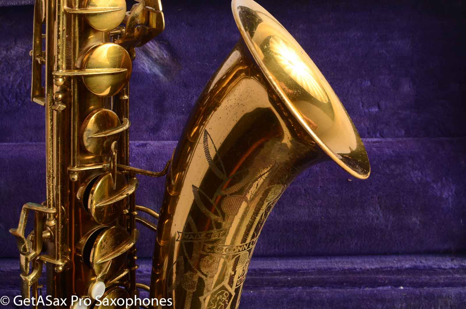 This is a beautiful, original lacquer Conn 10M 'naked lady' (saxophone players are so eloquent) Tenor Saxophone from 1940. It has had some typical small dents removed from the bow area, and a very small one on one spot on the neck, and that's about it for past repairs. The neck is not pulled down, and the bell flare and body tube are both in very good condition. This horn was low miles when it came in, with most of its original pads when I got it. These photos are with the original (mostly) pads, but this 10M just (Oct 25) got a fresh Matt Stohrer overhaul. Most folks have never had the pleasure of playing a 10M with a truly great overhaul. It's like no other saxophone, and like no other playing experience. The heavens open, and you hear the sound that you've been looking for all these years. Seriously. I keep hyperbole strictly under control in my descriptions. There's nothing like a great 10M with a great overhaul. And that's what you're getting. A hand-picked (and I am picky) example of a 10M from the best vintage, that comes with an overhaul from Matt Stohrer who has spent his life honing the craft of vintage saxophone repair. It's the best. Saxophones done right.