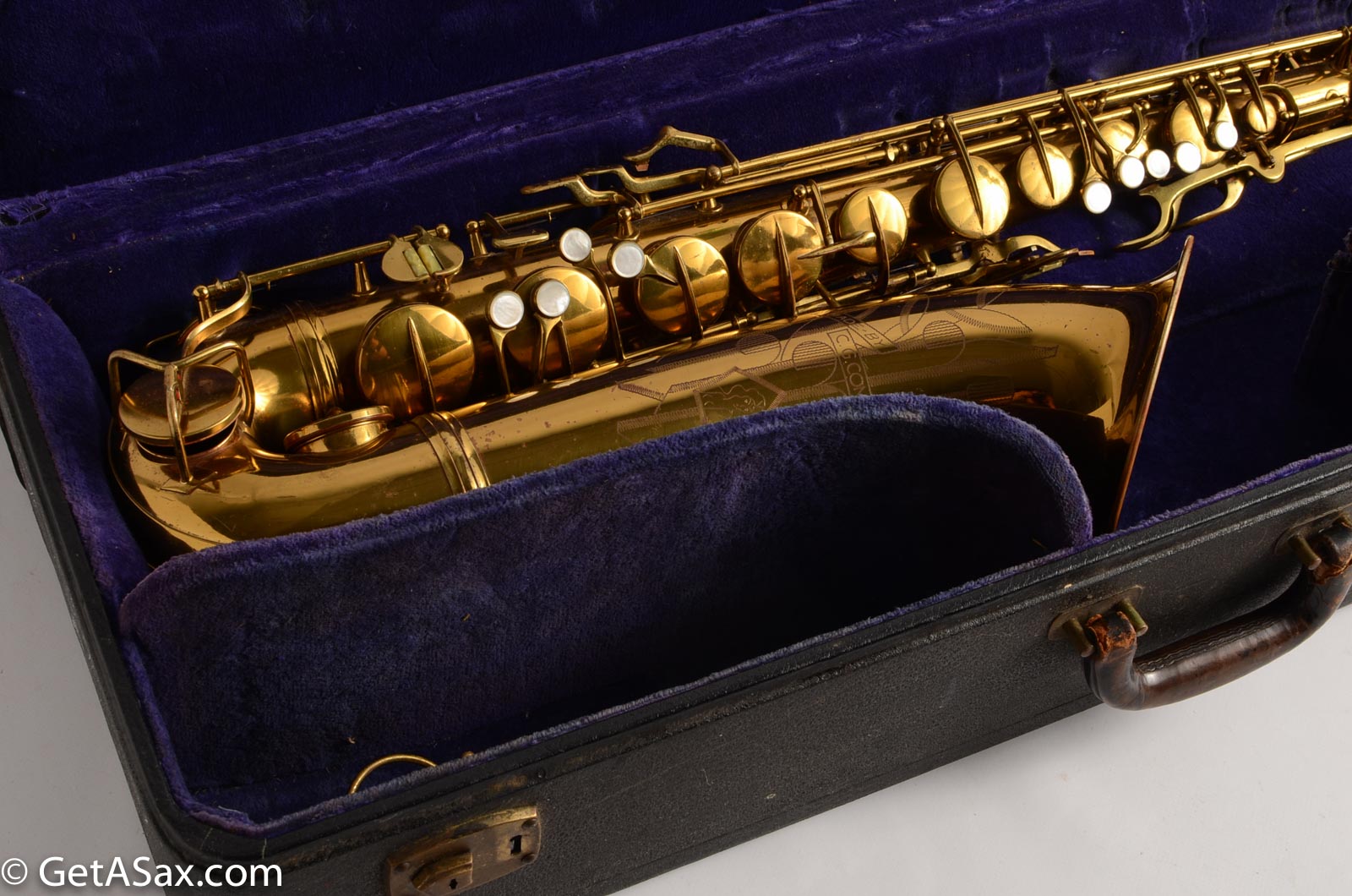 1939 was arguably the single greatest year for saxophone-making, and this beautiful 10M hails from that golden era. It is in remarkably fine condition, with even its original factory pads still intact! It has had a few dents removed over the years, notably one on the bell, and a few other small ones, but it's in great shape overall, and will look even better with an overhaul. If you're looking for a nice, clean 10M to buy and get overhauled, this would be a great option. It's priced competitively to give you room to do great on it even with the repad it needs. These horns play so well and so consistently from one to another, that they are serious contenders for the title of best tenor ever. They tune well, feel great under the fingers ergonomically, and are just inspiring instruments. I have one very similar to this that I play personally, and I can't recommend them highly enough.