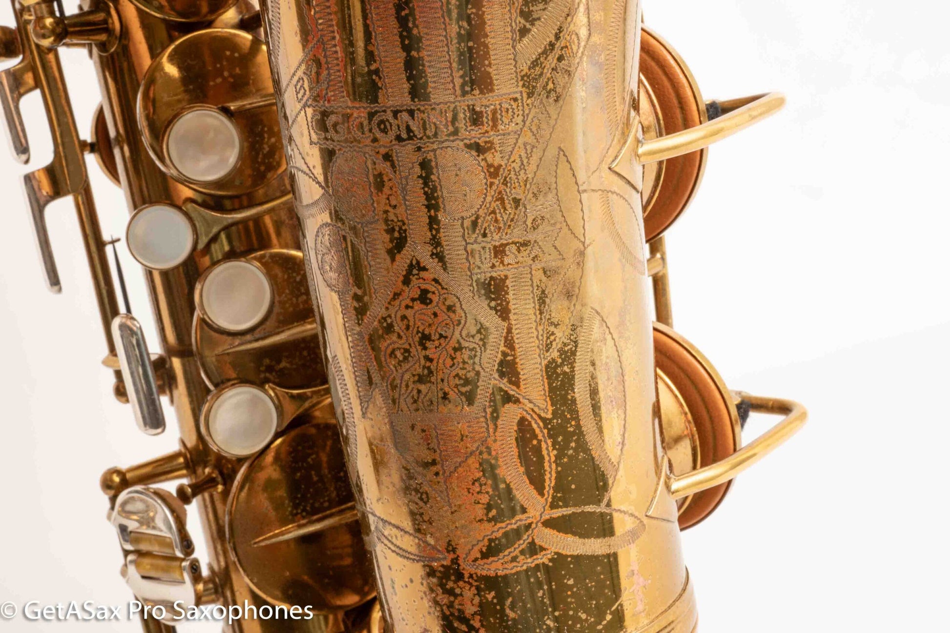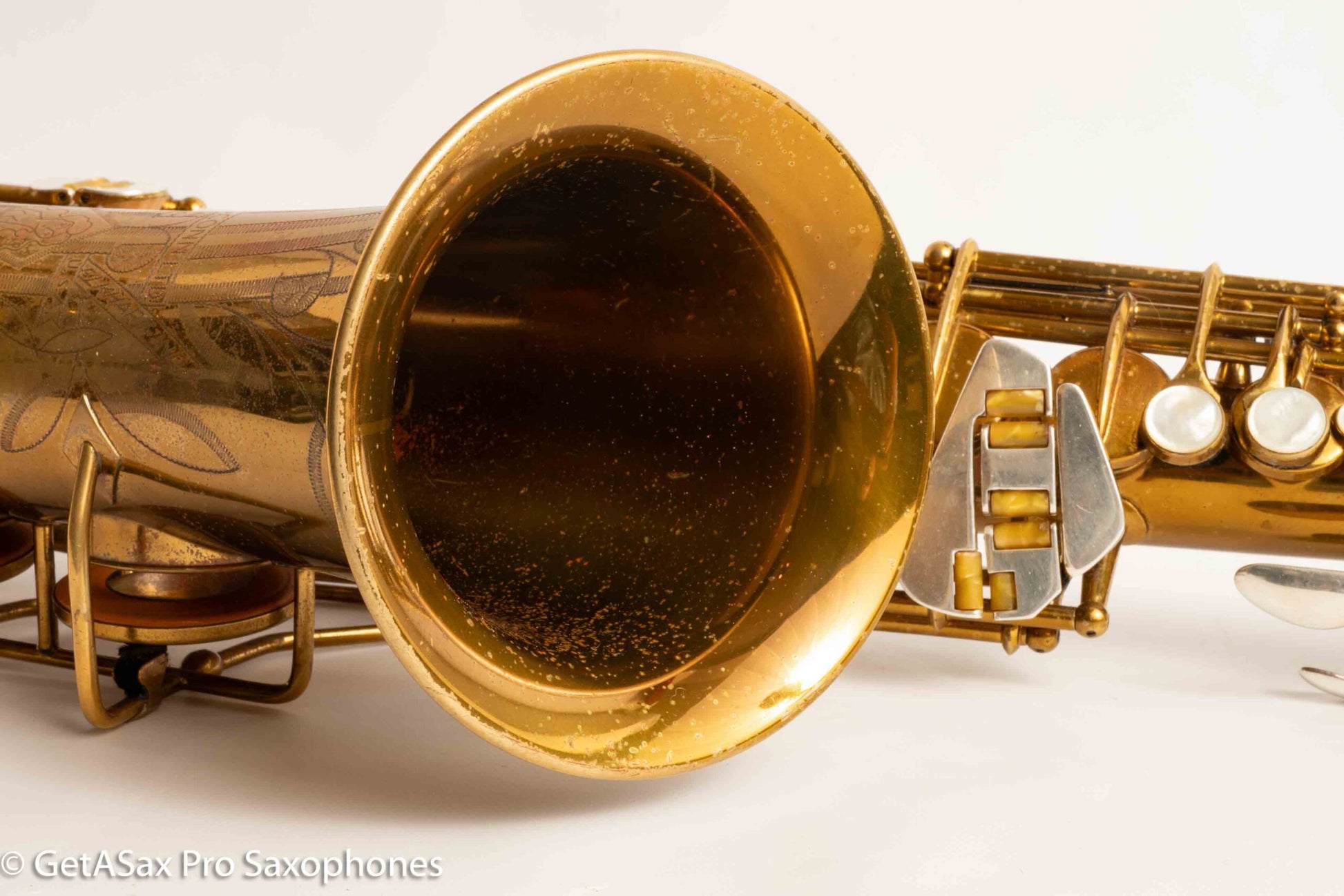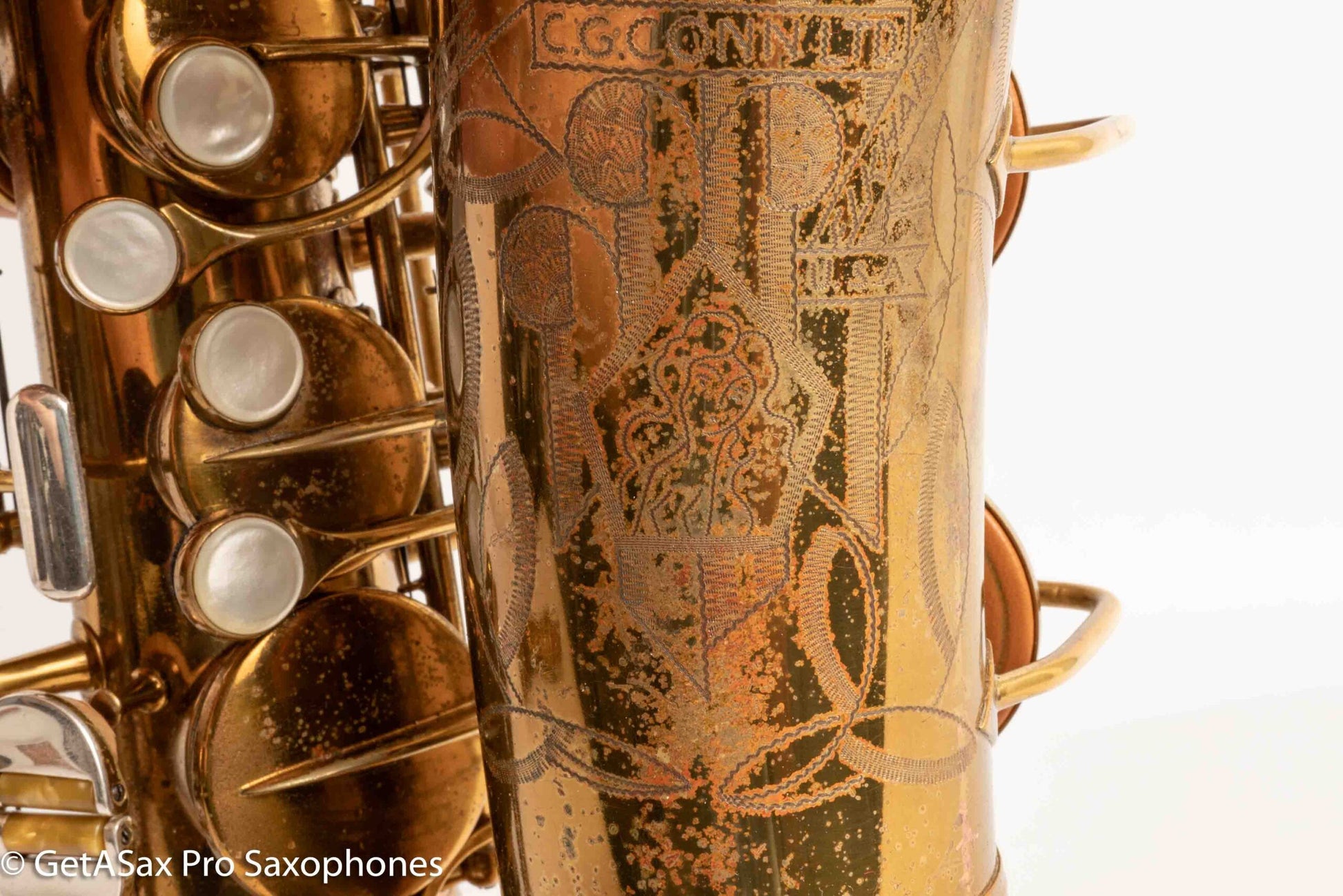 This is the earliest Conn 26M Connqueror alto saxophone I’ve seen personally. I didn’t realize there were Conn 26M’s this early. You probably know, but the Conn 26M Connqueror was a super deluxe and rare edition of the famous Conn ‘6M’ / Artist / Naked Lady / Lady Face alto that is probably the best-known Conn alto (but least consistently-named)… I’ve written a lot about the Connqueror special features, but everything you touch is either pearl or solid silver, and you get the very special Connqueror keywork improvements and about twice the engraving as well. Here’s a video where Matt Stohrer goes over the details for you.