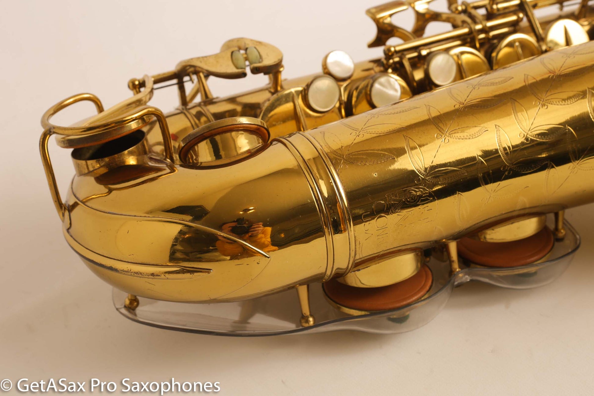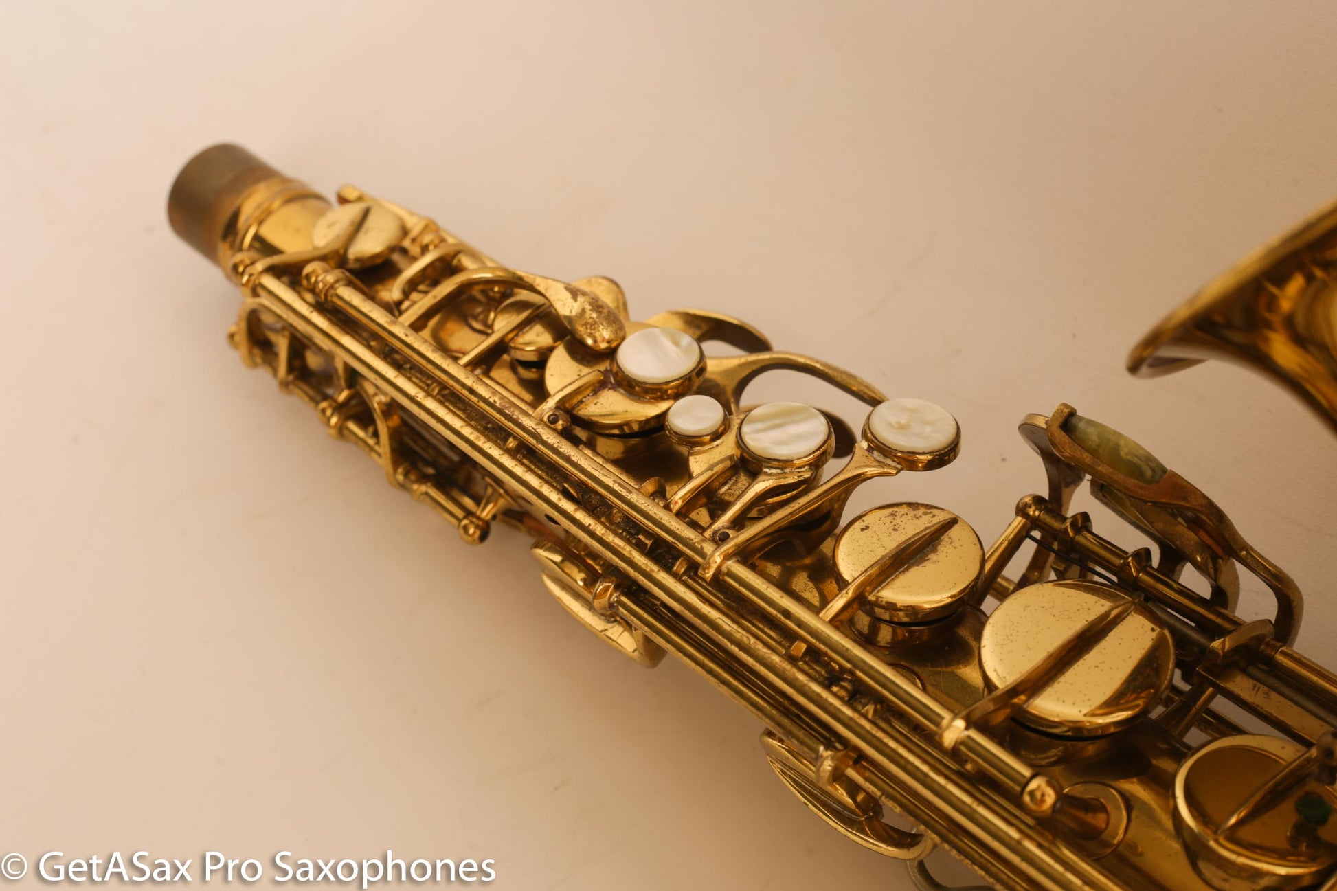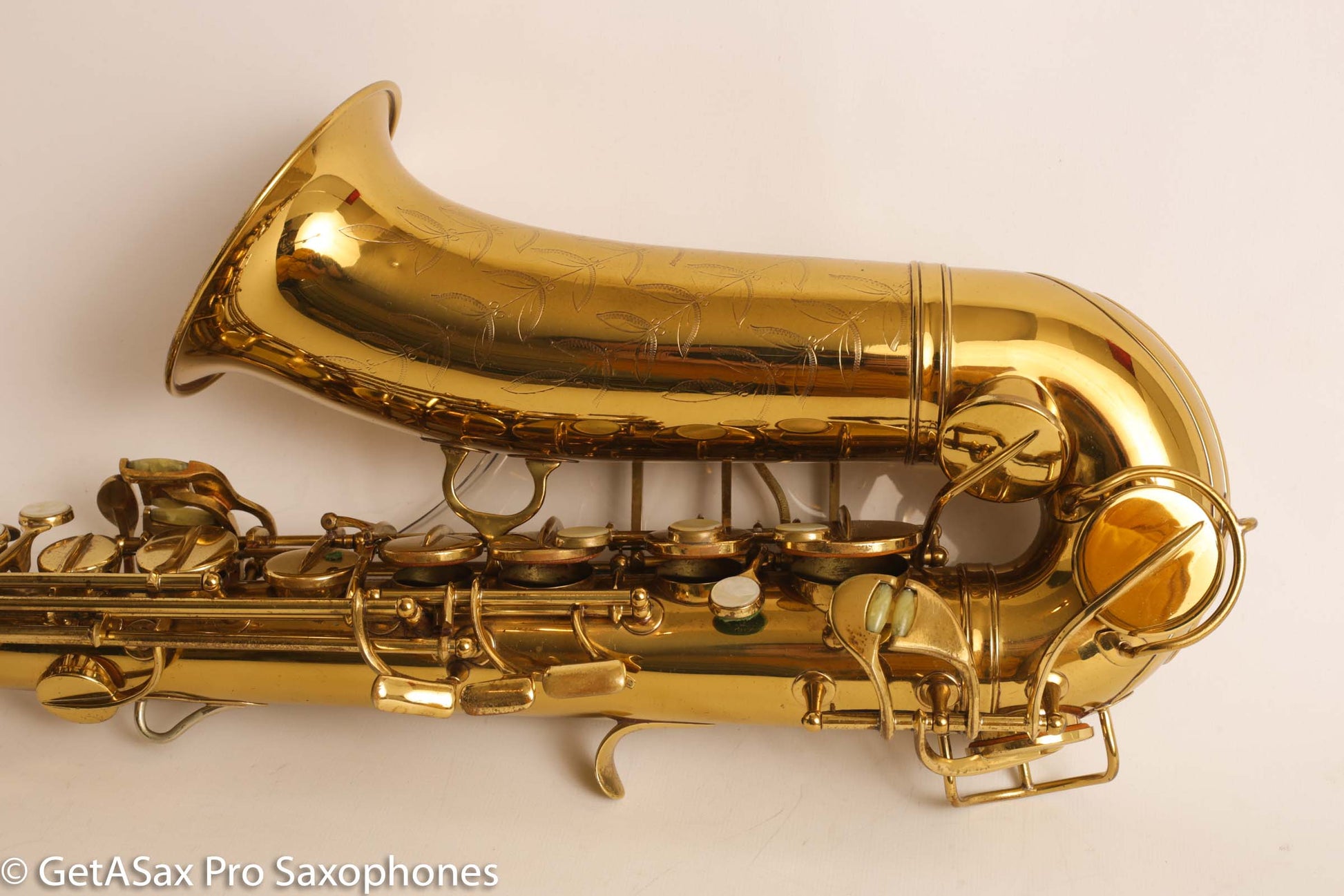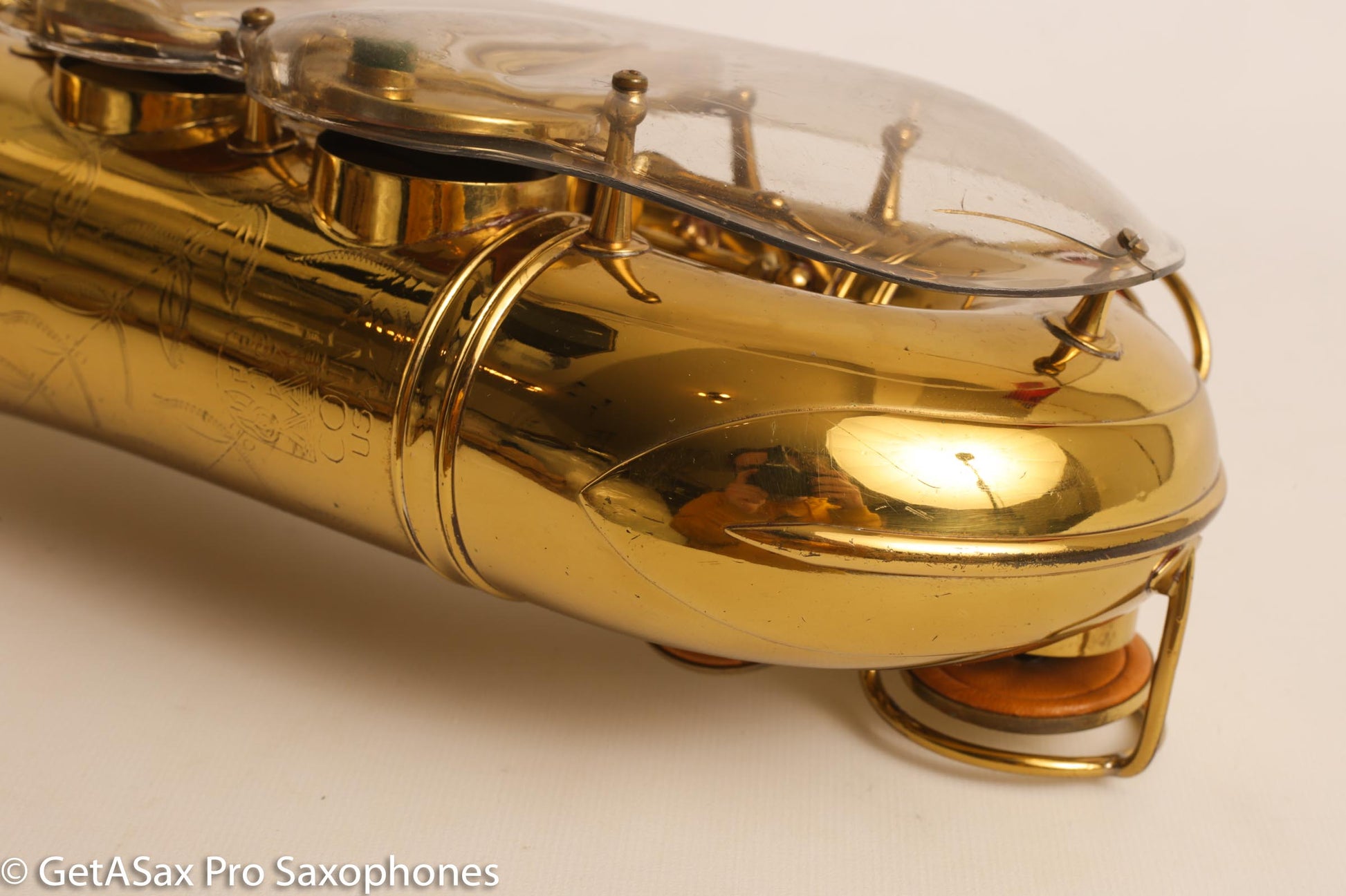 Bargain price on a beautiful Conn Connstellation 28M alto. This is Conn’s last great innovation in alto saxophones, and it should be a part of any good collection of American saxophones. The 28M features improved octave key mechanism and design, a beautiful tone, double socket neck, and the space age plastic pants guard. This one looks like a factory relacquer and I got the pants guard custom made so that it’s a new one without any cracks or chips. The pads are older, but the horn is otherwise in great shape. It includes the original 28M hard case as well! Priced to move. Only one available!