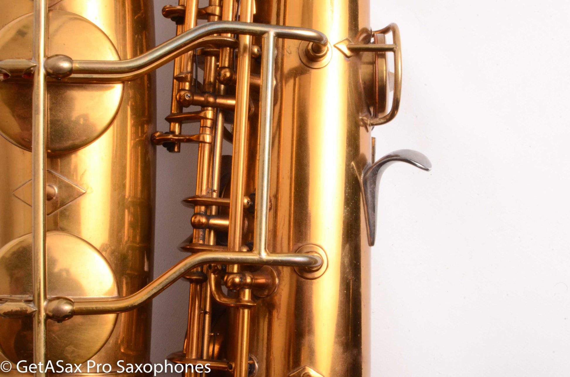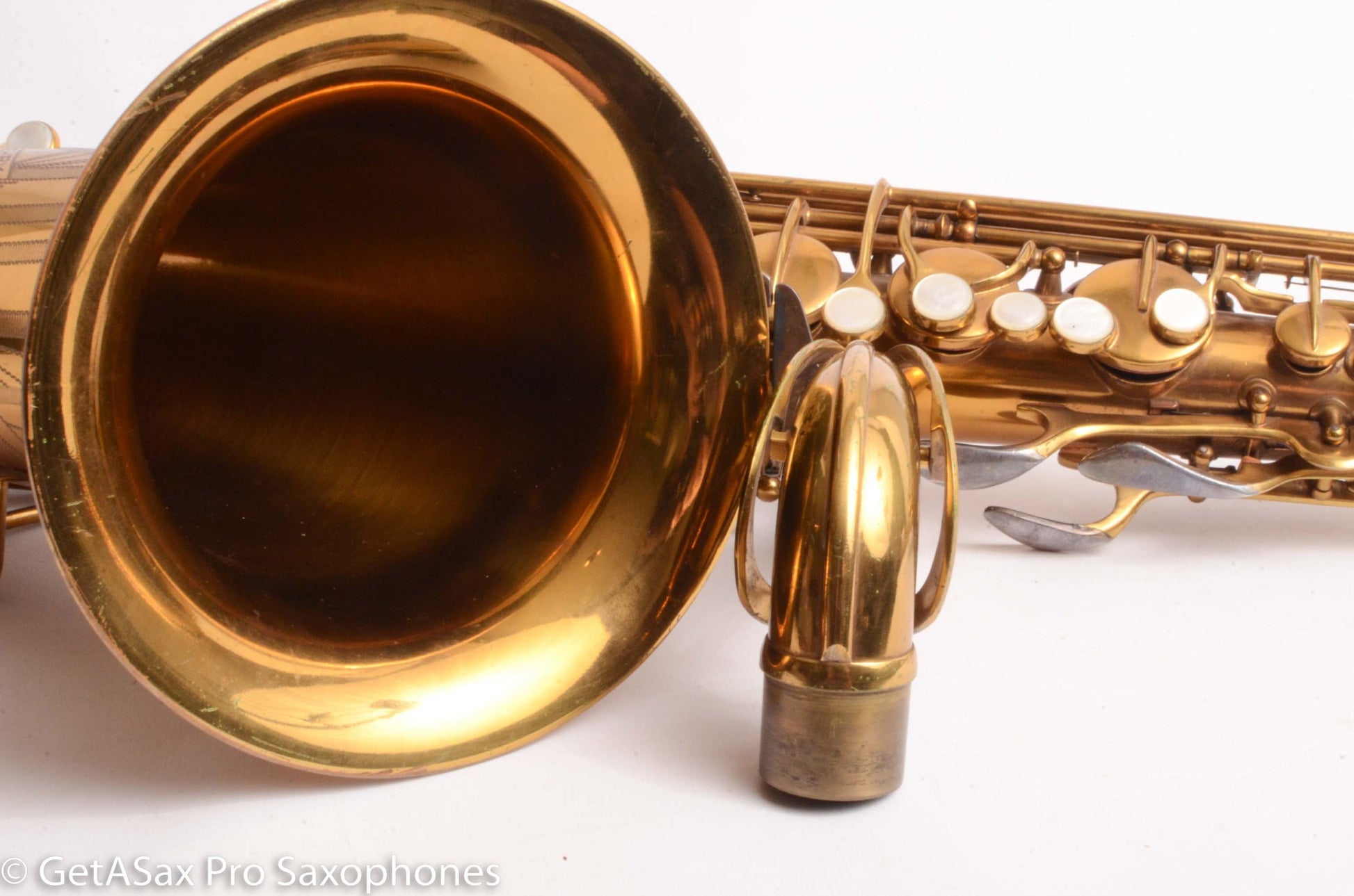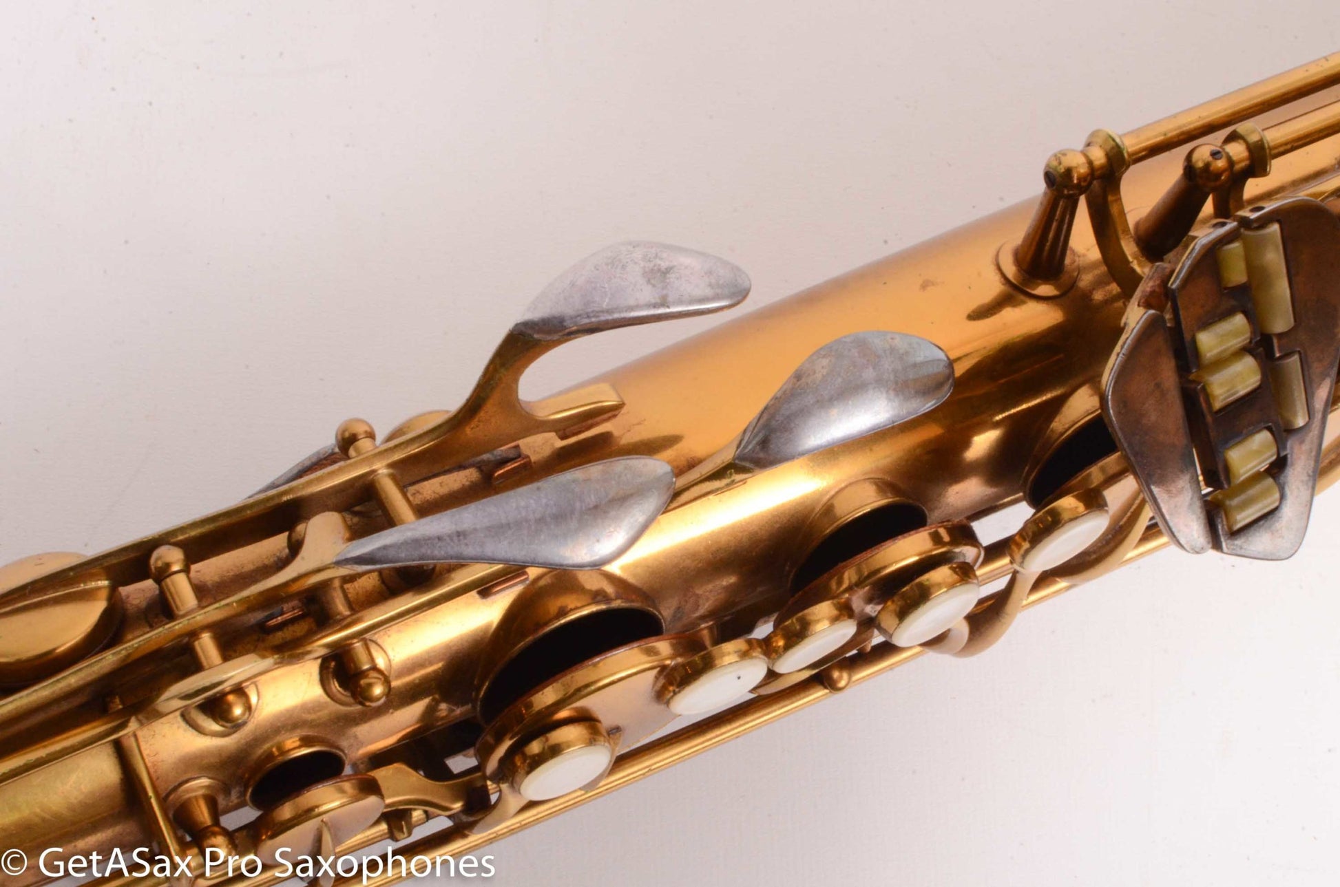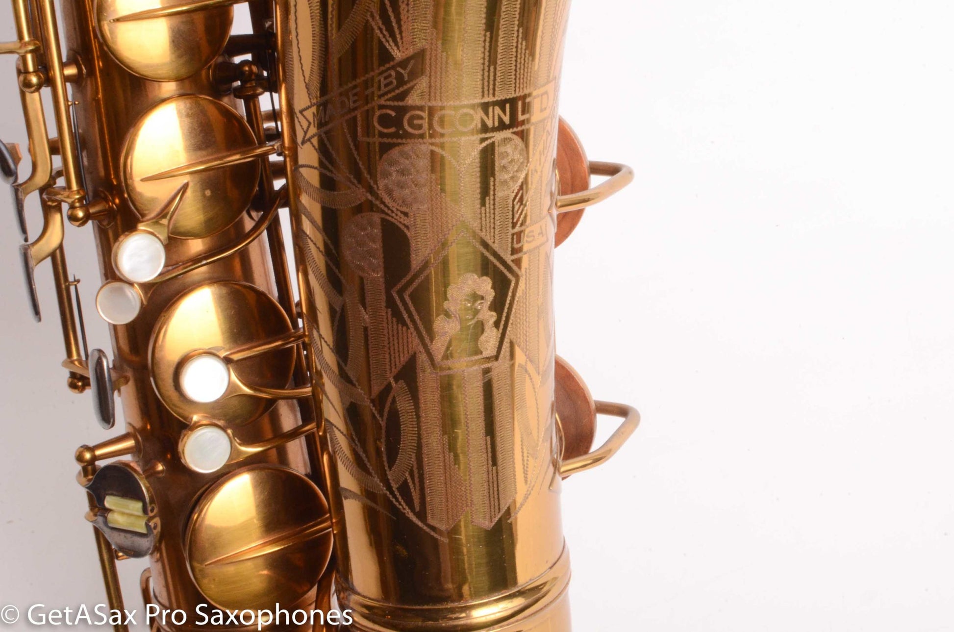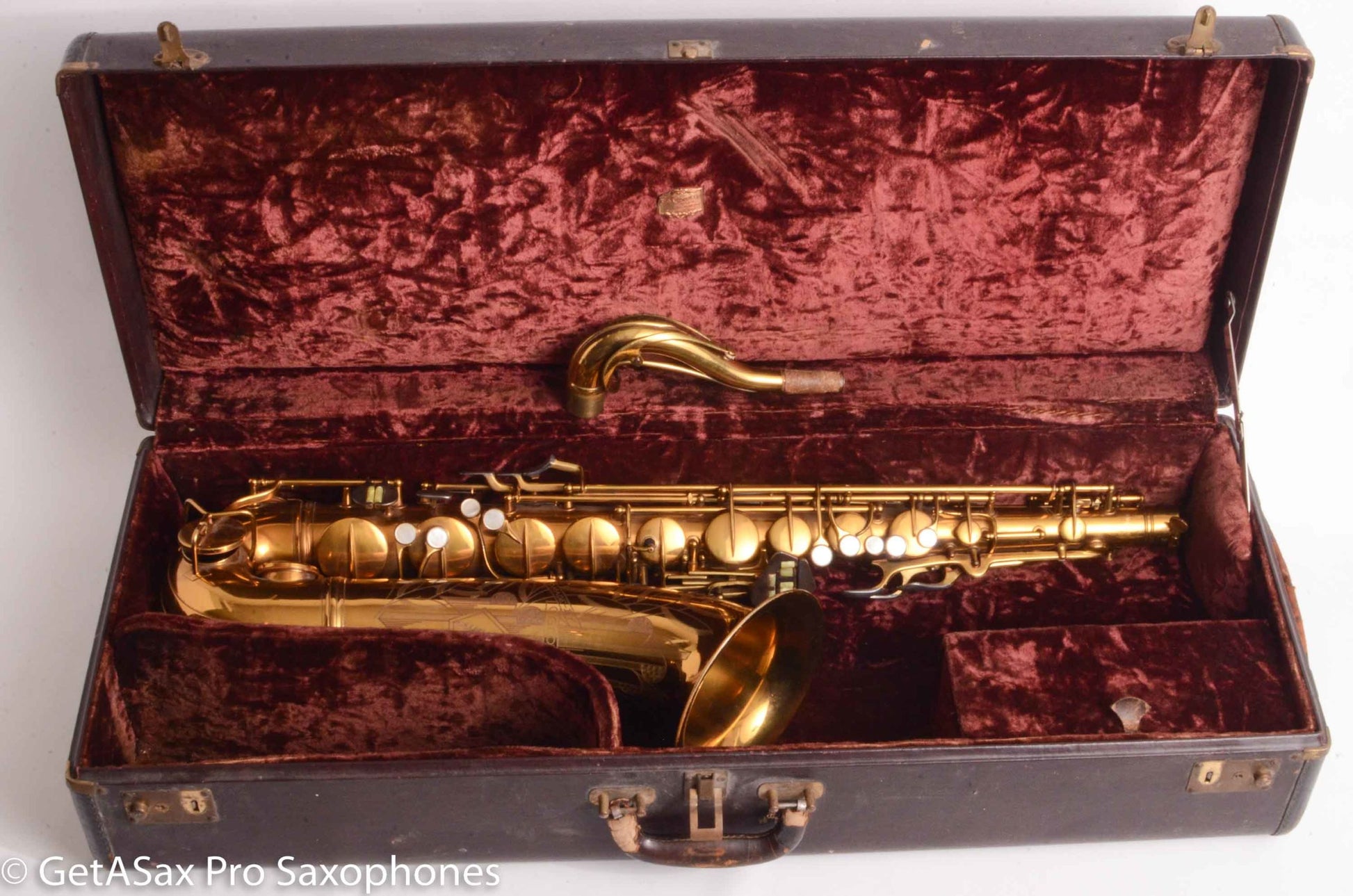 This GORGEOUS Original lacquer Conn 30M Connqueror tenor saxophone is in remarkably good original condition. It has nearly all its original lacquer intact, and it has no dents or dings. I got some small dings removed from the back of the bow area, top of the neck, and one opposite the lyre holder. It came out nicely, and looks fantastic. It’s very hard to find a 30M at all, let alone one like this. And it’s also priced very reasonably given the condition. I’m sorely tempted to keep this one myself. The original case is nice too. You probably know all about 30M’s, but if not, watch Matt Stohrer’s videos on them, and you’ll know most of the important stuff. Nothing plays like a 10M/30M. They kind of spoil you for every other tenor saxophone.