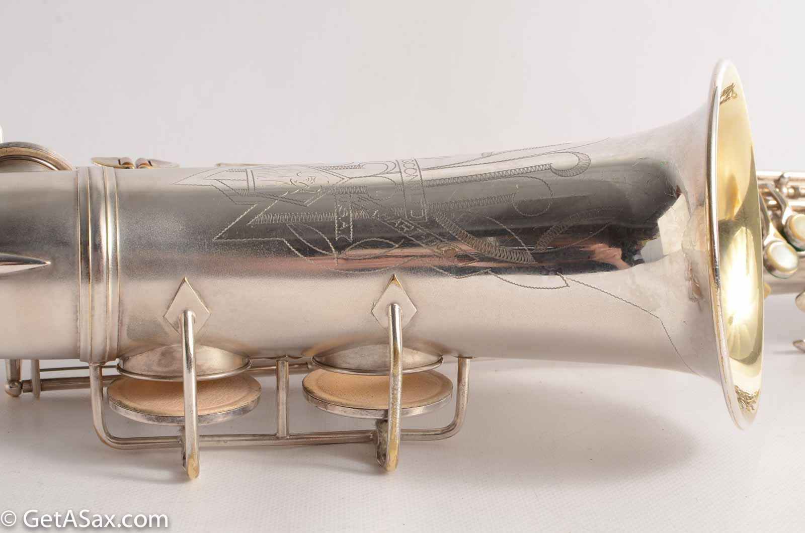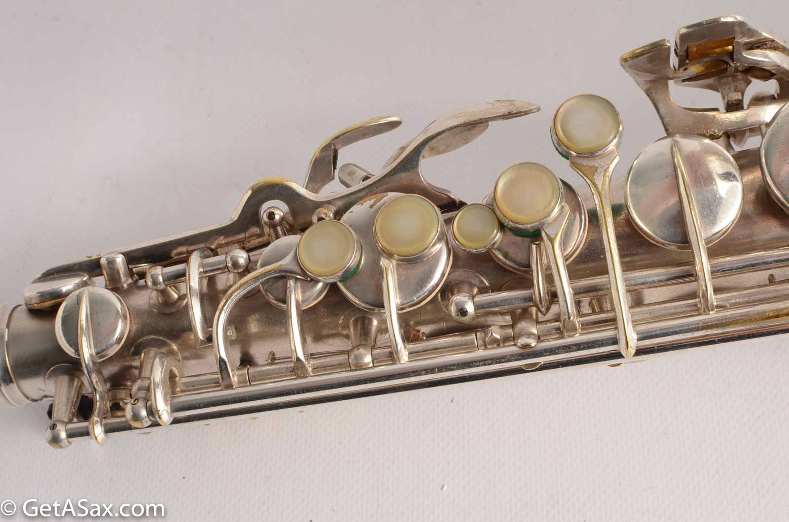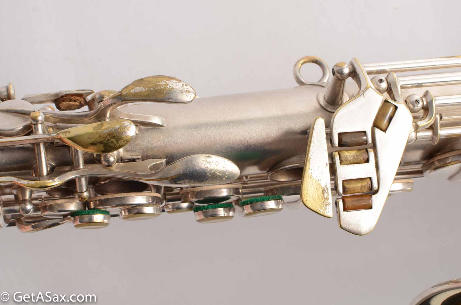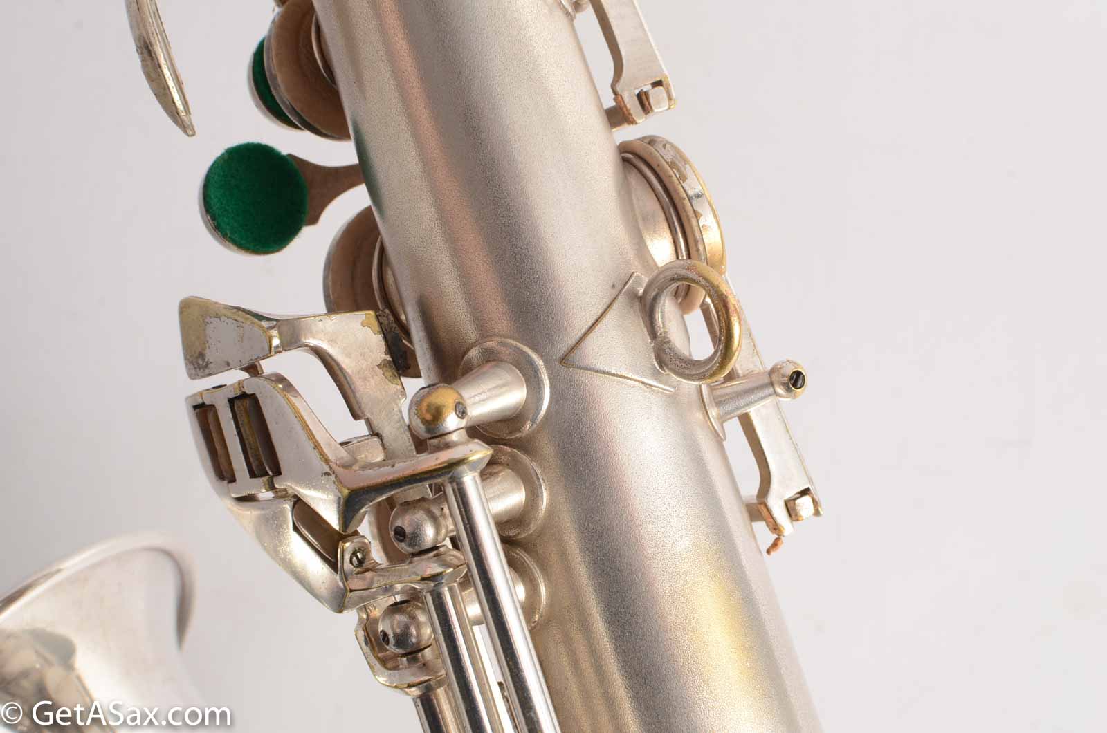 This particular one is in very good condition. It has beautiful original silver plate which will polish up to a gleaming finish. There is only normal wear from use, which, to me, says that this horn plays great. It was obviously very well-cared-for: The gold wash in the bell is still very thick, there are no dents or dings, and amazingly not even a resoldered key cage leg. The pads are pretty old, possibly original, and will need to be replaced. It could also benefit from a fresh set of correct rollers, which you can get here. Believe me, get a good overhaul on this thing, and you will never be tempted to buy another horn. And you can really ruin someone's day if you let him or her play your horn for a few minutes. No modern horn can come close to the tone, warmth, and what the vintage ads call "carrying power" of a Conn like this. Plus the keywork is really comfortable and fast once it is setup correctly.