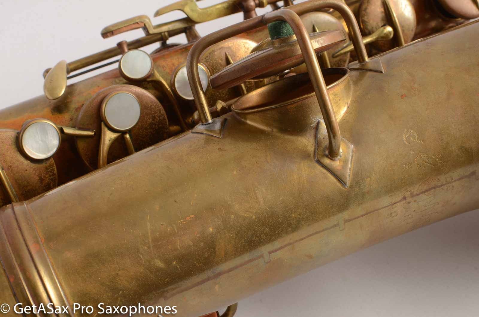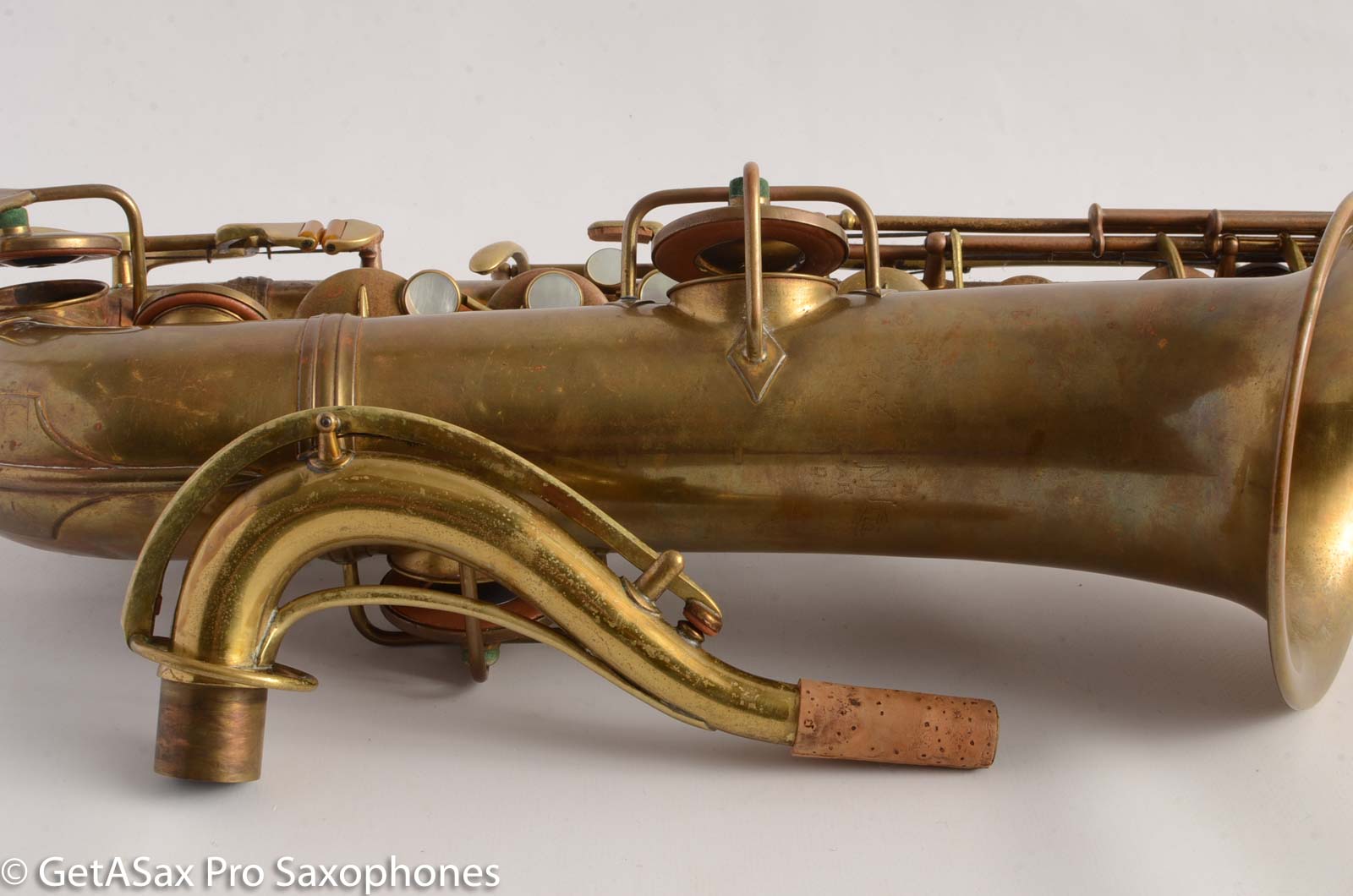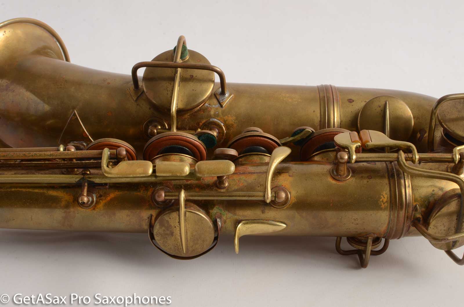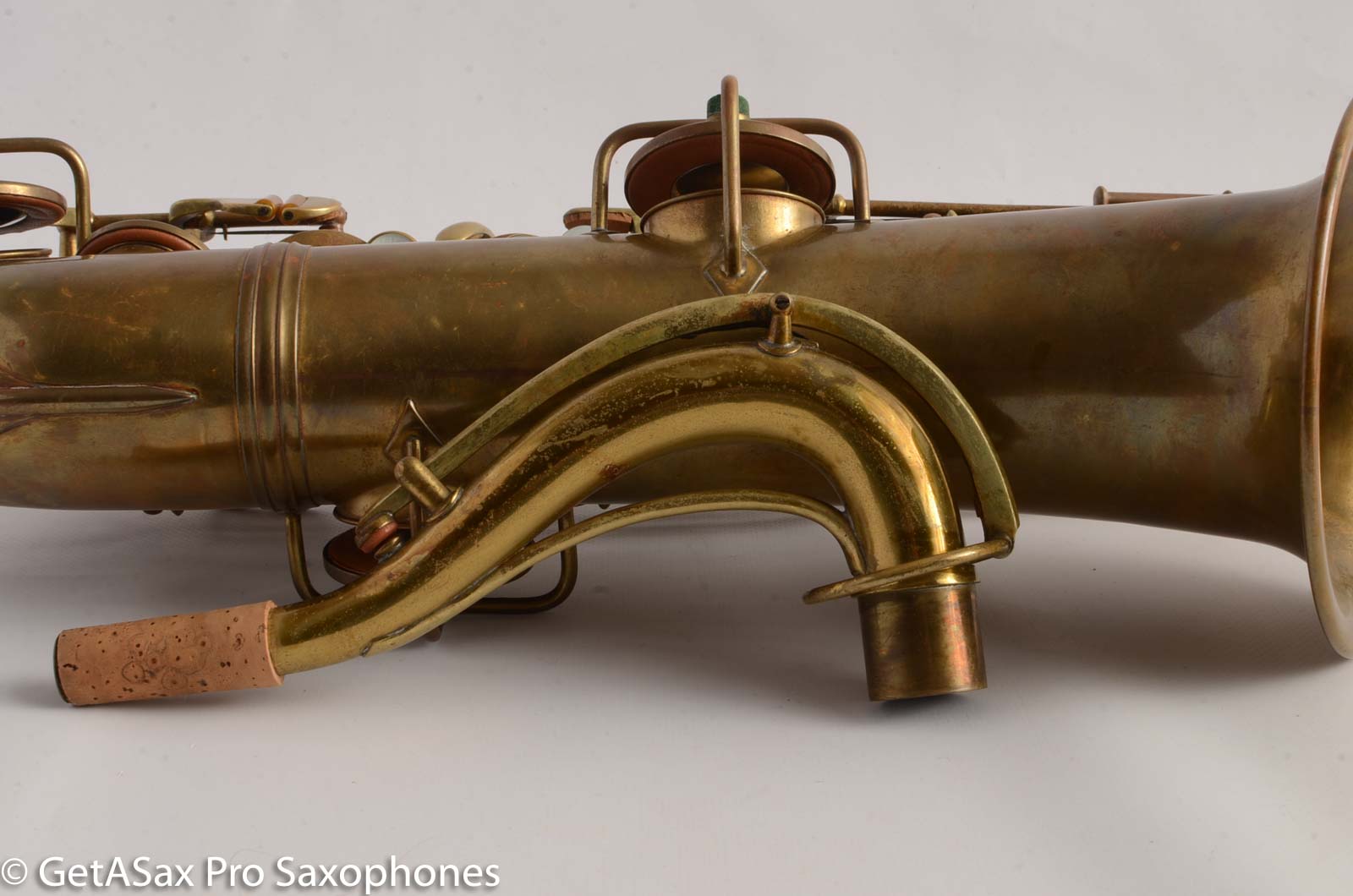 This is a nice, clean original bare brass Conn New Wonder 1 C melody saxophone. It has actually been repadded at some point, and the current pads are still sealing well. They're not new, but they do play just fine. This is a fun horn to play, with a big, warm, vintage 1920's velvety sort of tone. Stand at the piano with your family member, and play along with the music! You don't have to transpose. That's actually very nice. I love my personal C melody sax, which is also a Conn.