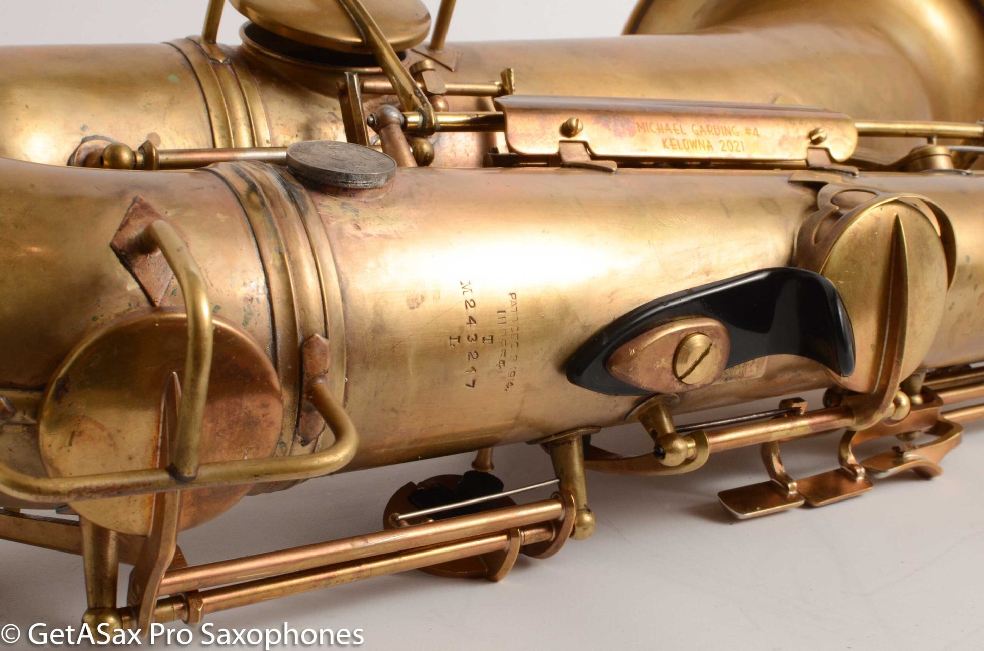 Keywork was custom fitted by a shop in Canada (About a $3500 job), and then the horn was overhauled and perfected by Aaron Barnard in Iowa (+$1650). So you’re basically getting the horn itself for almost nothing. Great deal for you, and it plays with a huge sound. It’s nicely in tune on a large chamber mouthpiece, Keywork is fast and comfortable. It’s the total package if what you love is the late NWII/ early Transitional tone but you want faster, more comfortable keywork.