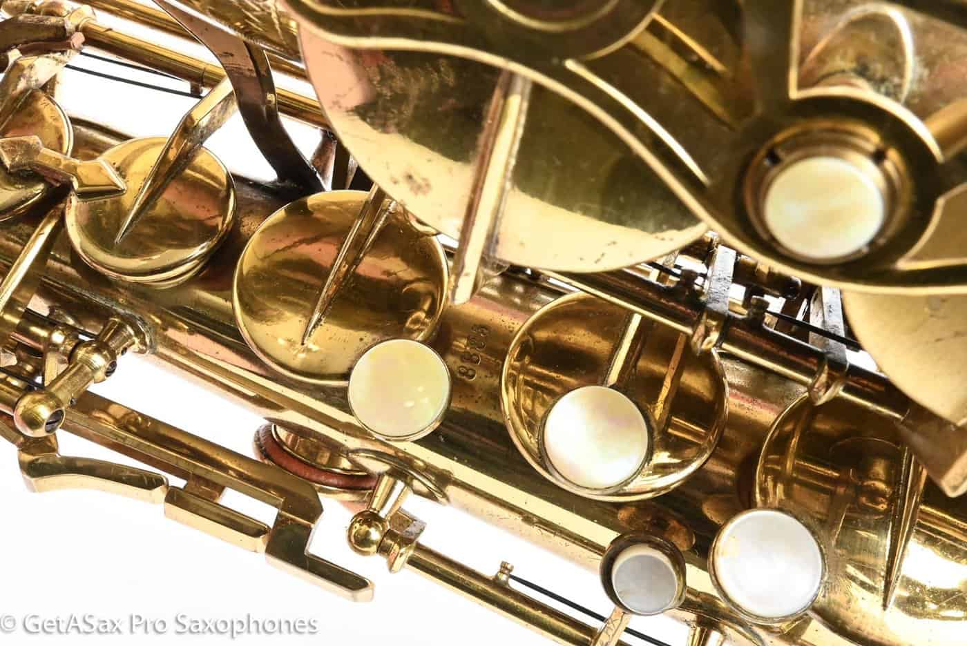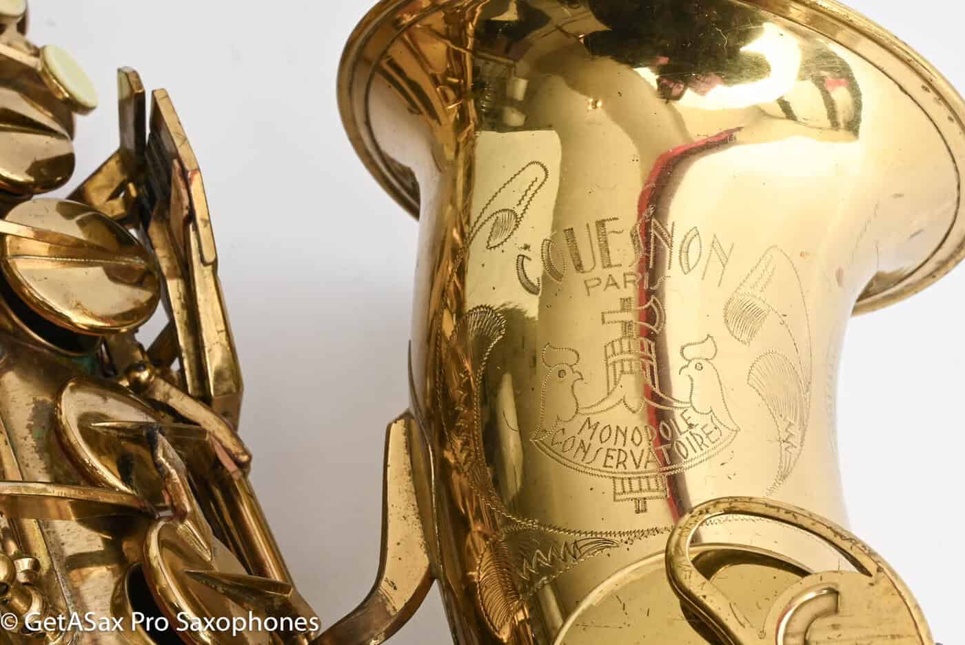 The Couesnon Monopole Conservatoire II alto is one of those sleeper horns that the true vintage saxophone connoisseurs know about and barely anyone else does. For that reason, you can still get a beautiful one like this for peanuts. Overhaul this, and you will have one glorious alto that does everything well, and that vibrates with life like no other. It feels like a great Conn under the fingers the way it comes to life, but the tone is more French like a Selmer but with fatter palm keys, a more even scale, and very good intonation. This one has old pads, but that’s how they tend to play.