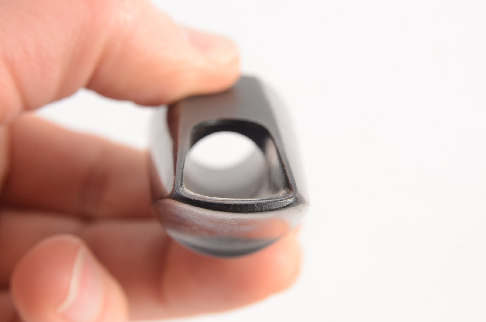 Big round vintage tone with straight sidewalls, medium chamber, very subtle rollover baffle. Tip opening measures 0.062". Some resistance and moderate projection, but would make a lovely classical or quiet ensemble piece. Nice thin rails and good hard rubber!