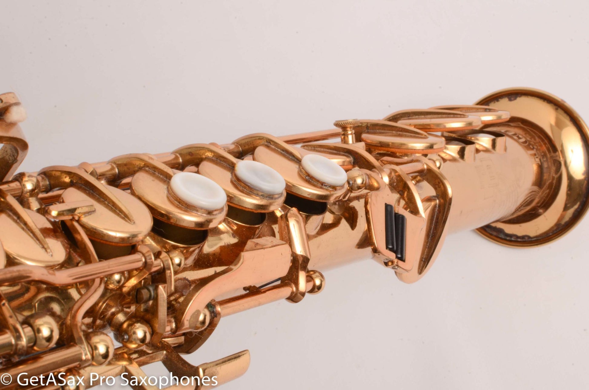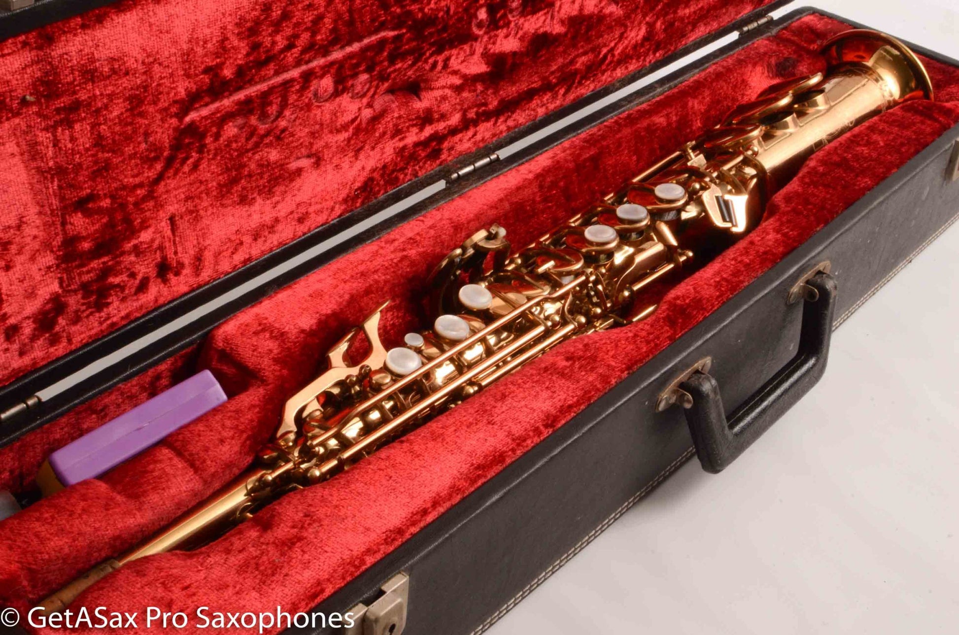 This is a gorgeous, Grover Washington Jr era Couf Superba 1 soprano saxophone in excellent condition. You won’t find a nicer example. The original lacquer is almost entirely present, and there is no current or past damage at all. No dents or dings or resolders. Bell flare looks great. Everything is supe clean on it. The Superba 1 is the soprano to get if you want modern(ish) keywork but a fat, dark tone that sounds different from everything else. It also has good intonation and very comfy ergonomics. The pads on this one are original, so plan on a repad pretty soon. It has high F#, and the original case and mouthpiece are also included. My assistant picked out one of these to be his personal soprano too, out of all the horns that have come through the shop. They’re hard to beat, and sound great with a bright mouthpiece, as the dark, fat core tone of the horn doesn’t thin out with a brighter, more projecting mouthpiece. This makes it ideal for jazz, commercial, R&B, etc.