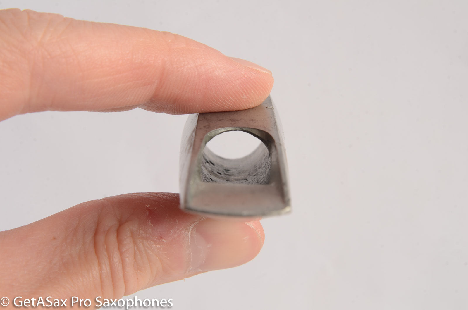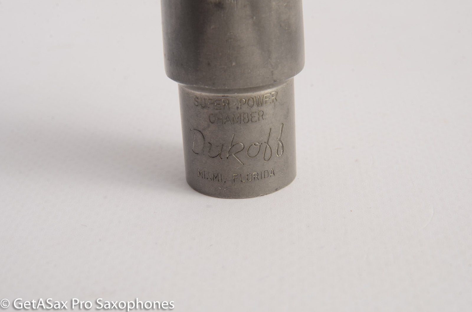 This Miami Dukoff D5 alto saxophone mouthpiece measures .076, so like a Meyer 6 tip. The rails have some dings in them, but it still plays fine. I could clean it up pre-sale. Up to you. If you want a bright, cutting, smooth jazz/commercial alto sound, this will do the trick. I'm trying to make it through the description without mentioning a certain player. Looks like I succeeded. Straight sidewalls, small-medium chamber, and high stepped baffle, tip opening measures 0.076". The super power chamber is truth in advertising. Awesome projection, low resistance, bright tone.