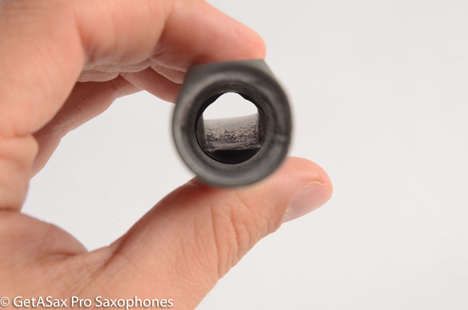 Straight sidewalls, medium chamber, and a high baffle with a large radius rollover at the entrance to the chamber. You don't see the Miami M chamber that often. Those ligature scratches could be buffed off if you want. This is a very free-blowing piece with great projection. It is bright, but not paint peeling bright like the more common D7 chamber. I would consider this if you like your Link STM but want something that cuts through an amplified mix a little easier. Tip opening measures a comfortable 0.103".
