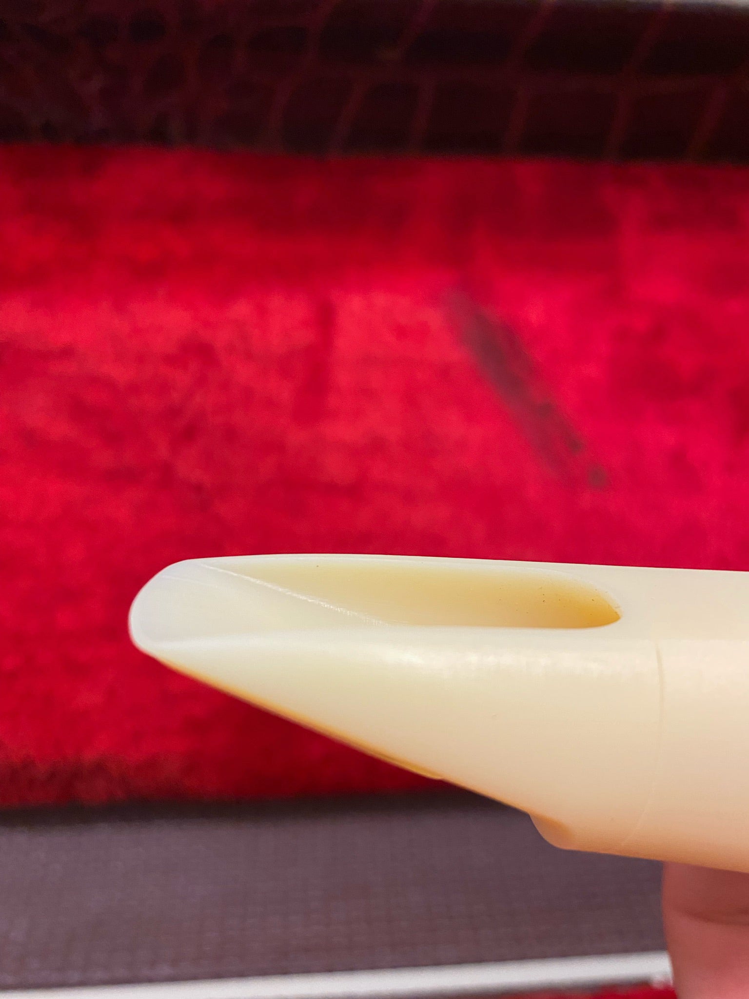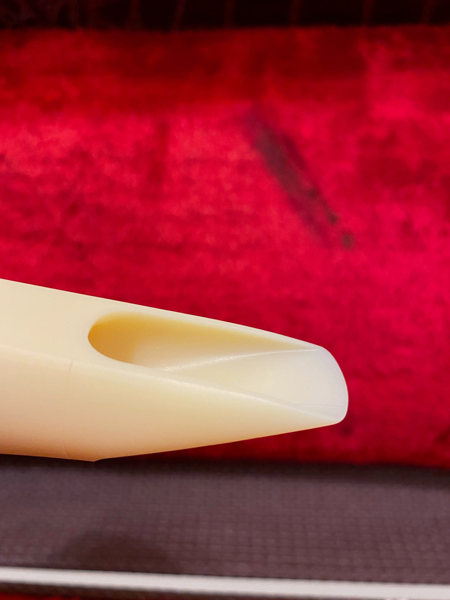 The baffle on each tip opening is placed just where Meyer would place it relative to the tip rail and chamber, so each one is a really good copy of the appropriate tip of Meyer Bros. One big advantage we have is that we make these entirely in house, so we can keep improving them until they are perfect. By using biocompatible dental resin and 3D printing for the complex, organic chamber and baffle shapes, we can keep improving and iterating the model until each one is perfect. We spend a LOT of time and effort on that, and I hope that it shows in the quality of mouthpiece and the playing experience that you get.