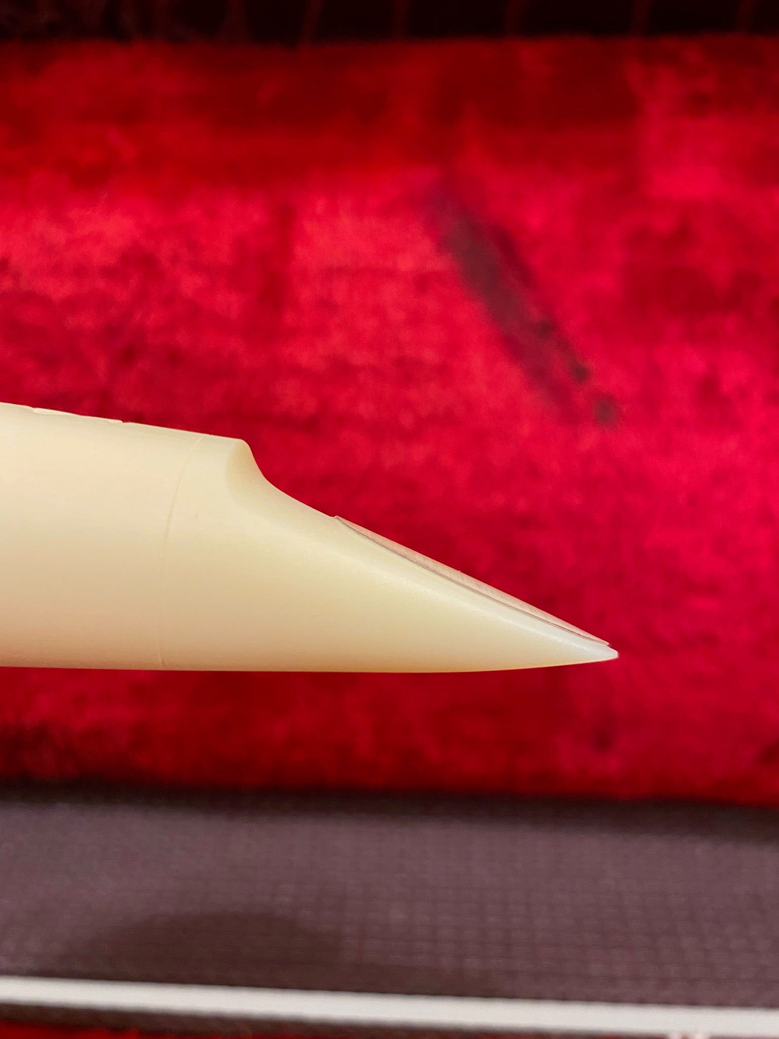 These also all get hand faced by me. That's the main slow step in getting them to you, but I'm facing them as fast as I can while keeping the facing work perfect. The hand facing is a step that you can't skip. If you try to make a replica mouthpiece and you don't replicate a really excellent facing, you might as well not bother. So you get my favorite 4, 5, 6, 7, or 8 facing that I've played so far, on whichever tip mouthpiece you request. Tips are as follows: 4= .069" 5= .072" 6= .076" 7= .080" 8= .085".