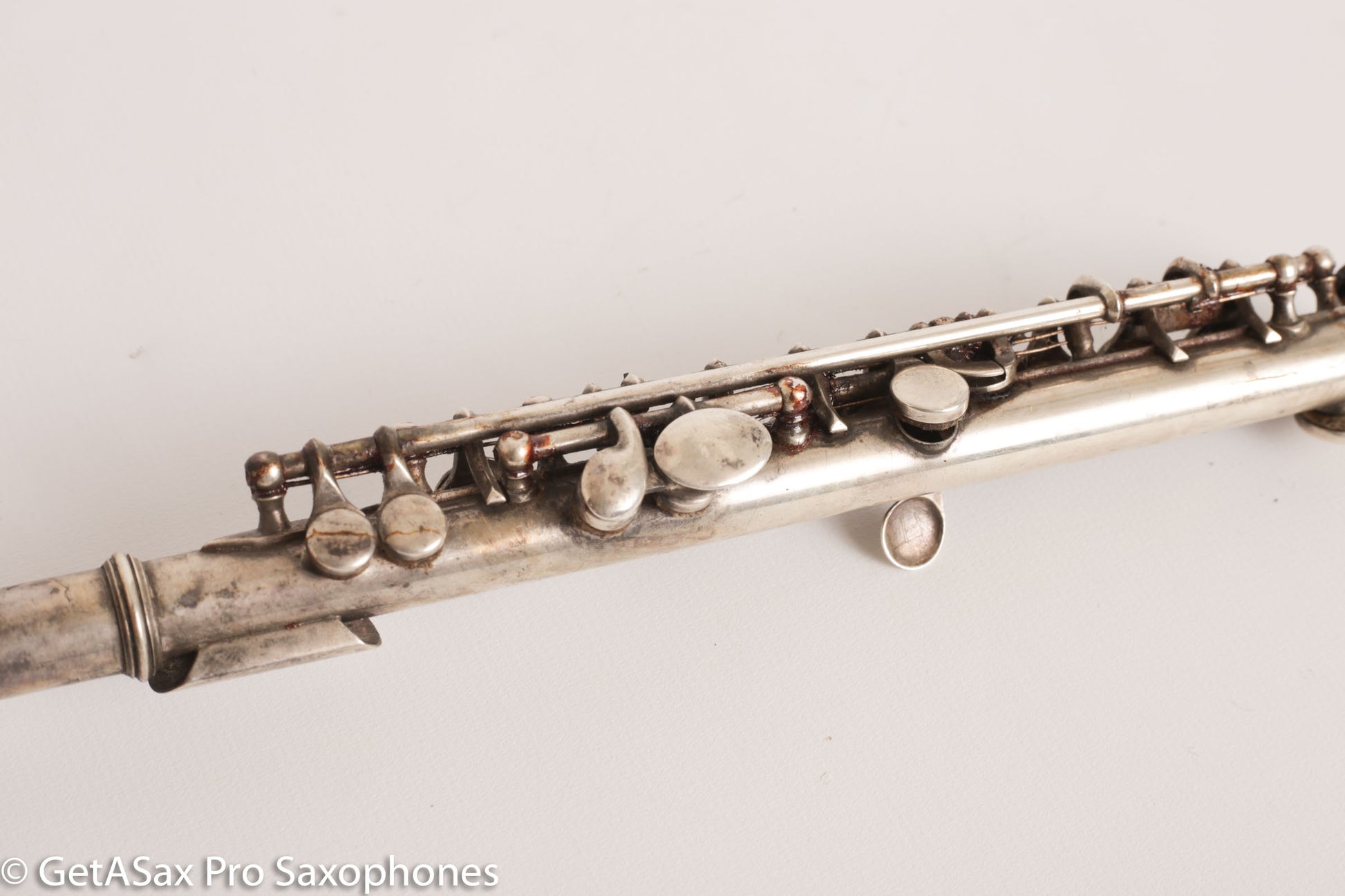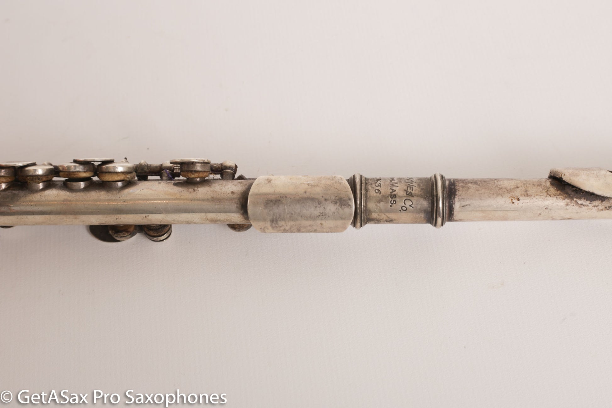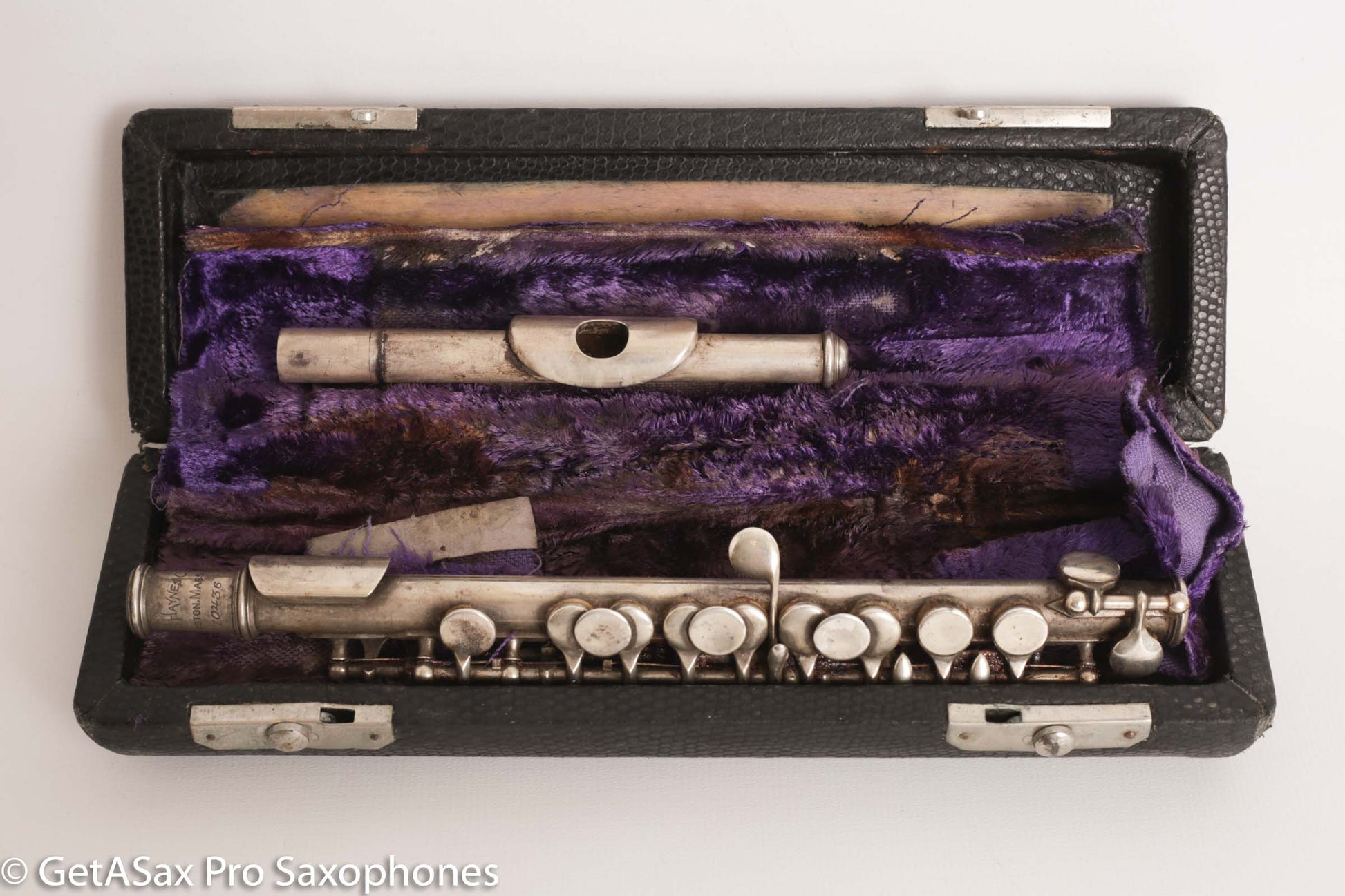 This is a great vintage of Haynes solid silver Db piccolo that was made for playing Stars and Stripes forever and similar tunes that don’t lay well on a C piccolo. This has old pads and will need a complete overhaul.