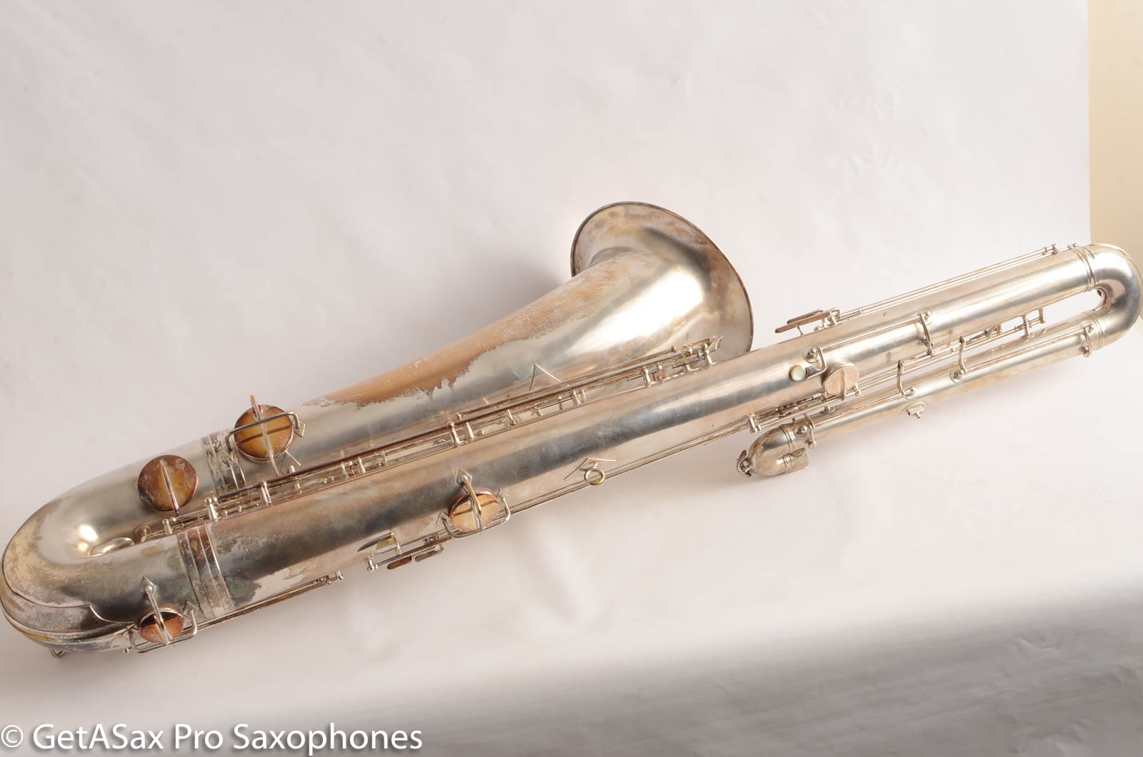 Conn (Holton) Bass Saxophone Good Playing Condition Original Silver Plate CLEAN P22298