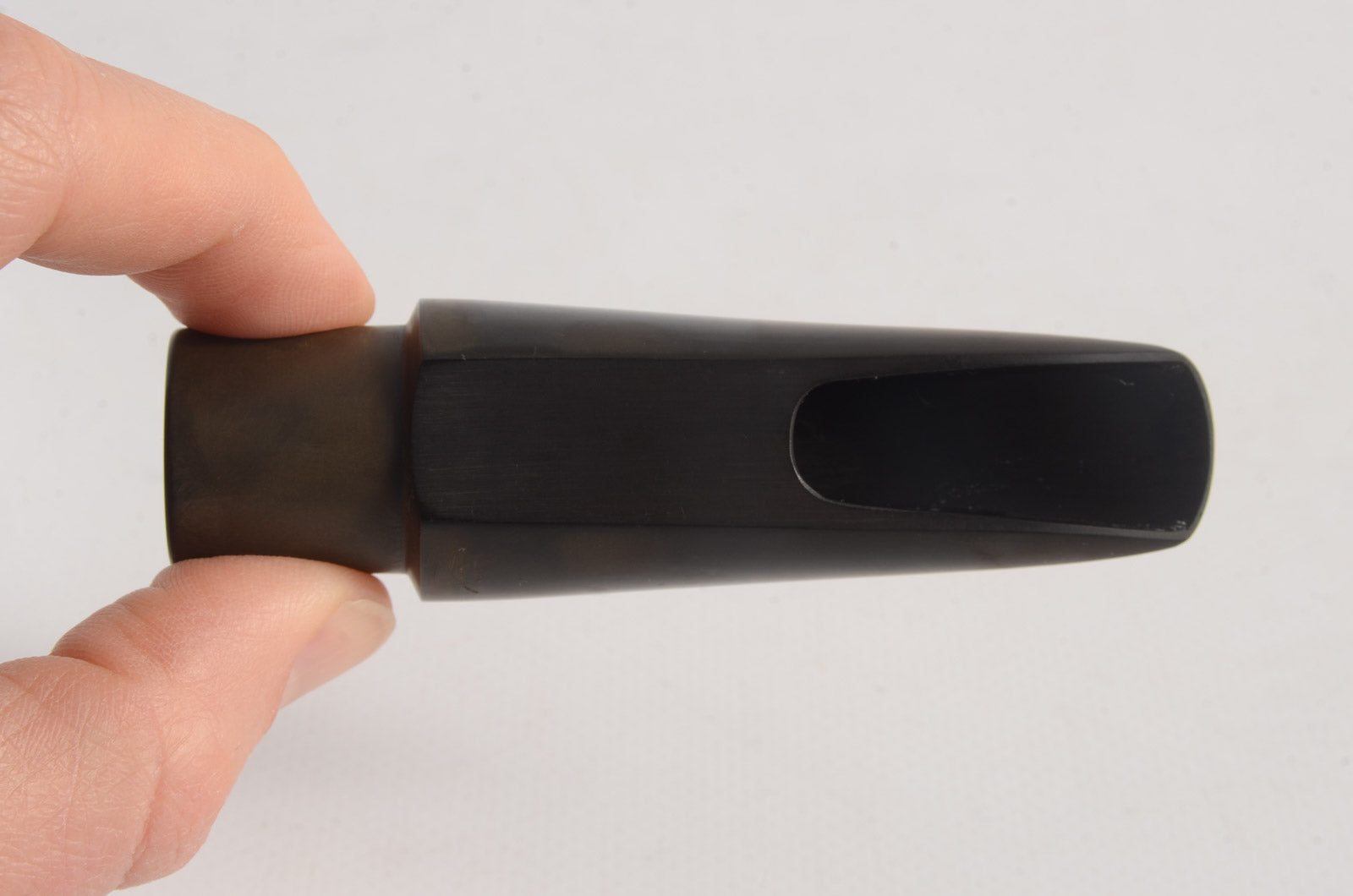 This JD Hite alto mouthpiece is perfect for school band. Has straight sidewalls, medium chamber, rollover baffle, tip opening measures 0.072". This is a very nice flexible piece with little resistance and good but not huge projection.