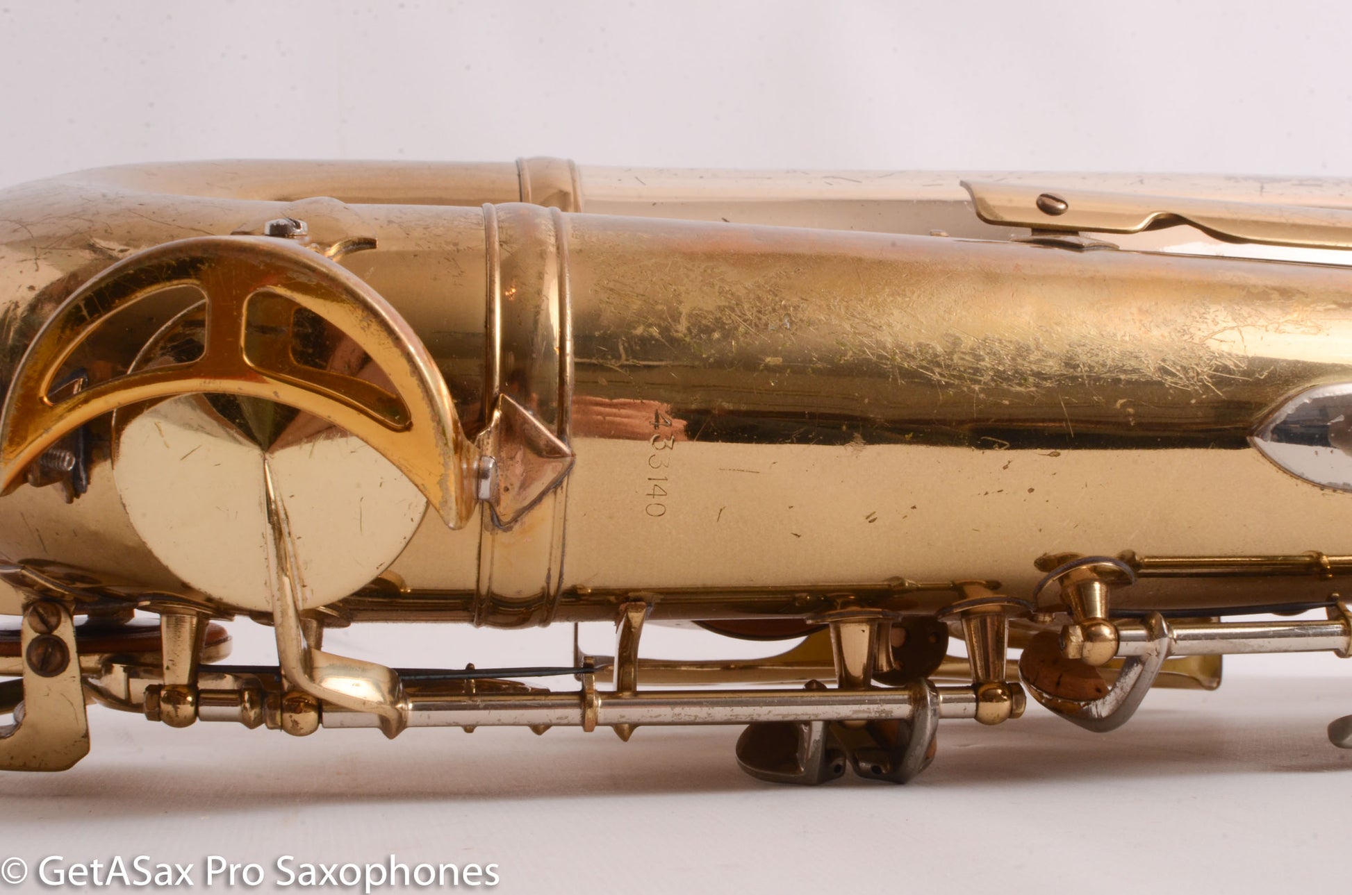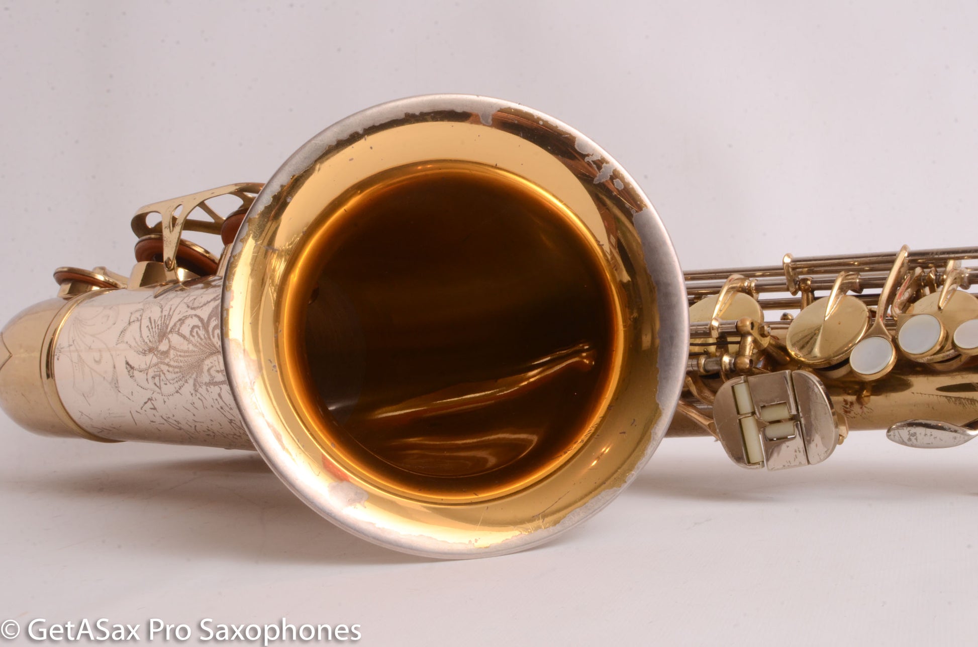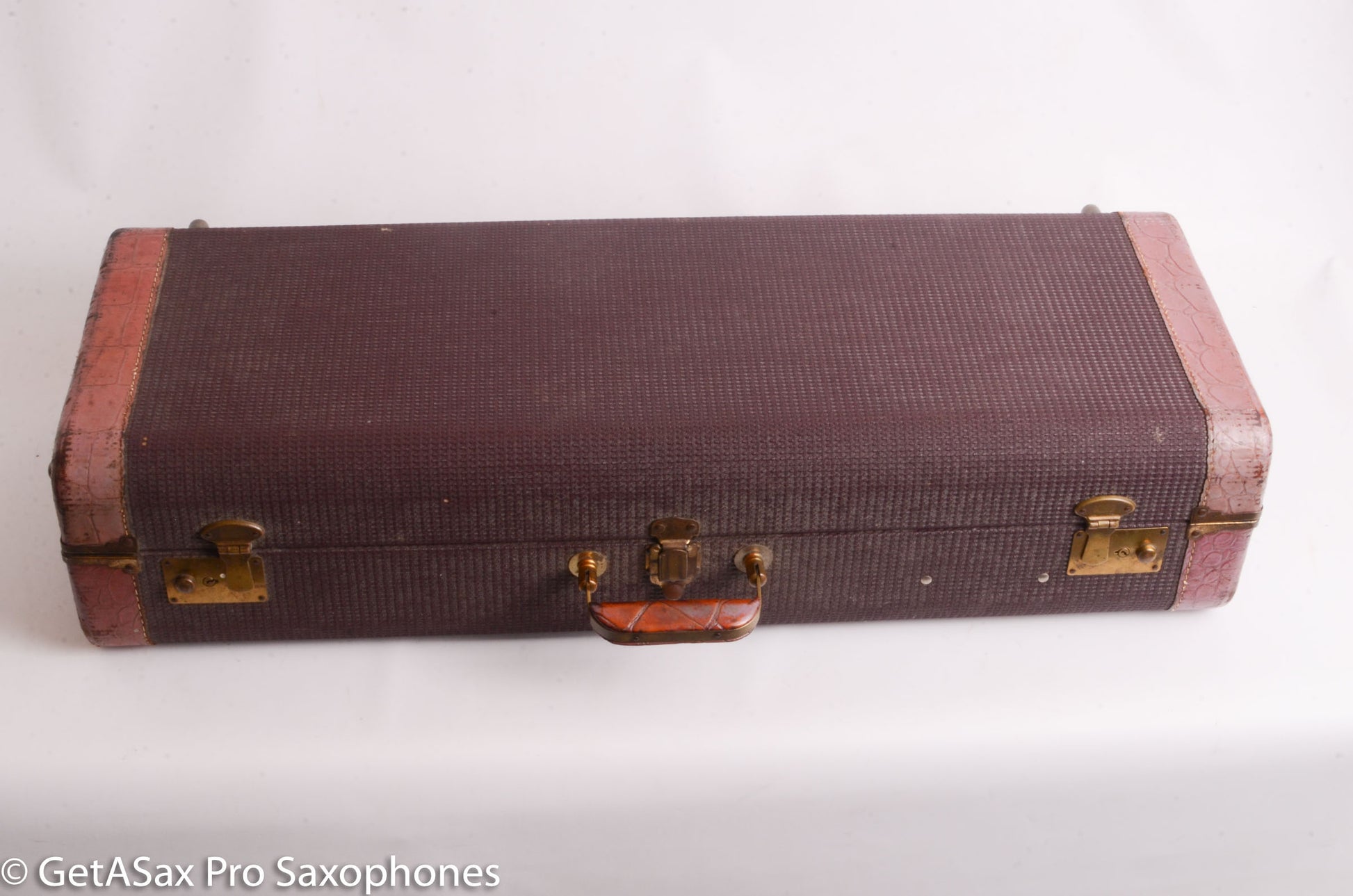 This is a very early original lacquer Eastlake King Super 20 SilverSonic tenor saxophone with solid silver neck and solid silver bell. It plays reasonably well on older pads and comes with the original case in good condition. Many players love the early Eastlakes for their huge, powerful tone and comfortable keywork. They’re also priced a lot lower than a typical Cleveland SilverSonic (despite the early Eastlakes being the exact same horn). If you want to get into a beautiful vintage professional King Silversonic tenor that doesn’t break the bank, this would be an excellent option.