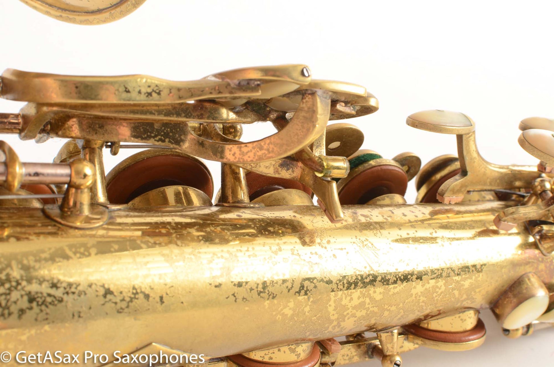 Why do I say that Super 20's like this are the best altos ever? The overall combination of tone, beauty, and ergonomics. For me, great tone that you get from these full pearls Super 20's is pretty hard to beat. It's warm, full, rich, and projecting, but without any hint of shrillness or thinness. Cannonball's tone, I always think of as a tenor saxophone reincarnated in the body of an alto, and that's pretty much what a Super 20 alto like this allows. It feels like the tone is coming from a bigger, deeper instrument, but in the alto register, which is really remarkable. You can of course do a million other things with it. Check Francois Carrier's music for another take on Super 20 tone (also same serial as this). The Super 20 is going to keep getting more and more desirable, and harder and harder to find. They're just fantastic, and they are way rarer than Mark VI's or any other top notch vintage or modern alto.