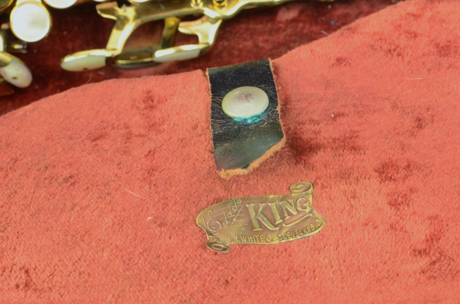 This horn is already sold, but if you are wondering what a factory relacquered King Super 20 looks like, it looks like this. As you can see, the pads, resonators and lacquer are correct for a King of this period, but there is lacquer over the pearls and just enough little hints to show that it is definitely redone. Comes in a nice original case as well. This horn was a good player, as many relacquers are when they are in good physical condition with a good overhaul. This horn pre-sold off our waiting list, so if there is a specific horn you want, please contact us and we will let you know first before it becomes available more generally.