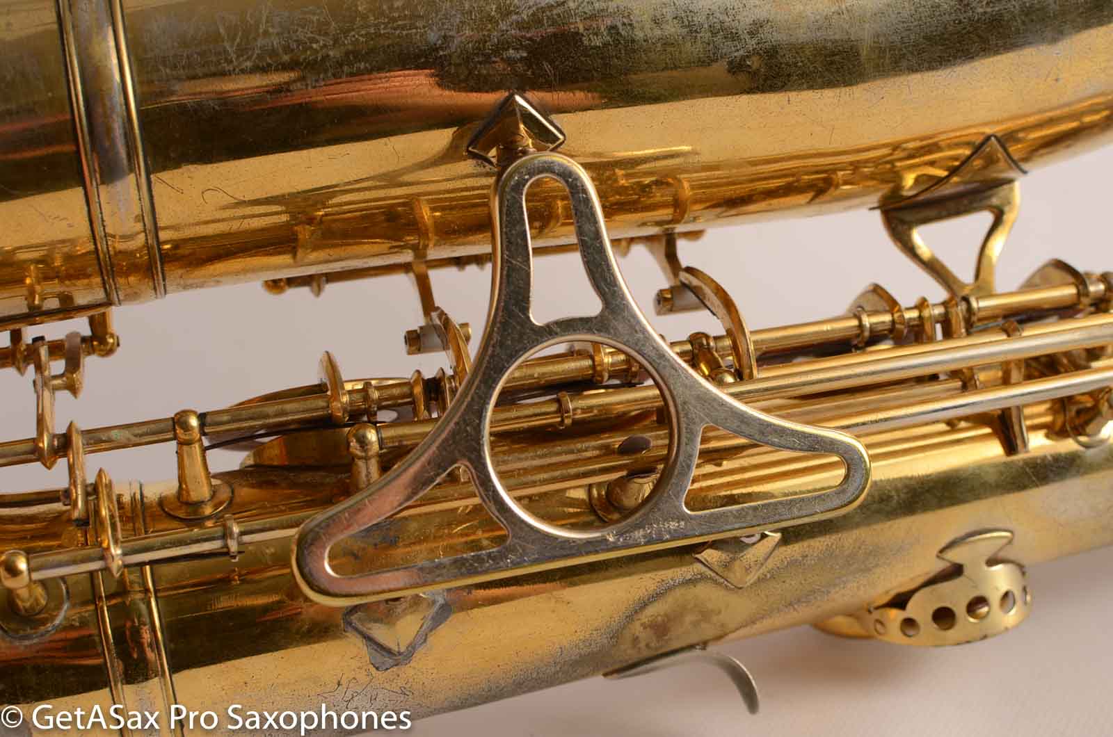 Price - a 'regular' lacquer somewhat-played early 'full pearls' King Super 20 Tenor sax goes for $6500 overhauled right now. Gold plate is vanishingly rare. Like 100x more rare than lacquer. And this is the earliest gold plate Super 20 I have seen. That's seriously cool. Just gold plating a tenor today will run you around $4000-5000 not including overhauling it afterwards. So it's not a realistic option. Yet gold is the most beautiful and most durable of saxophone finishes. And the most valuable. And the most collectible. You know the drill. This is the one you want.