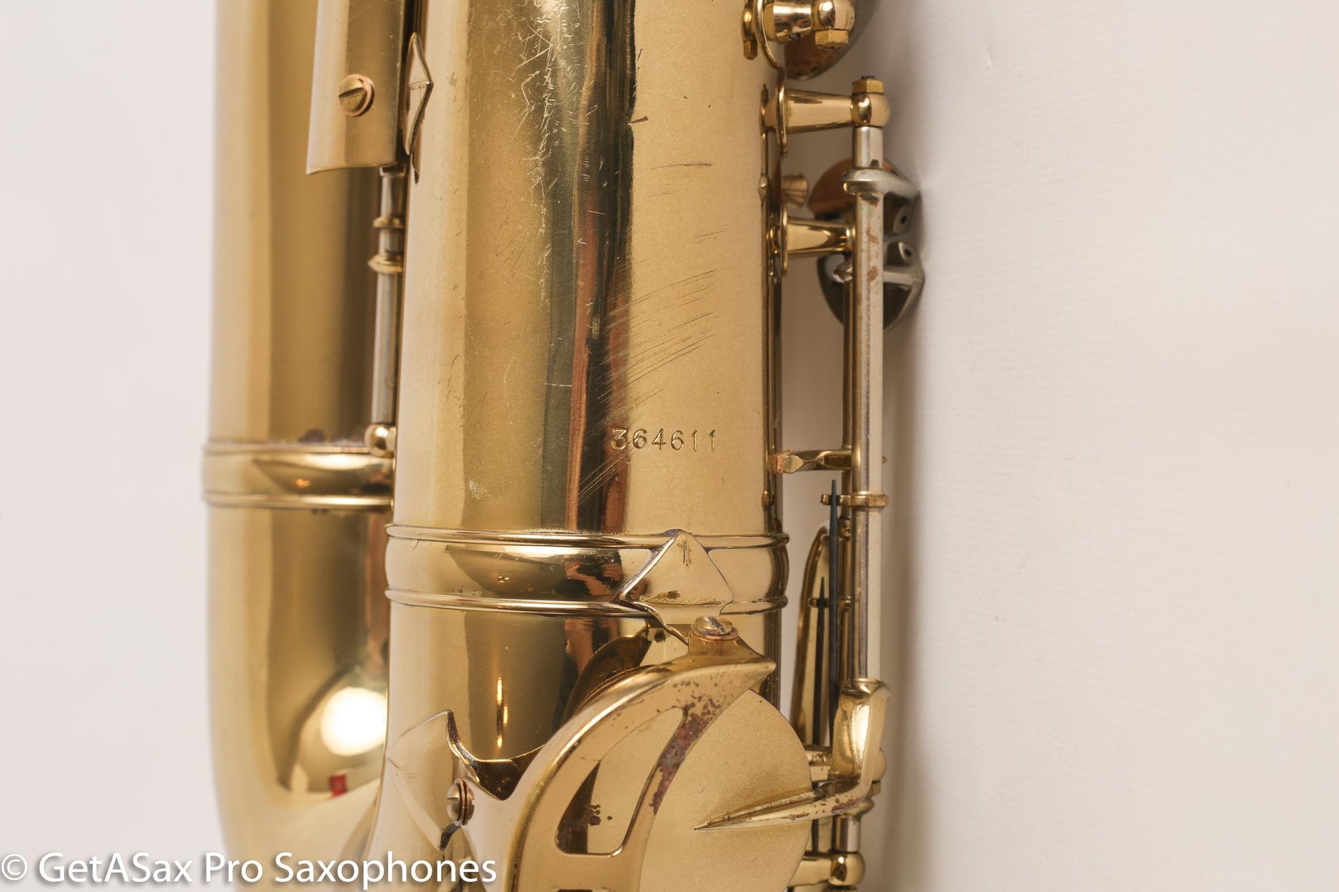 Original lacquer King Super 20 tenor in great shape. This also had a recent overhaul by Aaron Barnard and plays great. It would be hard to find a nicer Super 20 for much less money. The ‘Series III’ Super 20’s (as we call them) come right after the ‘full pearls’ series II’s, and are different from the previous version in that they have completely upgraded keywork that feels more modern. The left hand spatula keys are now a lot more like a Selmer, and the stack keys are ergonomically easier too. The tone is much the same as a Series II. Still warm, complex, powerful, fat in the upper register and super projecting. Just slightly brighter than a Series II in my experience, though you can change that easily with mouthpiece choice. The neck is solid sterling silver and has the double socket. The Series III’s are basically like a Series II but less expensive, mostly just because you don’t have the side key pearls. Same quality build and tone, but for thousands of dollars less. That makes this a smart buy in my opinion! Plus Aaron’s high-end overhaul is about a $1500 value and has basically no miles on it.