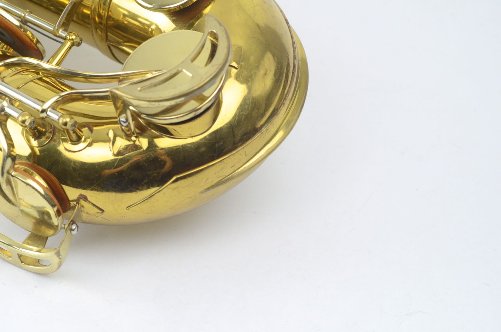 The King Super 20's that were made in Cleveland (like this) are the most desirable type among most players and collectors. (As a side note, the early Eastlake horns can also be very good.) This one is original lacquer at about 95% with some minor play wear on the back of the body. It has mostly original pads, and you can play it enough to know that there is a good tenor in here. But it will need more pad work or (better yet) a repad in order to play its best. As far as other issues, there's not much to mention - a couple of tiny dings removed (one from the neck which hardly show at all now and are very minor.