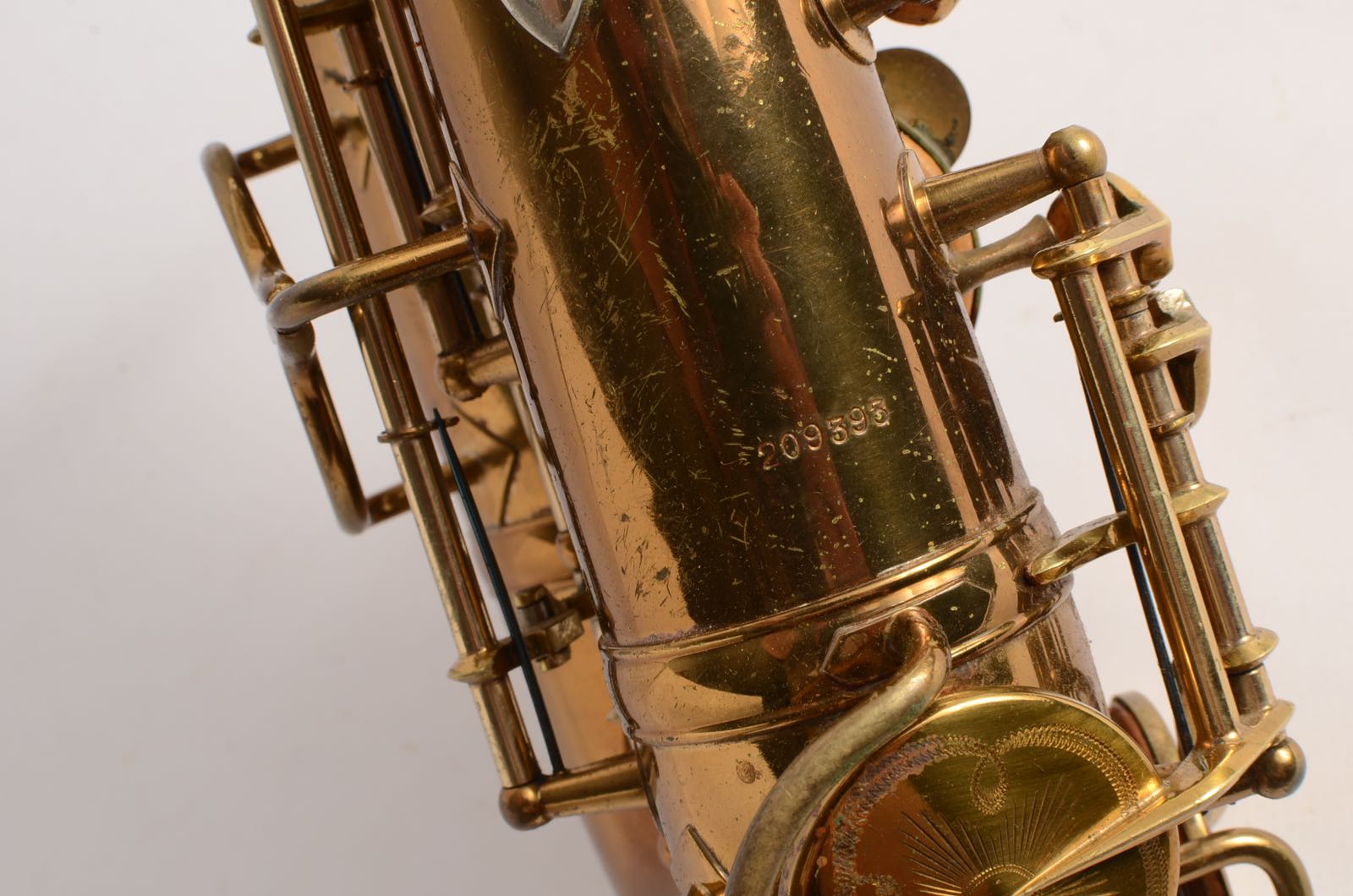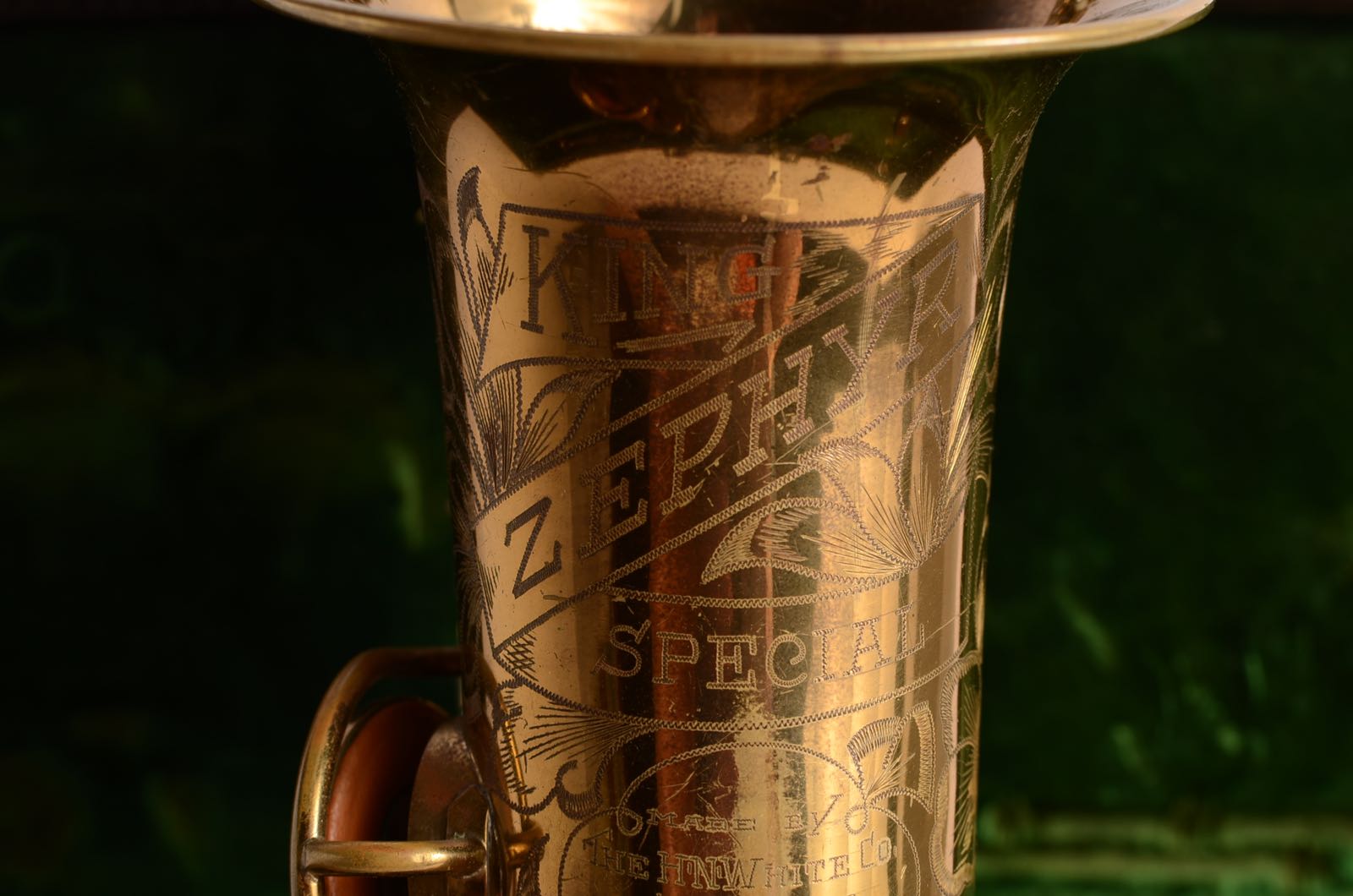 If you have been looking for a top-quality Zephyr Special alto for a while, it would be hard to do better than this one. And the price is quite low for what you get. Pads are old, so plan on a repad soon, but the price gives you plenty of room on it. It has had a small dent removed from the back of the bow. I'll post a photo asap, but it looks good. That pink color on the neck is the original lacquer, which you rarely see still intact on the silver neck. (Someone compulsive always polishes it off!) It adds value that it is still there.