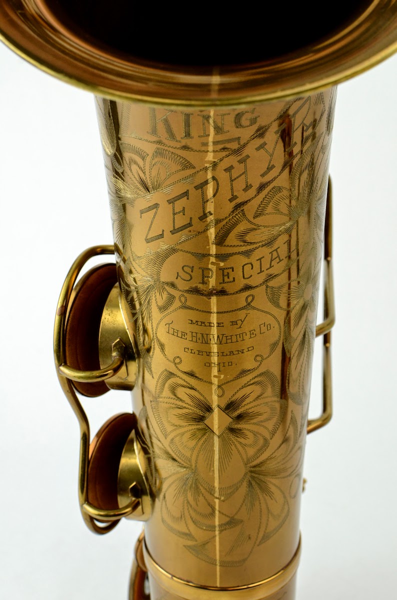 This Zephyr Special was made in 1941, which was a kind of pinnacle year for American saxophones. It's rare to find any saxophone that looks this good after 73 years, and finding such a rare and desirable one is really special. This horn has no dents or dings, and looks gorgeous with full pearls on palm and side keys and G#.