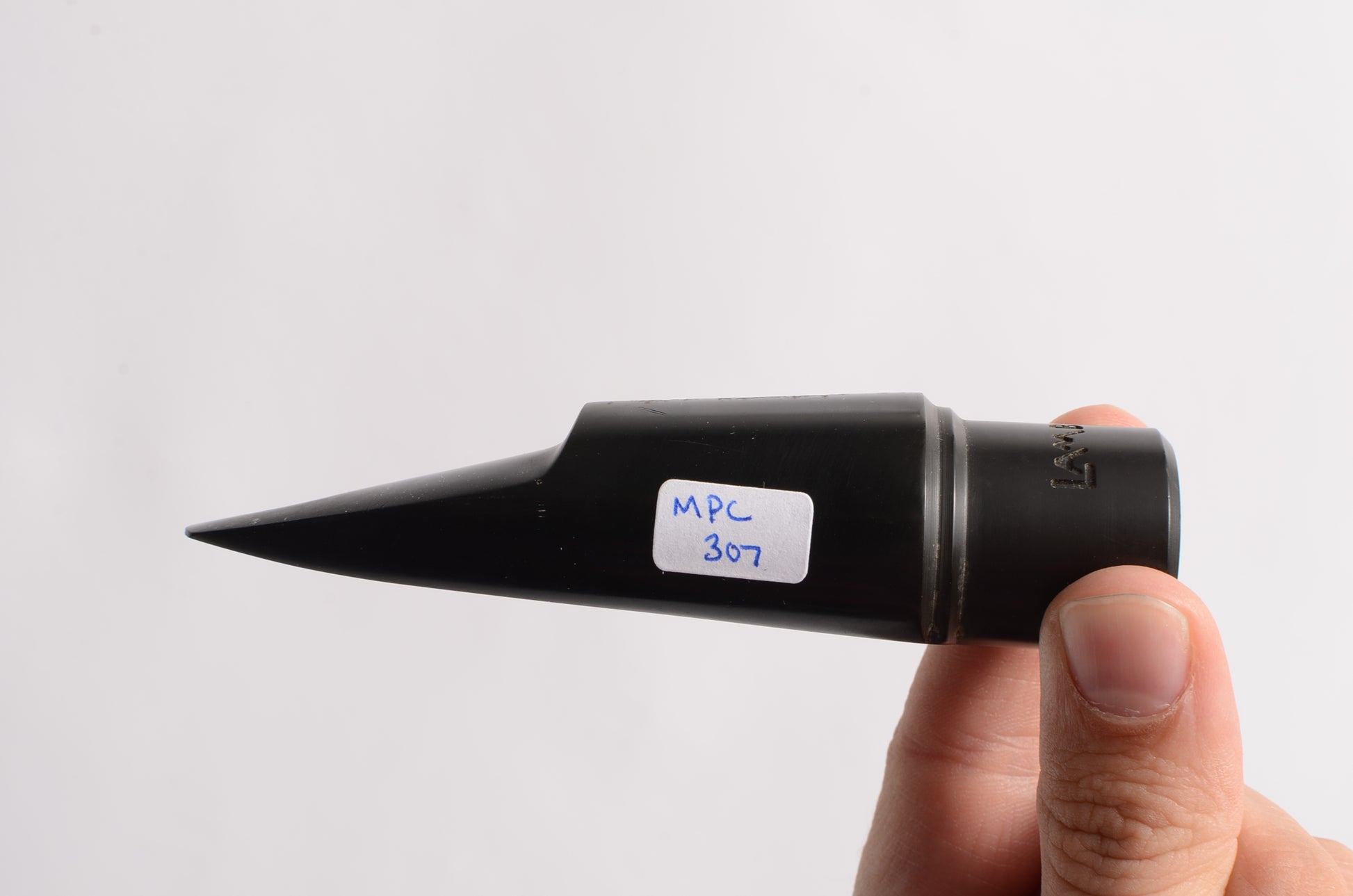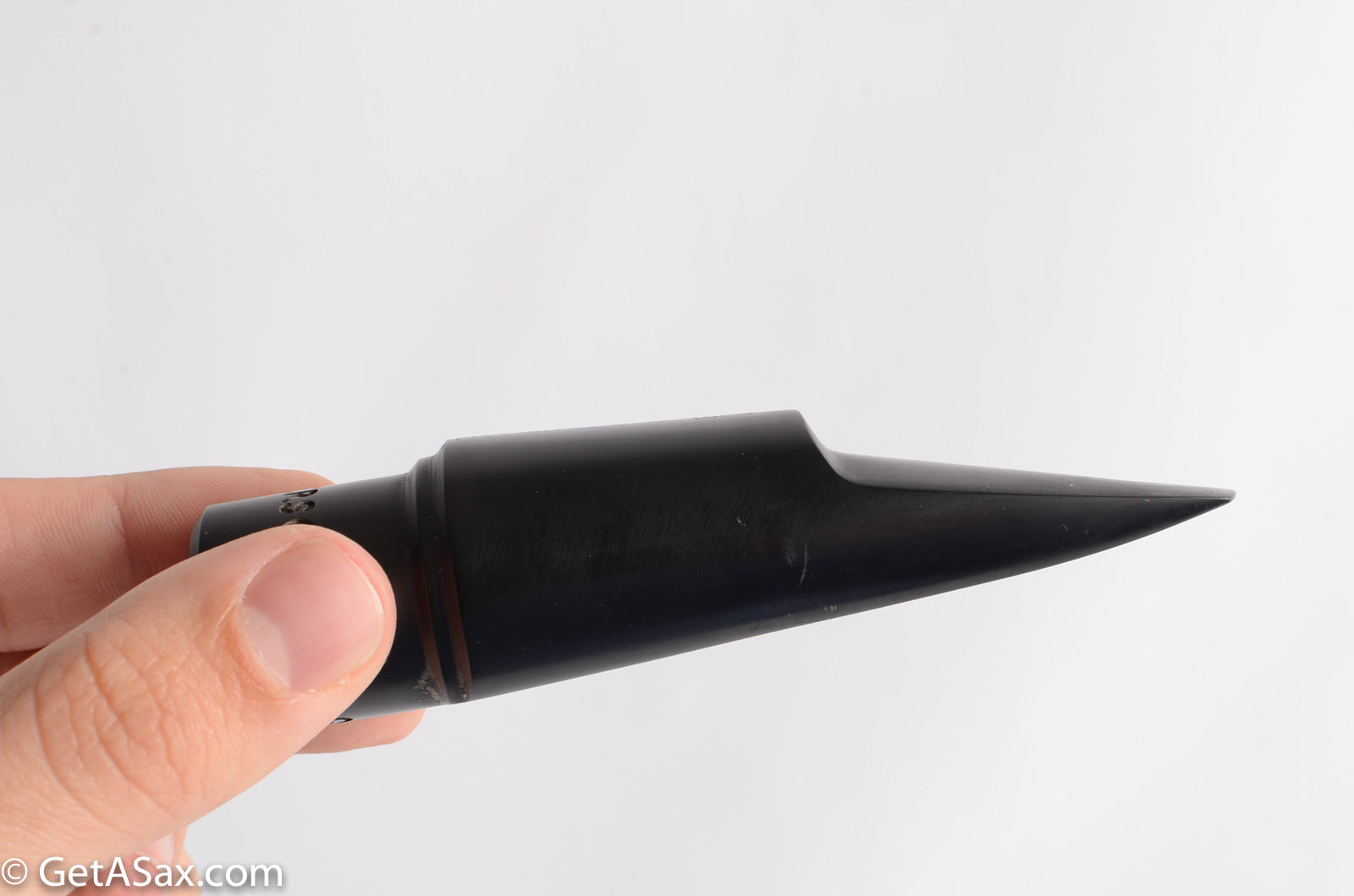This is a Lambersen tenor saxophone mouthpiece. It has a high baffle, curved side walls, and a large round chamber. Its tip opening measures 0.098.