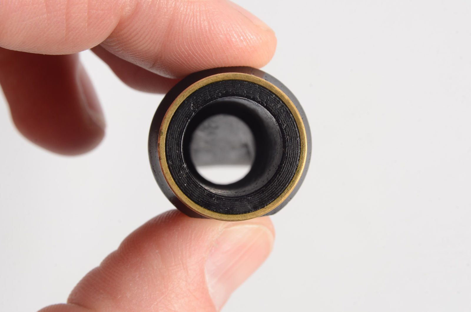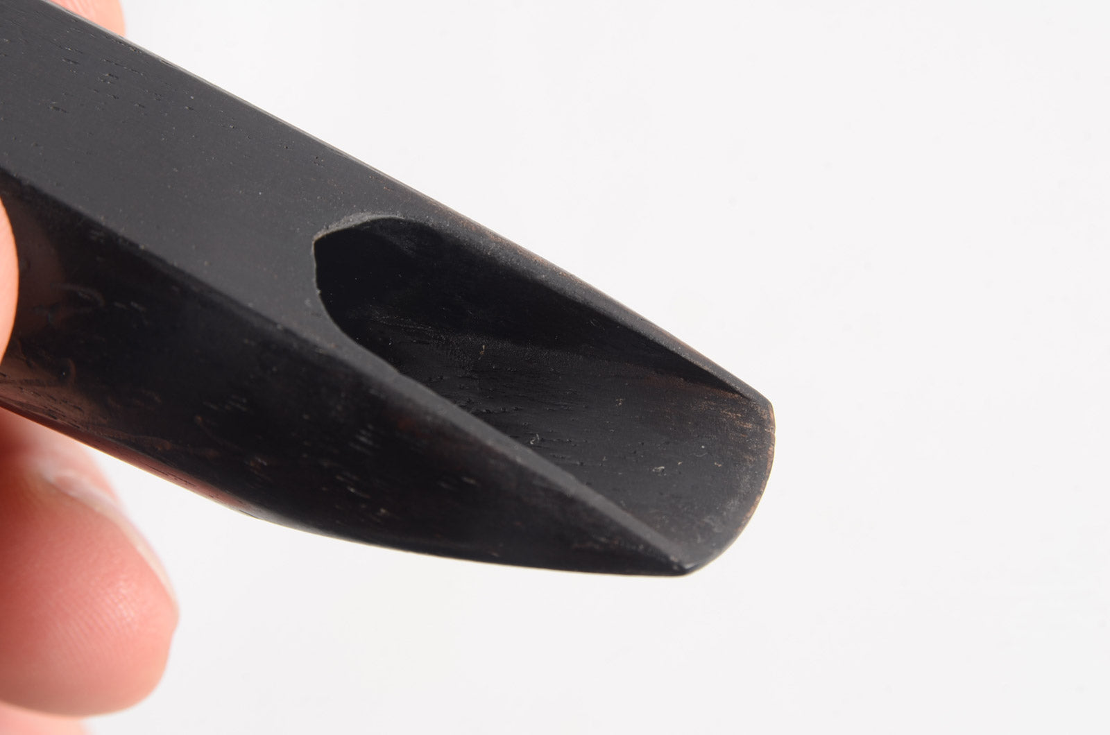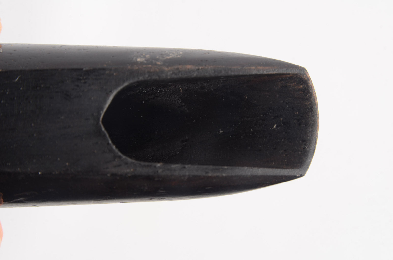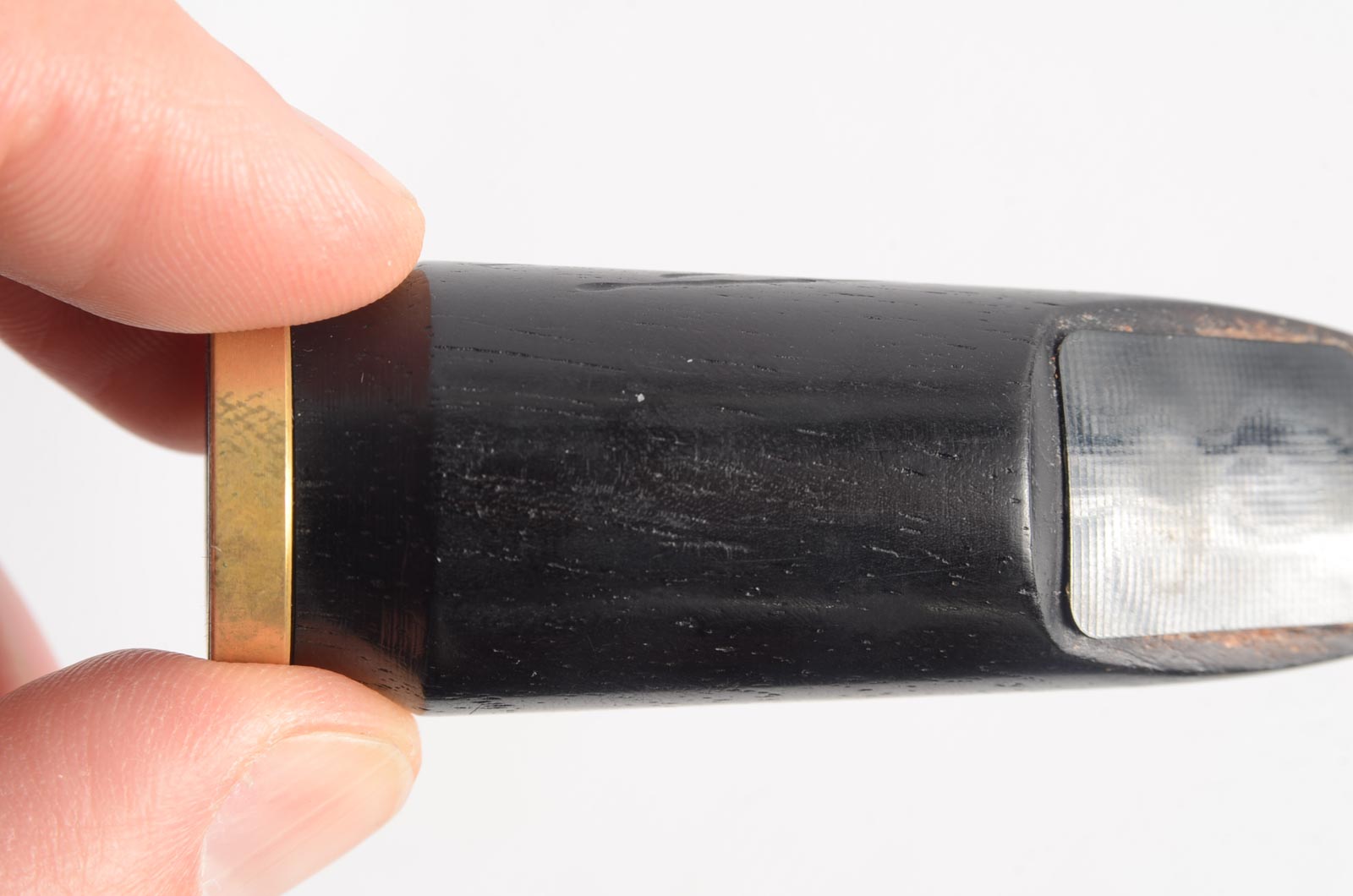 Lebayle (Grenadilla?) Wood Soprano Saxophone mouthpiece. Looks like the LR chamber to me, but with a little squeeze entering the chamber. This beautifully crafted piece gives you warmth and a distinctive soprano sound that is totally different from the usual pieces that you hear on soprano. With the larger chamber, it is also compatible with vintage sopranos. It has a brass band on the shank for stability. Good piece for the pro soprano player to try out.