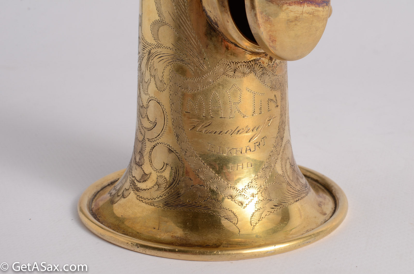 Martin Handcraft sopranos are my favorite all-around soprano ever made. The tone is so warm and big that it puts modern sopranos to shame. This is the "best of the best" version of the Handcraft, with RARE gold plate and SUPER rare cabin portrait on the bell. If you're the type of person who loves to own the very best in terms of quality, sound, rarity and beauty, look no further. This is it! No past repairs, recent repad, followed by a thorough going-over by Matt Stohrer, my favorite saxophone repairman. It comes in a brand new ProTec case also. Only one available - and this is the only portrait scene gold Martin I have seen in a long time! Get it before it's gone.