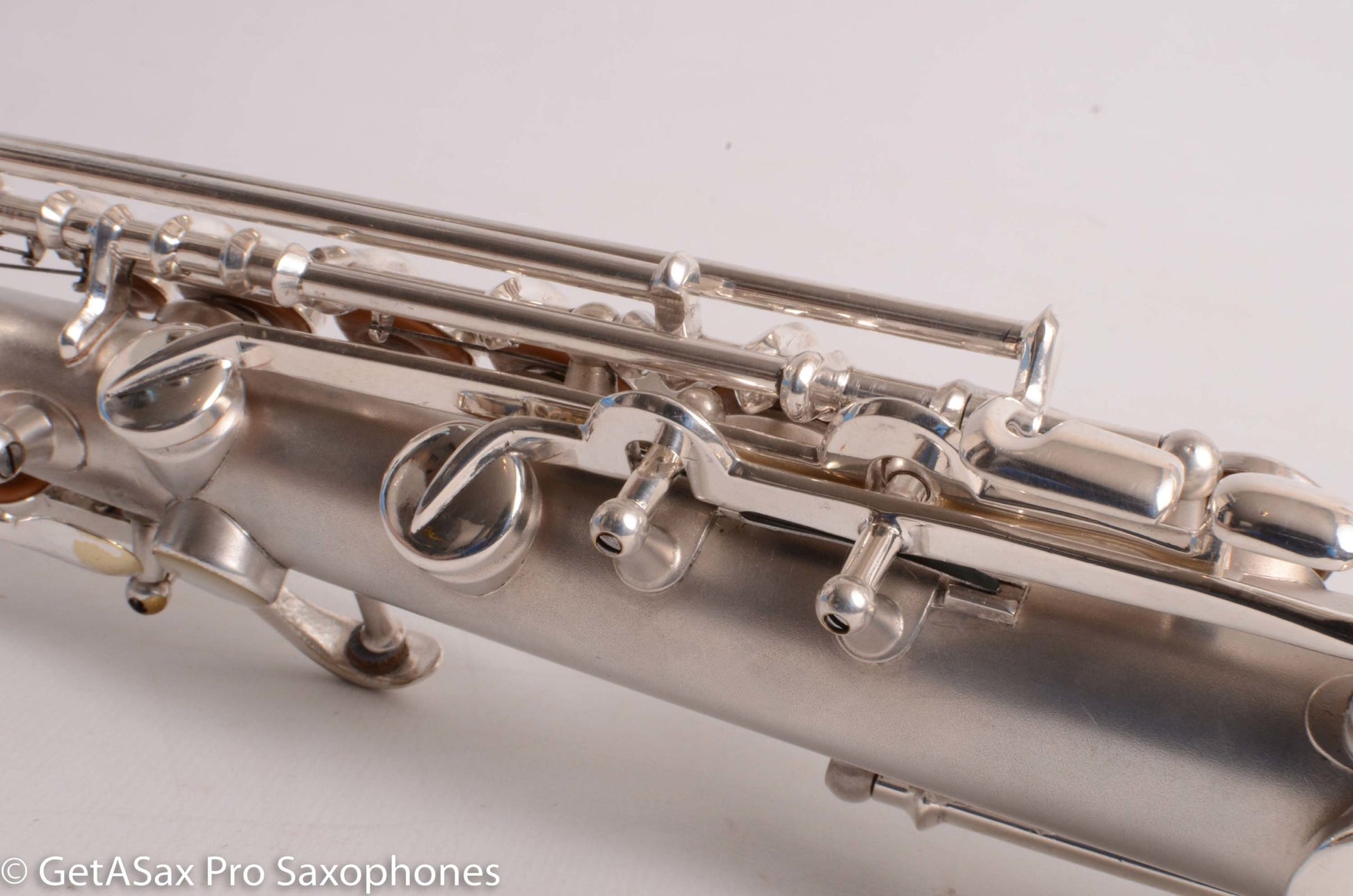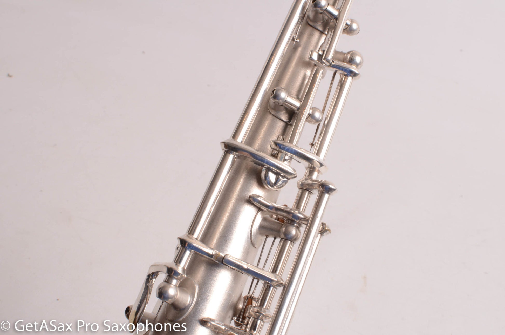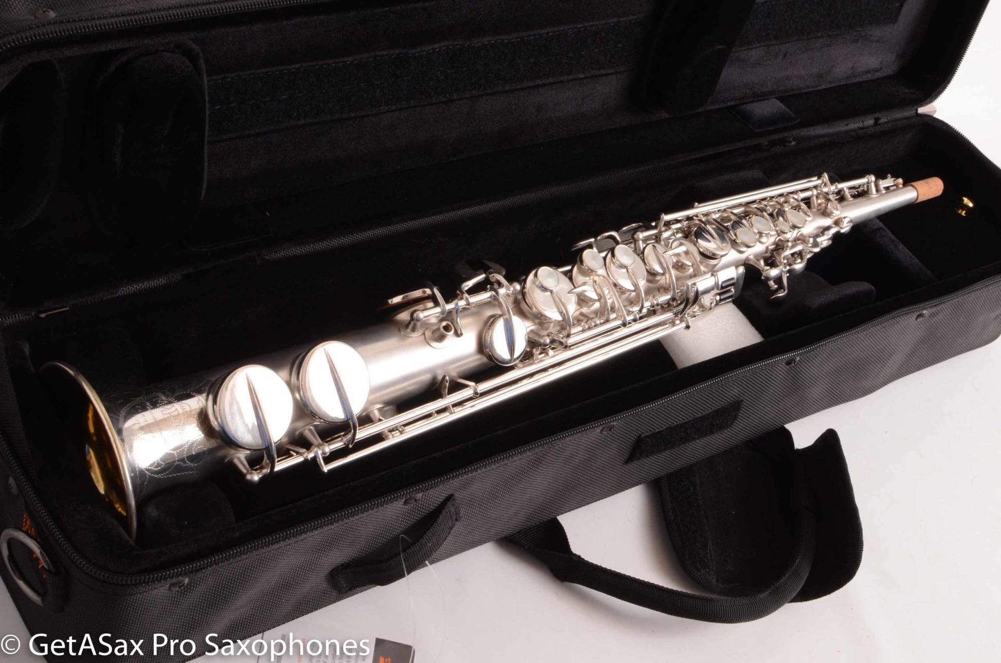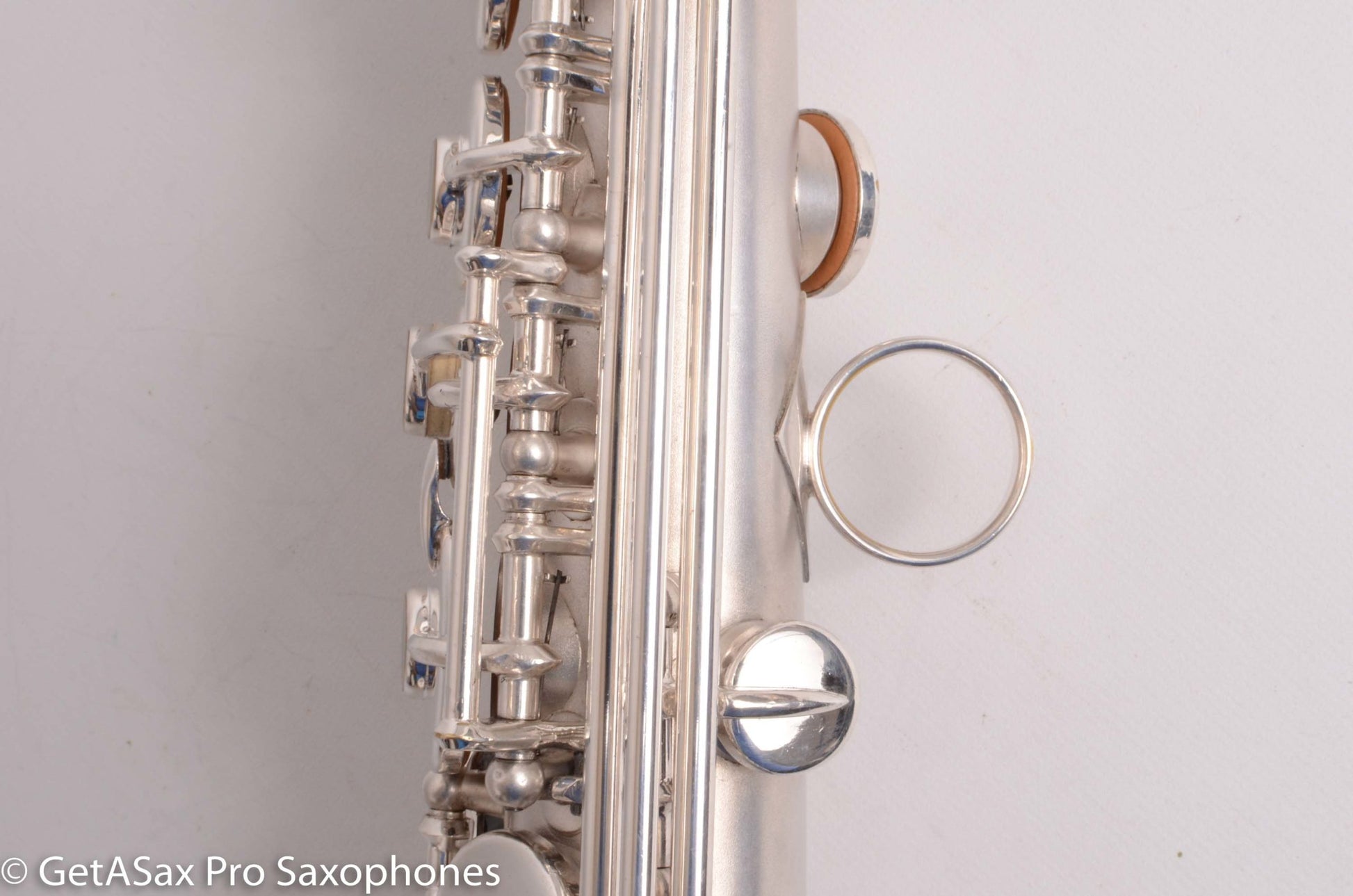 This Martin Handcraft soprano is EXCELLENT! It’s awesome. Ask experienced repair shops what their favorite sopranos of all time are, and see if you don’t hear Martin Handcraft mentioned more than anything else! That’s been my experience. If I didn’t already have a gold one that I play, I would 100% be keeping this one. It just got a complete overhaul and careful hand polish, and it could hardly be in nicer condition. Pisoni Italian leather pads and medium sized metal resonators complete the package. This is primo!