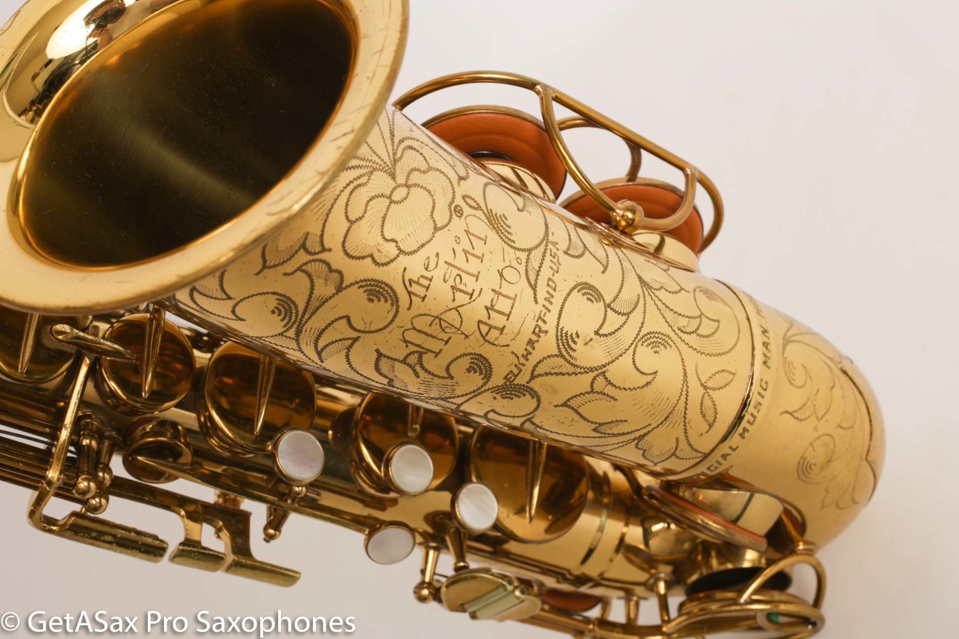 The Official Music Man model was made to commemorate the runaway hit musical ‘The Music Man’ about a traveling band instrument salesman. (I’m sure you know it.) These are a lot like a regular Comm III, “The Martin Alto” but have some extra engraving and the adjustable neck octave key stoppers like a Magna. They will always be more desirable and collectible than a regular The Martin Alto, but they have the same power, projection, and dark, complex tone. These horns are built to last, and came with 50 year warranties when new. Some of them are just leaving their warranty coverage now, which is hilarious. Only one available!